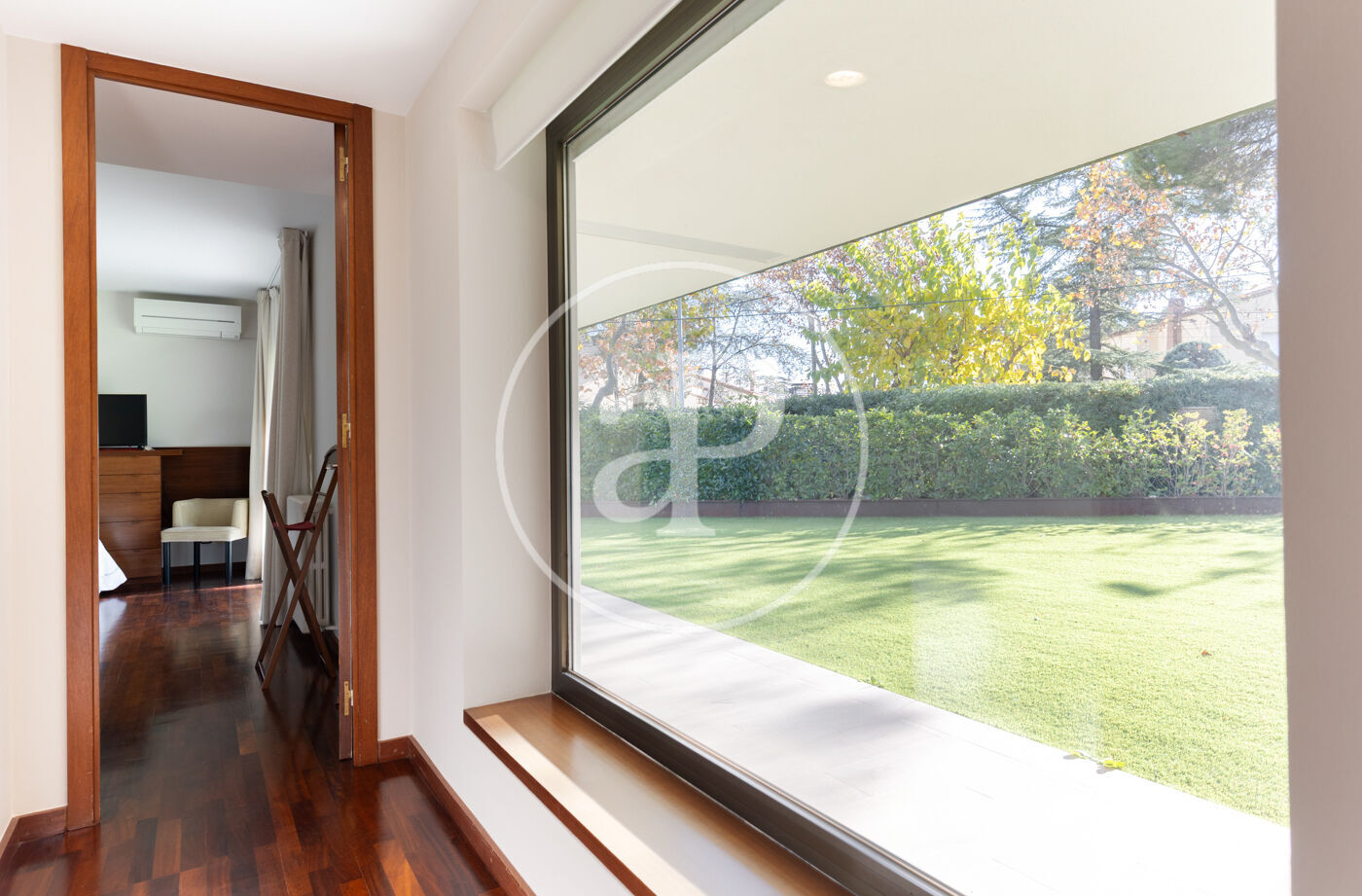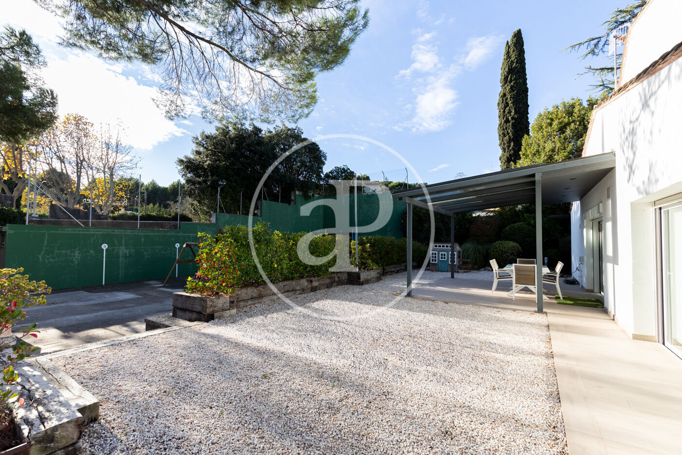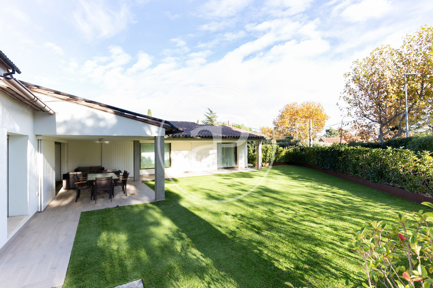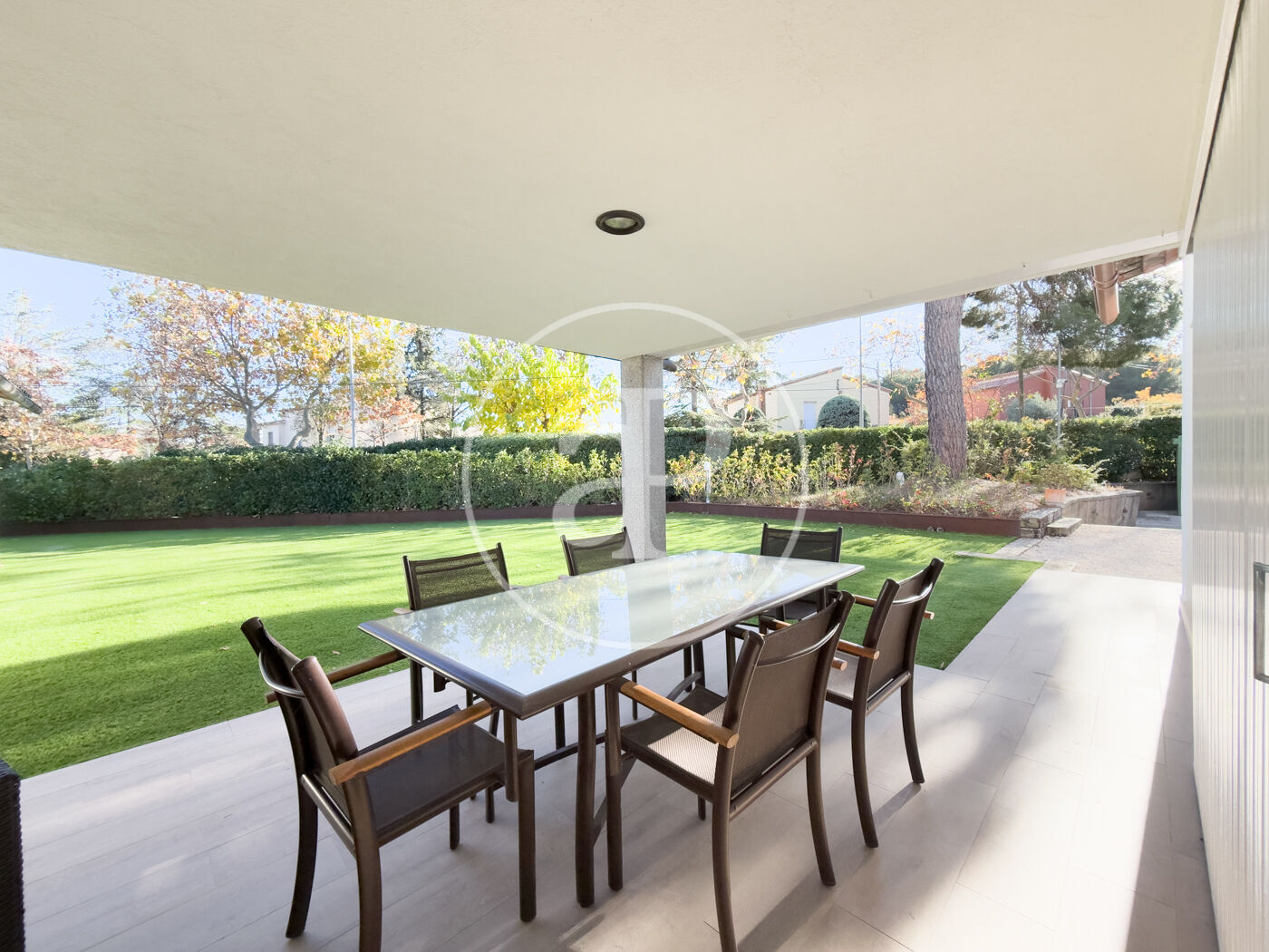 La propietat està edificada sobre una parcel·la totalment plana de 1.268 m², àmplia, assolellada, amb racons que conviden al descans, al joc i a la desconnexió. A l’interior, 276 m² plens de llum, amb grans finestrals de fusteria excel·lent i vidres dobles amb trencament de pont tèrmic. Terres de gres i parquet de fusta natural en un estat impecable.