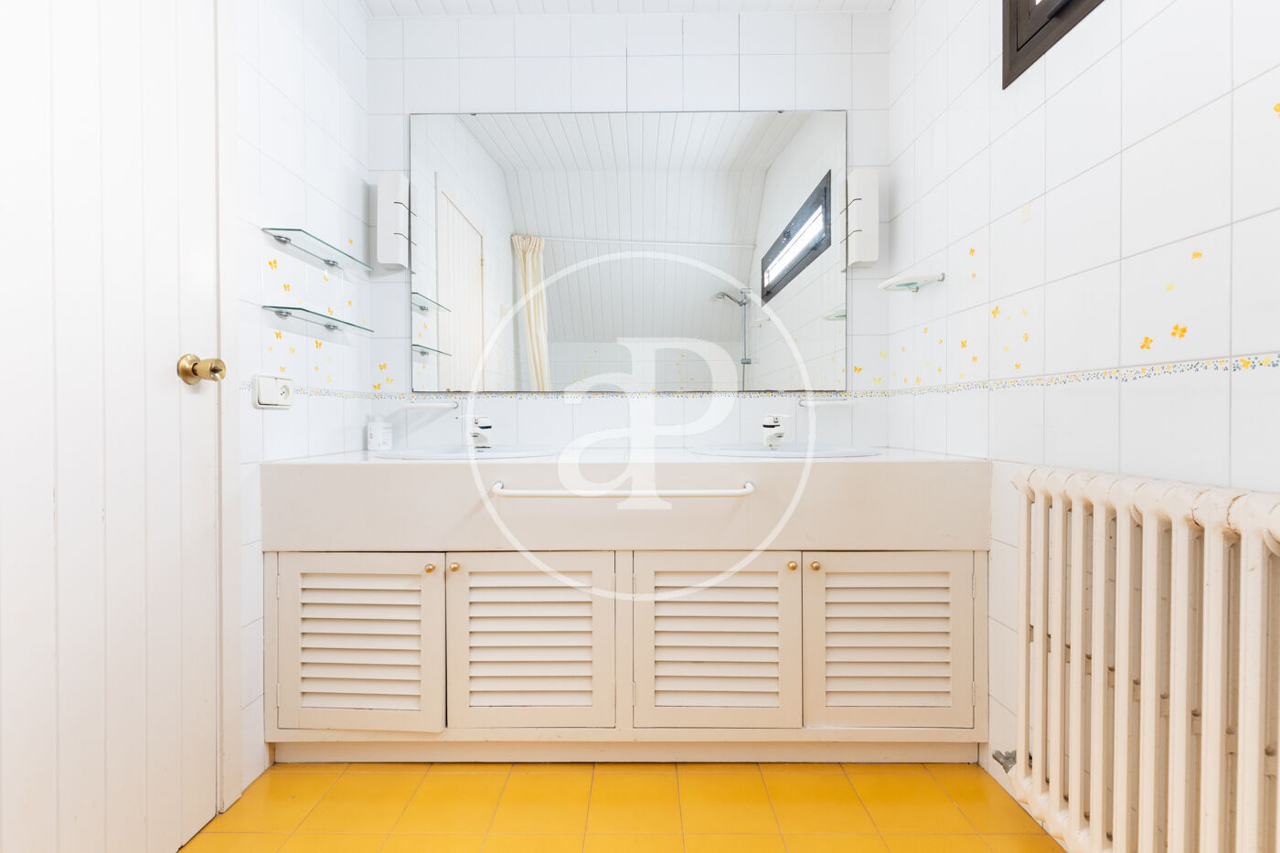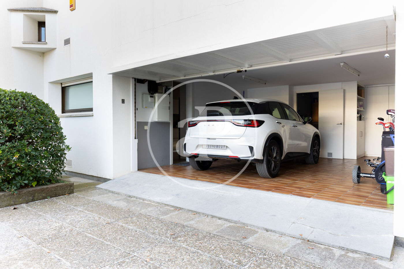 La gran cuina office, amb sortida directa al jardí, és un d’aquells espais que es converteixen en el cor de la llar: àmplia, lluminosa, on cuinar es transforma en un plaer i els matins comencen amb llum i calma esmorzant a la taula situada davant la sortida al jardí. Taulells, armaris, campana extractora, il·luminació LED ambiental, gran capacitat d’emmagatzematge i equipada amb marques d’alta gamma. Al costat de la cuina, un safareig pràctic i elegant. Des d’aquí hi ha accés directe al garatge, amb capacitat per a dos cotxes.
