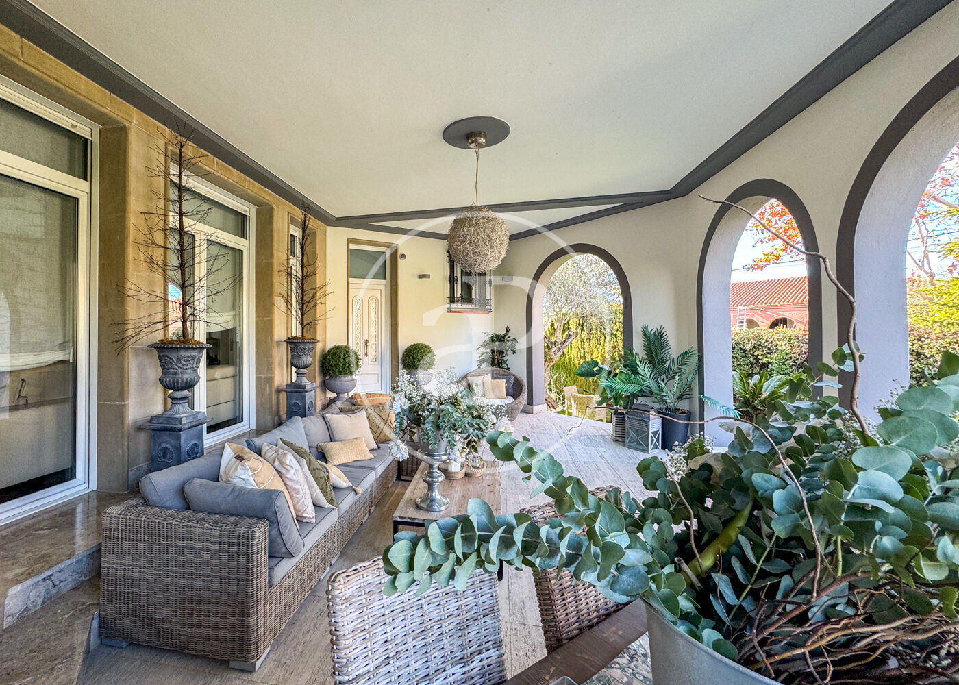 Aquesta finca es va construir l'any 1945 i es va reformar íntegrament a principis dels 2000, conservant elements arquitectònics de gran valor. Una casa molt pràctica, perquè la planta principal ocupa 250 mts2, i és on estan totes les estades diàries. Té un gran saló menjador presidit per una elegant xemeneia que comunica amb la cuina office. Té també rebost, sala d'aigües, i cinc cuidades habitacions amb armaris de paret, una d'elles en suite amb ampli vestidor i exquisit bany. Un altre bany complet serveix a la resta d'habitacions. Destaquen els seus sostres alts, o les motllures que creguin una atmosfera acollidora, sòls de marbre polit, revestiments en fusta, fusteria d'alumini blanc amb doble cristall, calefacció de gas natural, aire condicionat, plaques solars, etc...