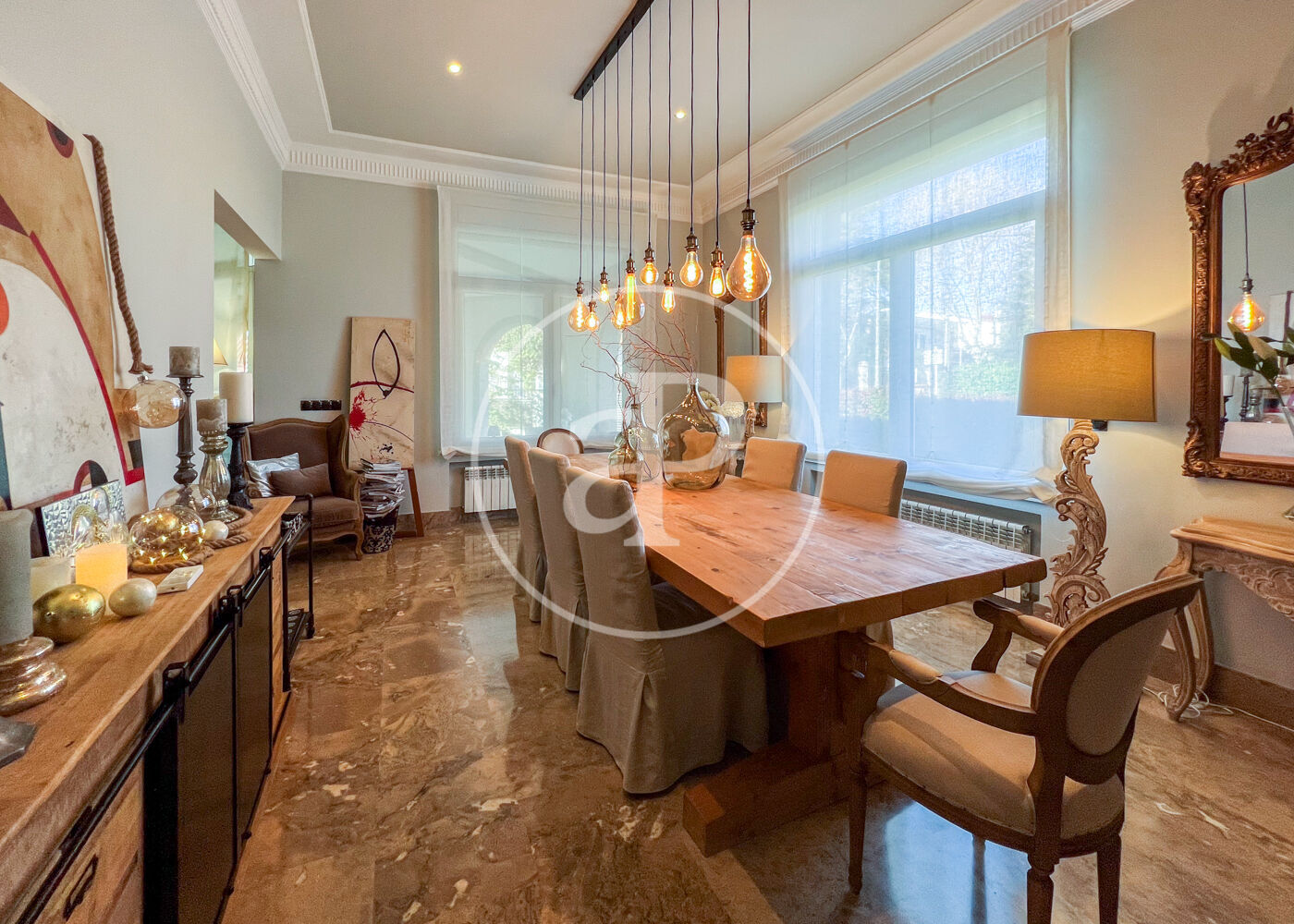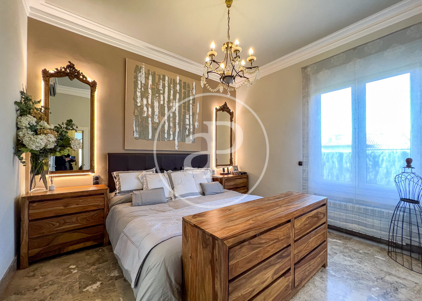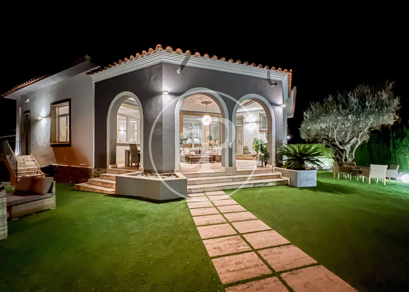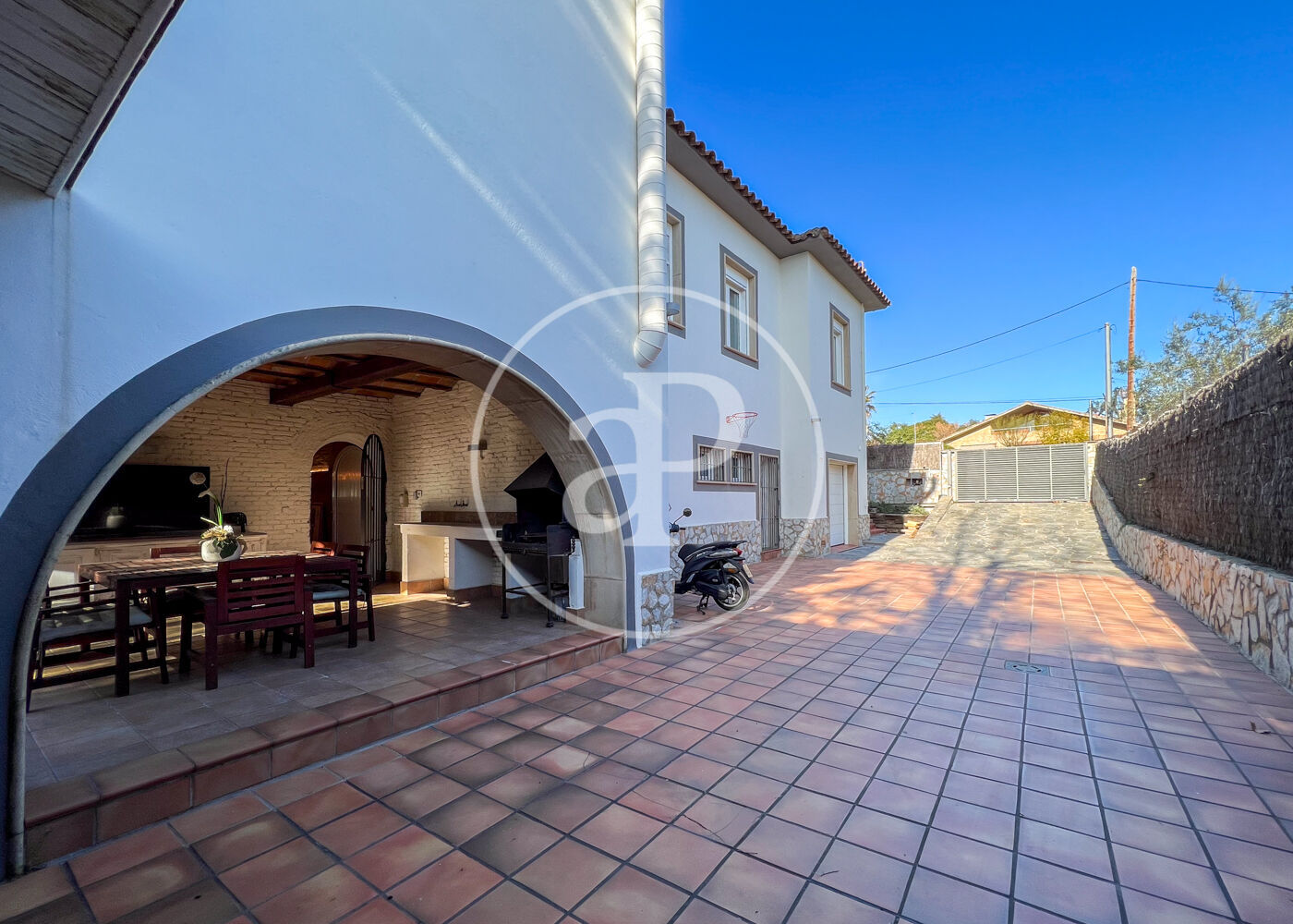 La casa està situada en una parcel·la de 900 mts2, i té 435 mts2 construïts. Envoltada de jardí, una bonica piscina per al seu gaudi i un meravellós espai en el semisoterrani on se situa: una barbacoa amb la seva corche per a menjars familiars o amb amics, un celler, un parell de sales polivalents i el garatge.