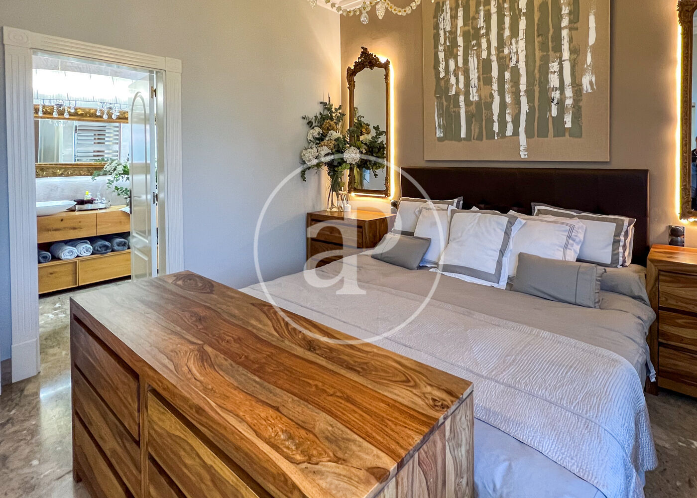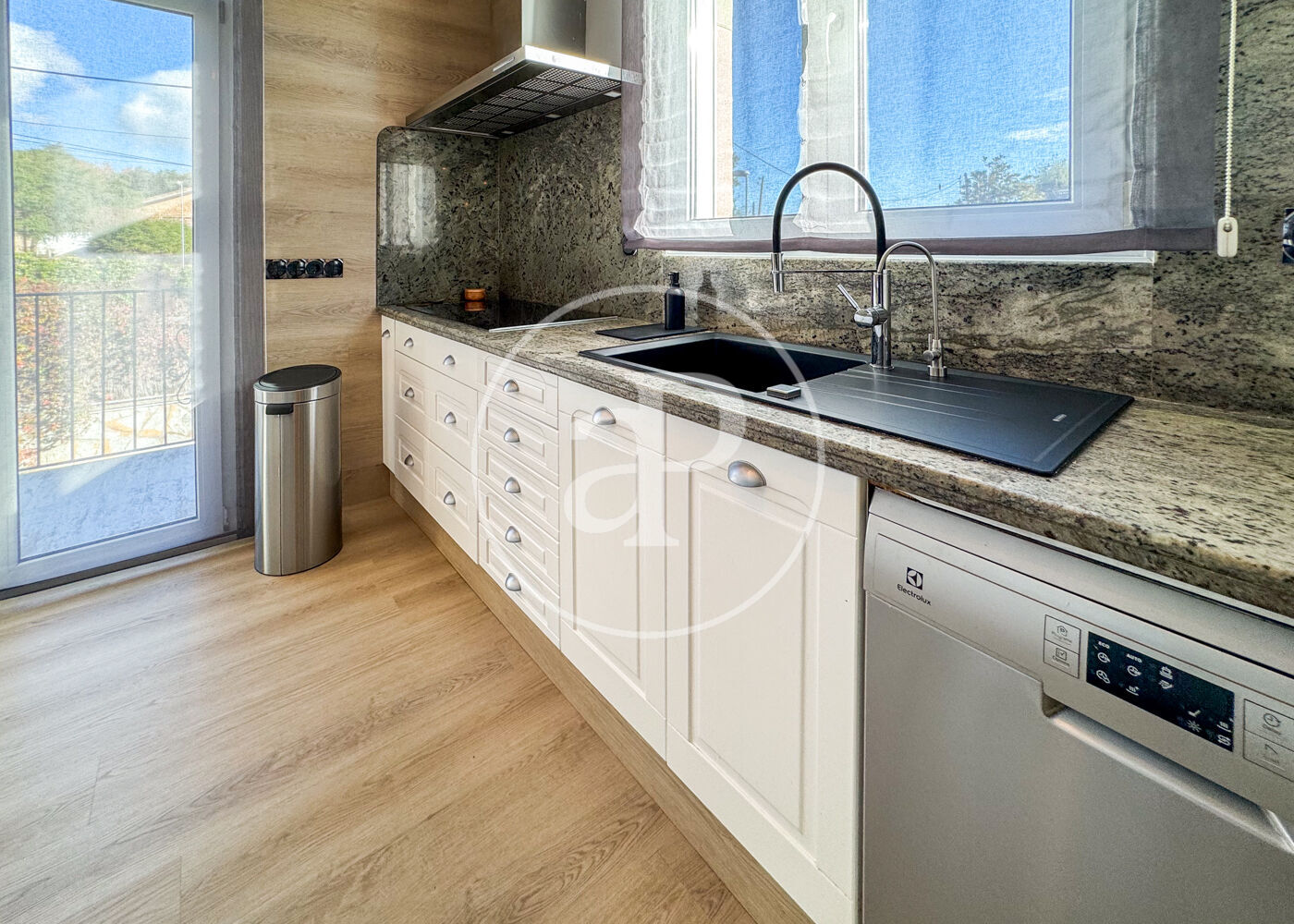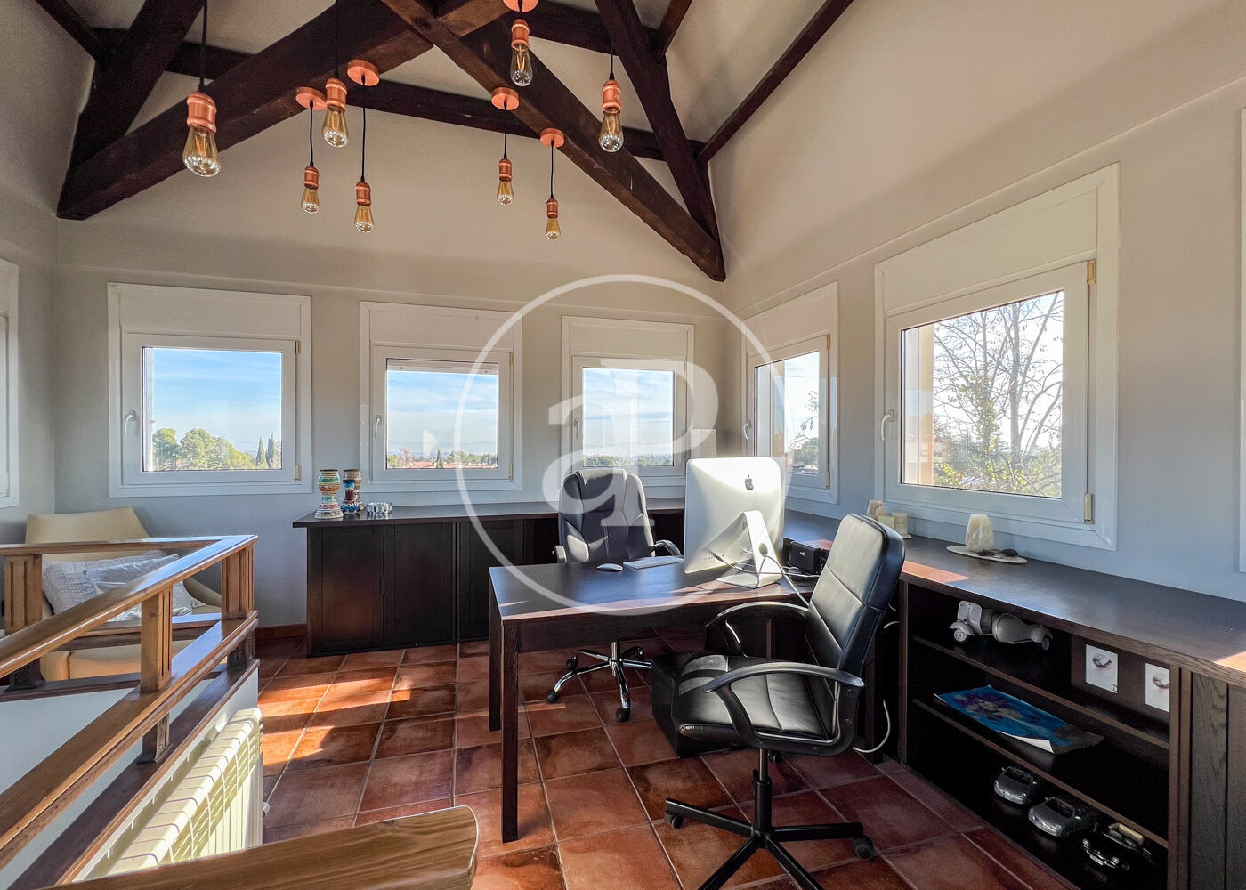 Descobreix aquesta propietat situada en la prestigiosa urbanització Els Pedritxes! Amb una parcel·la de 4.000 m², aquesta casa ofereix una privacitat absoluta i està envoltada d'exuberant bosc i impressionants vistes, creant un entorn idíl·lic per a gaudir de la tranquil·litat i la naturalesa. Amb una superfície construïda de 608 m² distribuïts en dues plantes, actualment configurada com dos habitatges amb entrades independents connectades internament, brinda flexibilitat i comoditat per als seus residents. La seva innovadora infraestructura assegura total autosuficiència, amb plaques solars, un generador de gran capacitat, sistema de recollida d'aigües pluvials, descalcificador i tres dipòsits de magatzematge d'aigua amb una capacitat de 1.000 litres cadascun. La planta principal es compon d'un espaiós saló de 70 m² amb una acollidora xemeneia de llenya i vistes panoràmiques, cuina completament equipada, celler, dues confortables habitacions, un bany i una habitació amb bany complet. En la planta superior, trobem un altre lluminós saló menjador, cuina, dues espaioses habitacions dobles que comparteixen un bany, la suite principal amb vestidor i unes escales que condueixen a una golfa/estudio. A més, una versàtil sala polivalent amb xemeneia, actualment utilitzada com a despatx i gimnàs, ofereix espai addicional segons les necessitats específiques. Des de la piscina, envoltada de serenitat de l'entorn natural, podem gaudir de moments inoblidables de relax i diversió amb familiars i amics. La propietat també compta amb un ampli garatge que ofereix la possibilitat de ser transformat en una versàtil sala polivalent. Aquesta casa ofereix una oportunitat excepcional per a aquells que busquen una residència que combini comoditat i sostenibilitat en un entorn natural privilegiat. En aProperties comptem amb els millors agents immobiliaris per a oferir-li una atenció professional, personalitzada i eficient i estem a la seva disposició per a proporcionar-li, si així ho desitja, un estudi de finançament sense cap cost. No dubti a posar-se en contacte amb nosaltres!