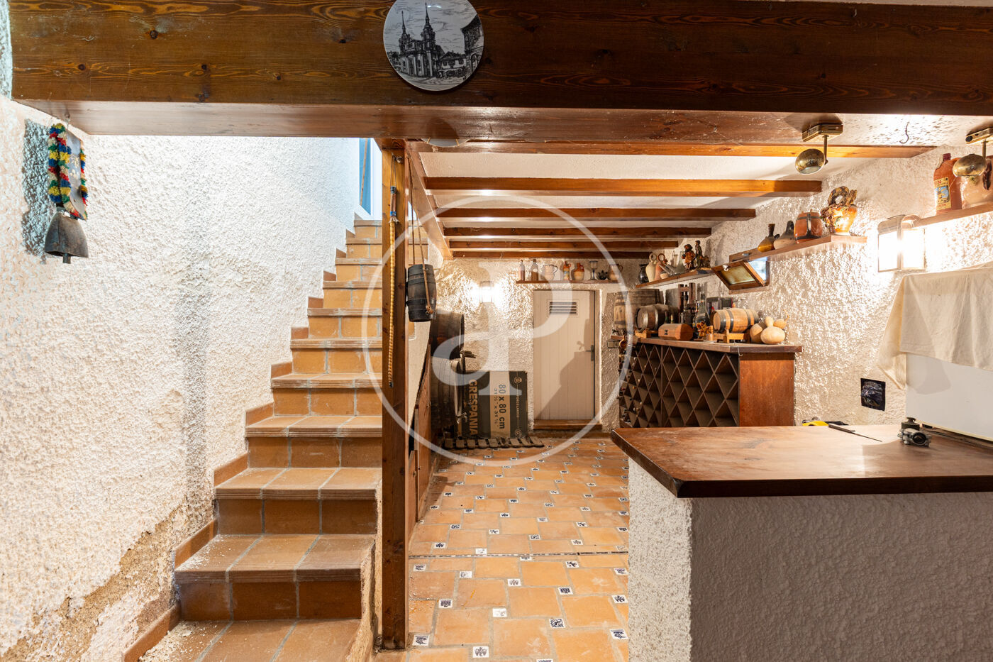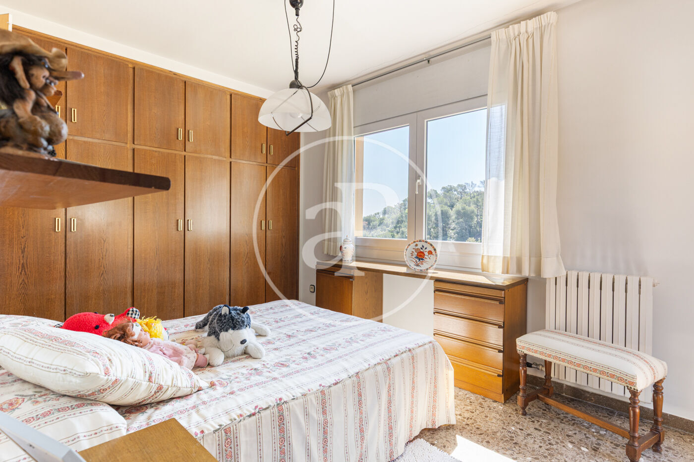 Descobreix aquesta propietat situada en la prestigiosa urbanització Els Pedritxes! Amb una parcel·la de 4.000 m², aquesta casa ofereix una privacitat absoluta i està envoltada d'exuberant bosc i impressionants vistes, creant un entorn idíl·lic per a gaudir de la tranquil·litat i la naturalesa. Amb una superfície construïda de 608 m² distribuïts en dues plantes, actualment configurada com dos habitatges amb entrades independents connectades internament, brinda flexibilitat i comoditat per als seus residents. La seva innovadora infraestructura assegura total autosuficiència, amb plaques solars, un generador de gran capacitat, sistema de recollida d'aigües pluvials, descalcificador i tres dipòsits de magatzematge d'aigua amb una capacitat de 1.000 litres cadascun. La planta principal es compon d'un espaiós saló de 70 m² amb una acollidora xemeneia de llenya i vistes panoràmiques, cuina completament equipada, celler, dues confortables habitacions, un bany i una habitació amb bany complet. En la planta superior, trobem un altre lluminós saló menjador, cuina, dues espaioses habitacions dobles que comparteixen un bany, la suite principal amb vestidor i unes escales que condueixen a una golfa/estudio. A més, una versàtil sala polivalent amb xemeneia, actualment utilitzada com a despatx i gimnàs, ofereix espai addicional segons les necessitats específiques. Des de la piscina, envoltada de serenitat de l'entorn natural, podem gaudir de moments inoblidables de relax i diversió amb familiars i amics. La propietat també compta amb un ampli garatge que ofereix la possibilitat de ser transformat en una versàtil sala polivalent. Aquesta casa ofereix una oportunitat excepcional per a aquells que busquen una residència que combini comoditat i sostenibilitat en un entorn natural privilegiat. En aProperties comptem amb els millors agents immobiliaris per a oferir-li una atenció professional, personalitzada i eficient i estem a la seva disposició per a proporcionar-li, si així ho desitja, un estudi de finançament sense cap cost. No dubti a posar-se en contacte amb nosaltres!