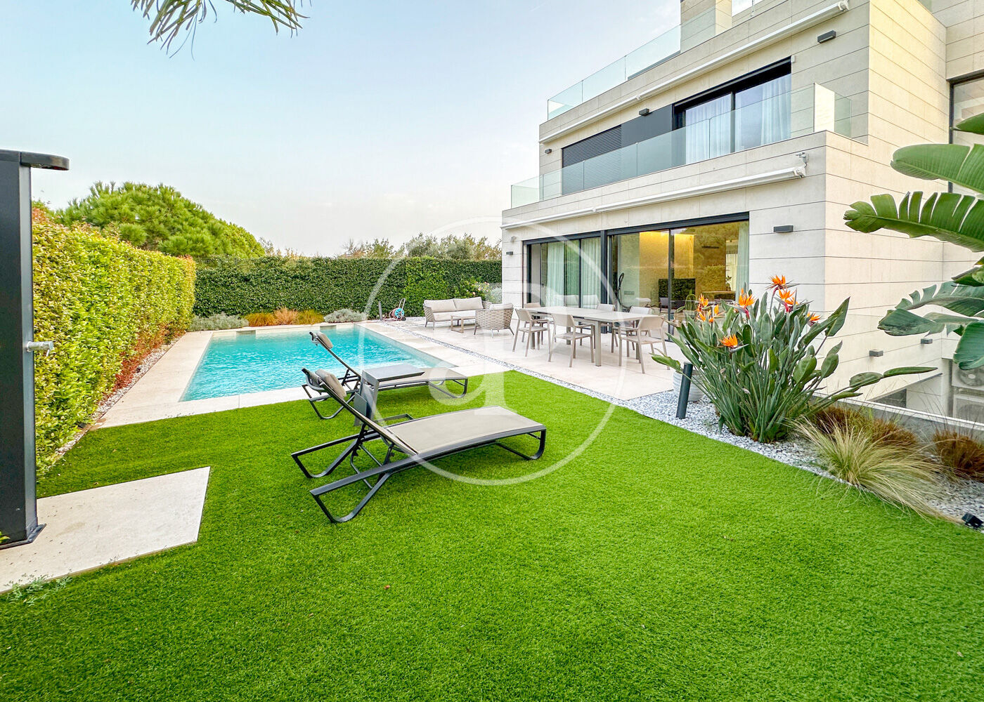 Imagina despertar cada matí amb el sol banyant un espai impecable a Montgat, on la vida mediterrània es fusiona amb una arquitectura d'avantguarda. Aquesta espectacular residència de l’any 2021, construïda amb una exquisida atenció al detall i materials de primera qualitat, compta amb sis amplis dormitoris, cinc banys de disseny elegant i una superfície construïda de 355 m², envoltada per un jardí privat amb piscina, perfecte per gaudir del sol i la serenor.
