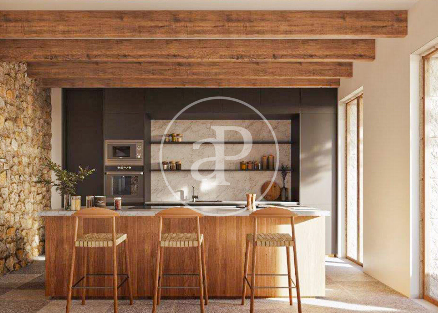 A la planta baixa, la finca compta amb un saló-menjador espaiós, una cuina exclusiva que segurament serà el cor de la casa, dos dormitoris amb banys en suite per a més comoditat i privadesa i un lavabo de convidats.