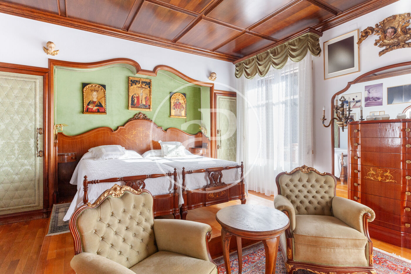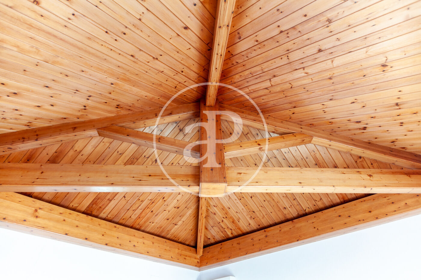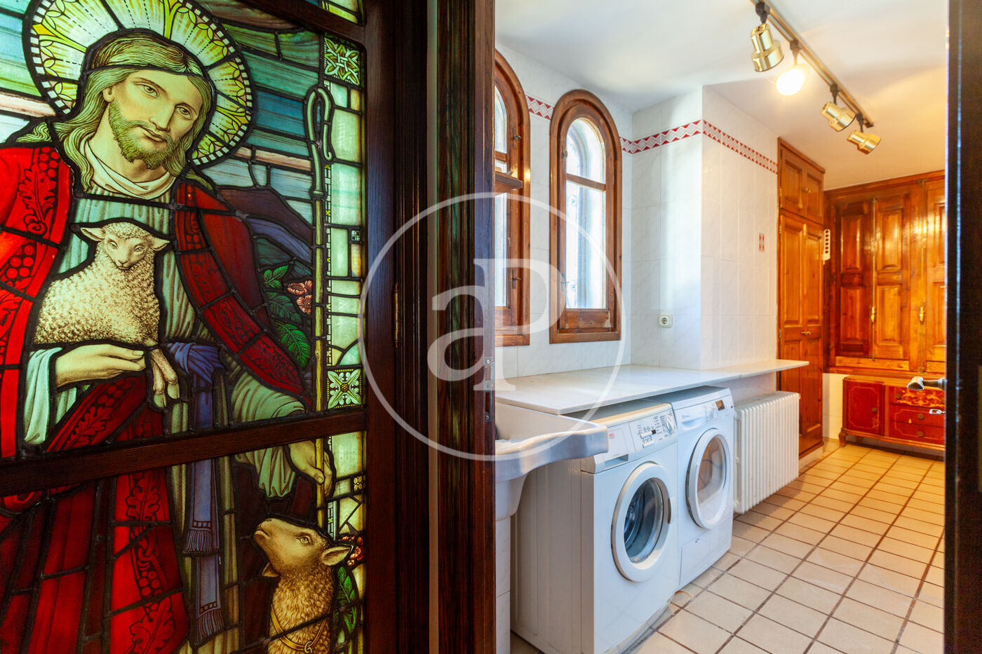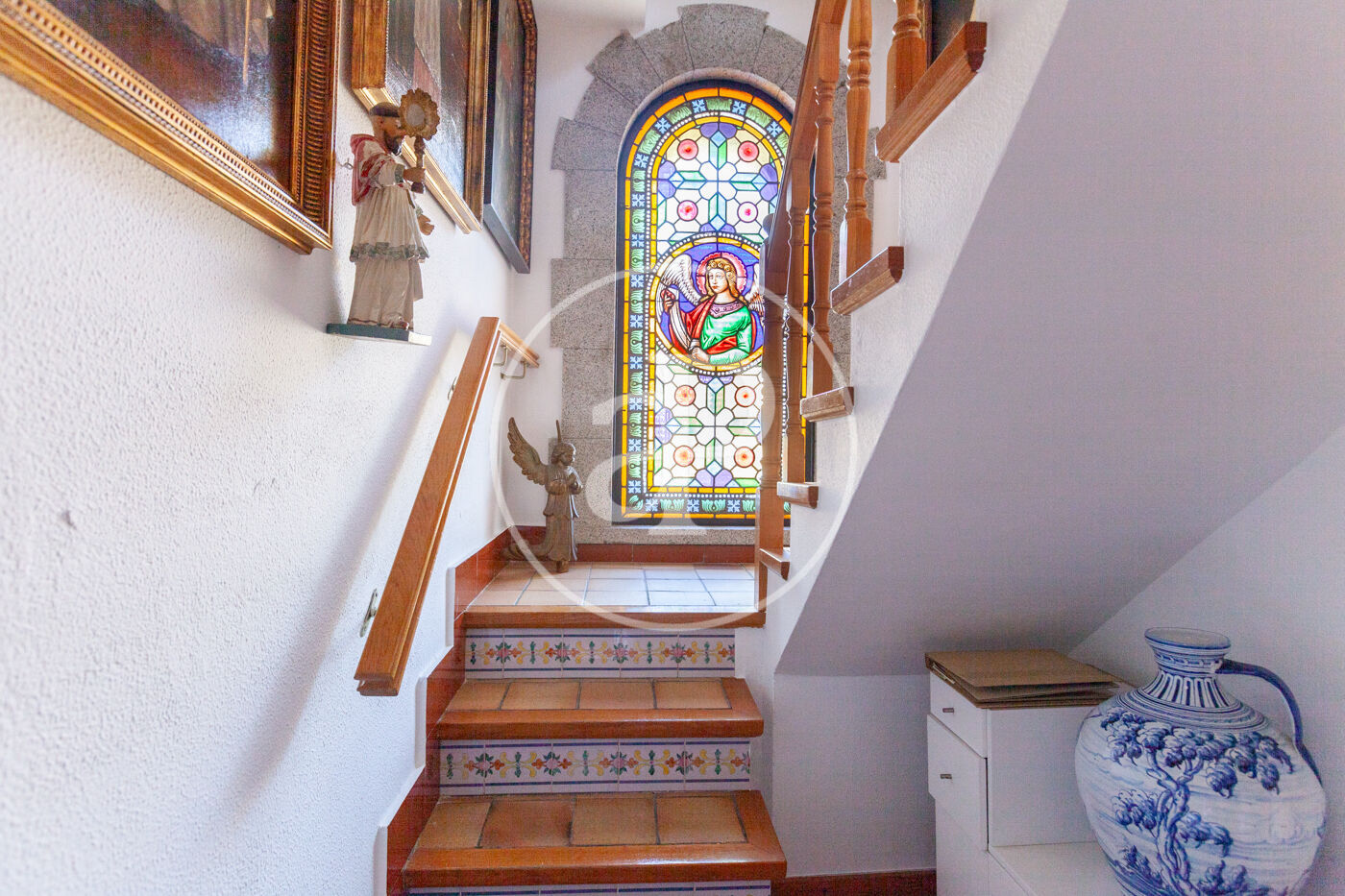 Amb una superfície construïda de 330 m² distribuïts en tres nivells, la vil·la destaca pels seus espais amplis banyats en llum natural gràcies a les seves vidrieres de colors i orientació sud-est. Els detalls arquitectònics, com les bigues de fusta, els arcs elegants, les columnes i el torreó, evoquen un estil atemporal que combina l’elegància senyorial amb un ambient acollidor.