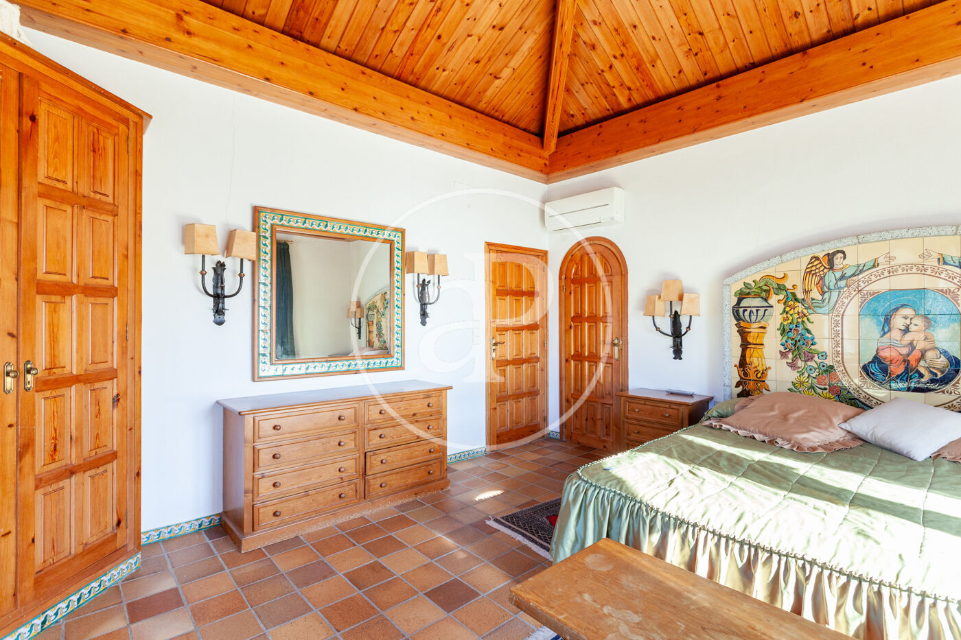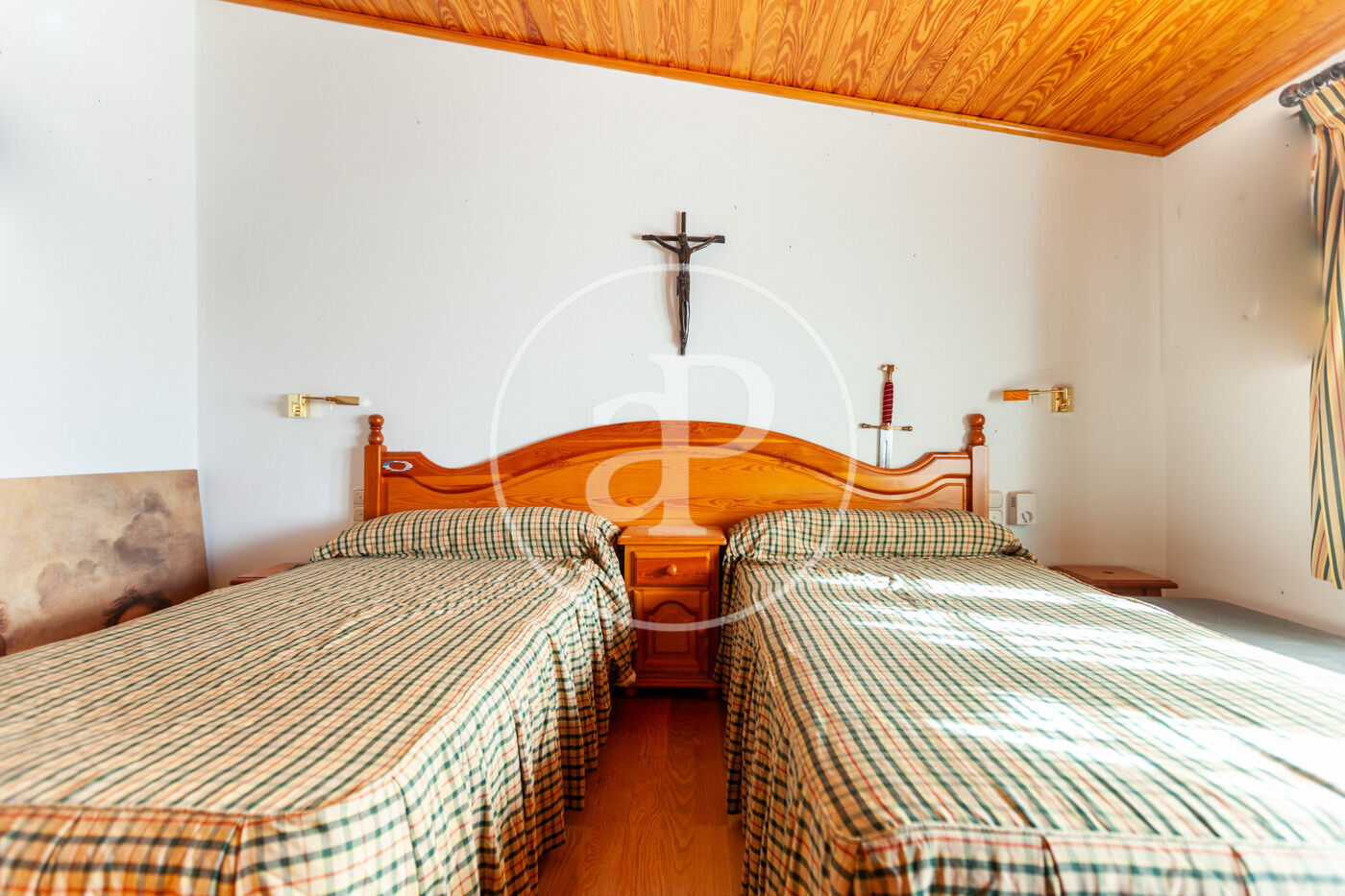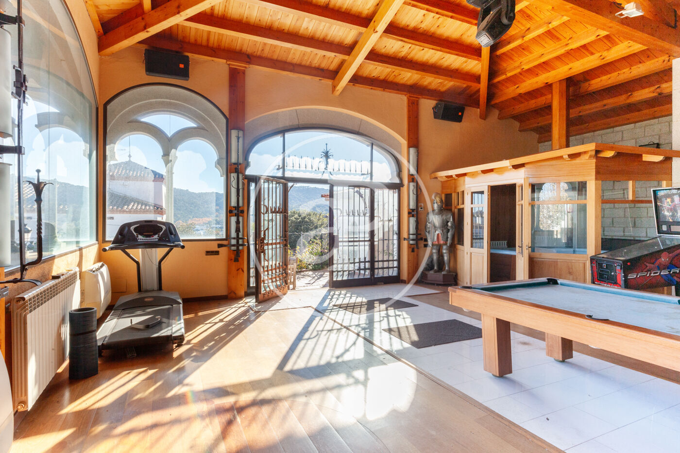 L’interior compta amb 6 dormitoris, incloent-hi una suite principal amb vistes panoràmiques i accés a una terrassa privada. Els terres de parquet i ceràmica aporten calidesa i sofisticació als espais, mentre que la xemeneia al saló es converteix en el cor de la casa. La propietat també disposa d’una sala de festes amb bar, un jacuzzi per a moments de relaxació i un celler per als amants del vi.