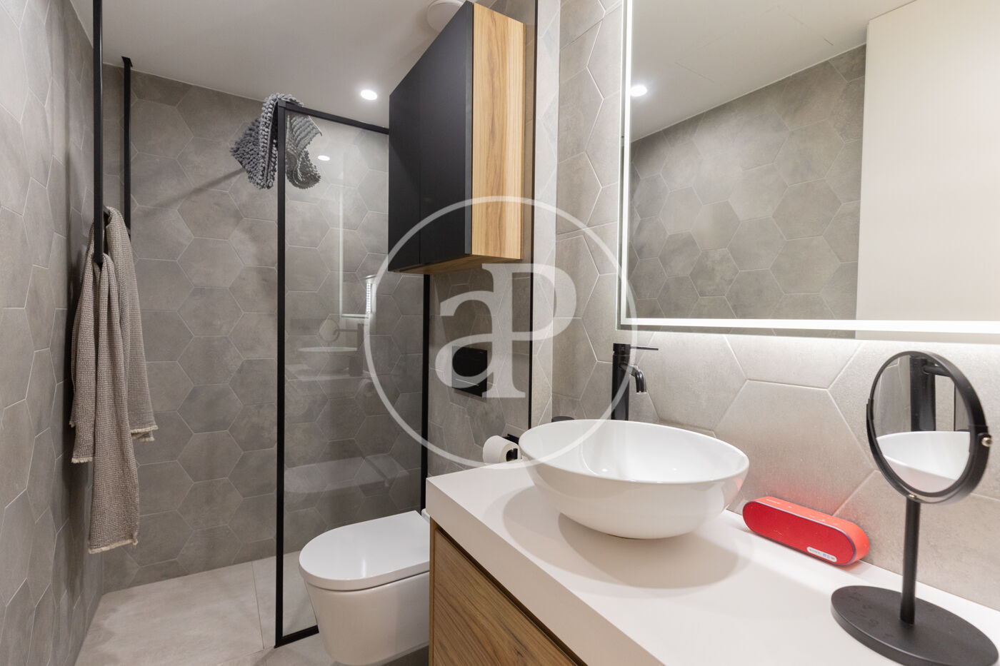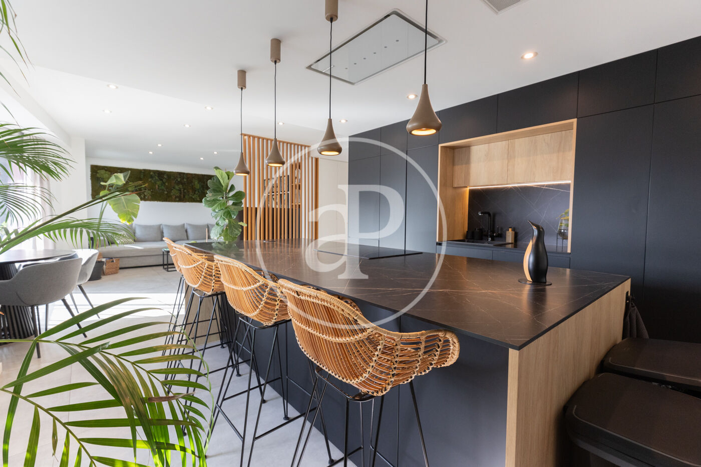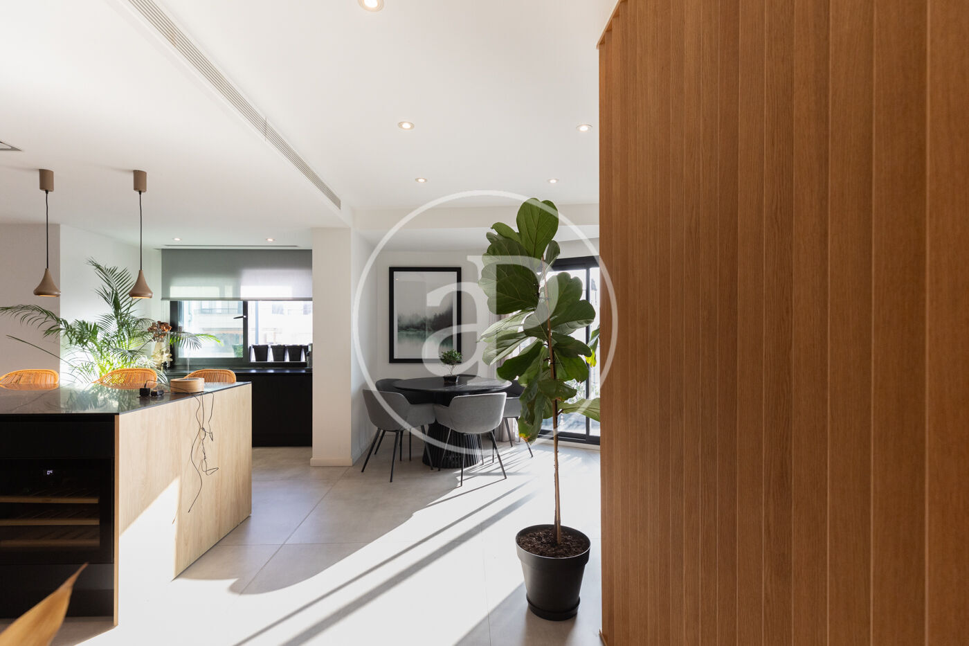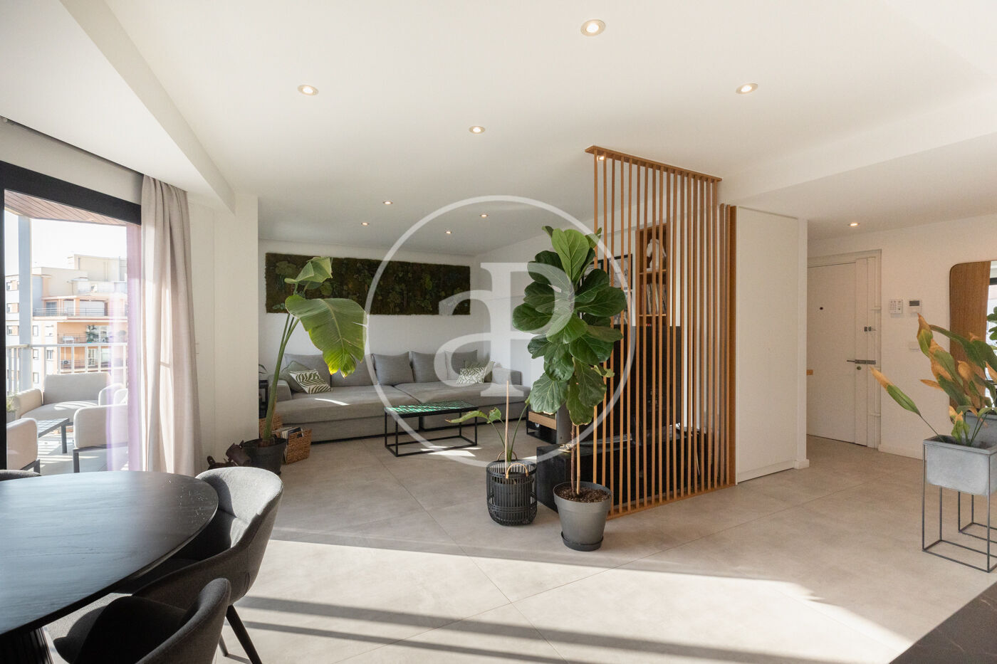 Ubicat al novè pis amb ascensor, aquest apartament completament reformat amb materials d'alta qualitat combina elegància i modernitat. Molt lluminós, ofereix un ampli espai de vida amb cuina oberta decorat amb bon gust. El confort està garantit amb terra radiant i finestres de doble vidre.