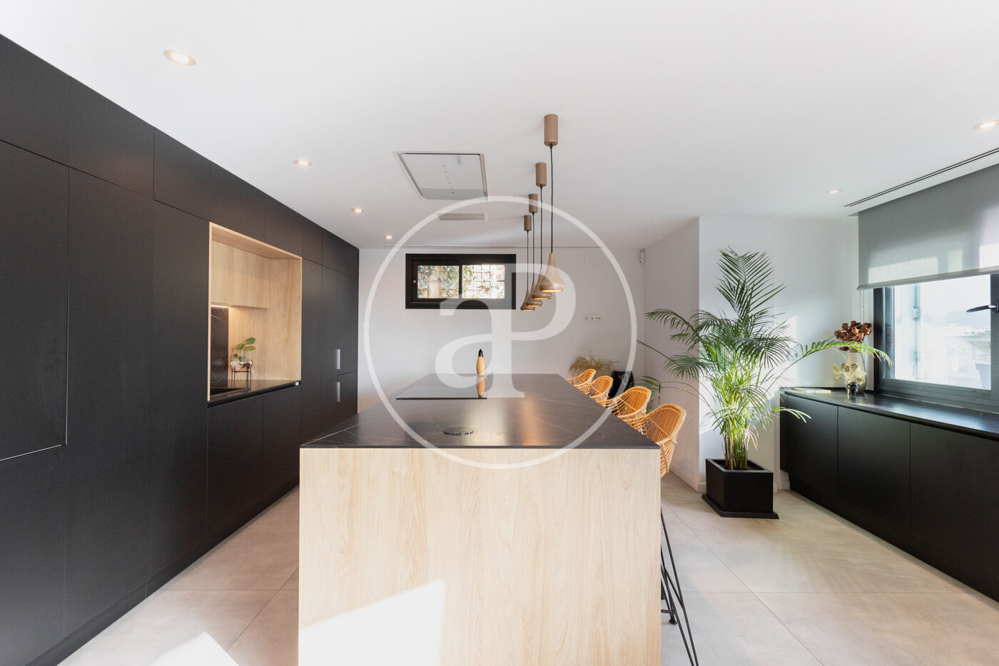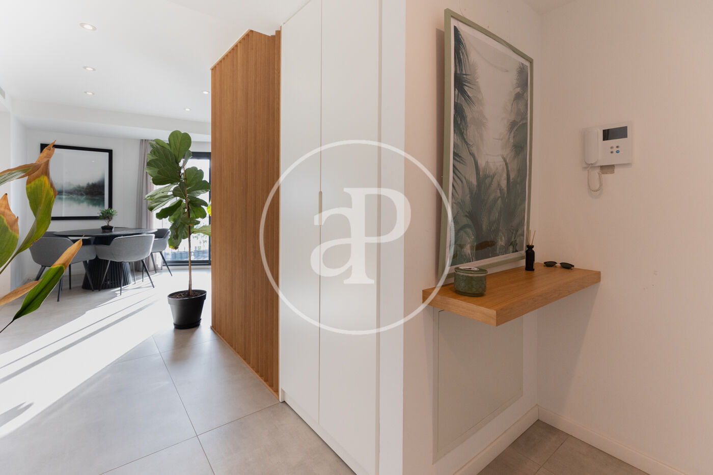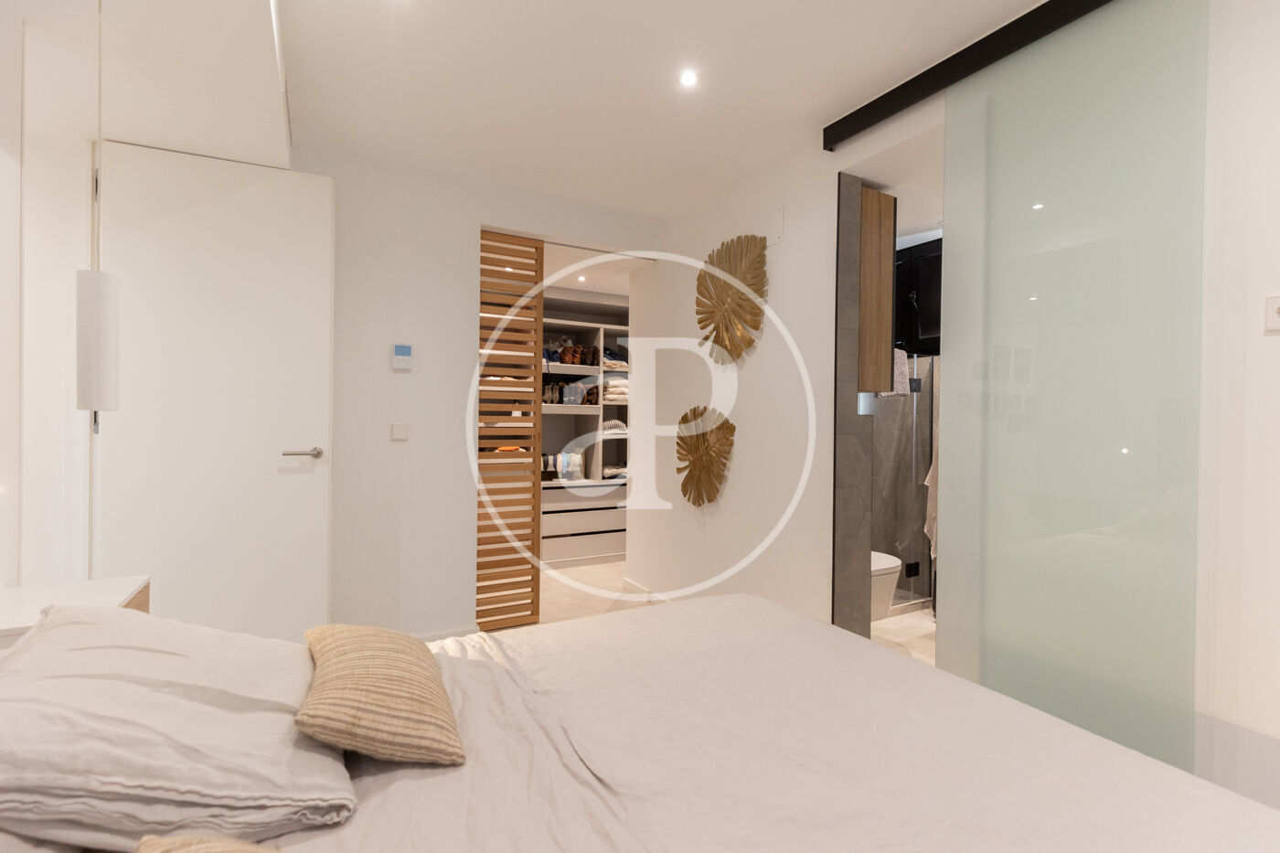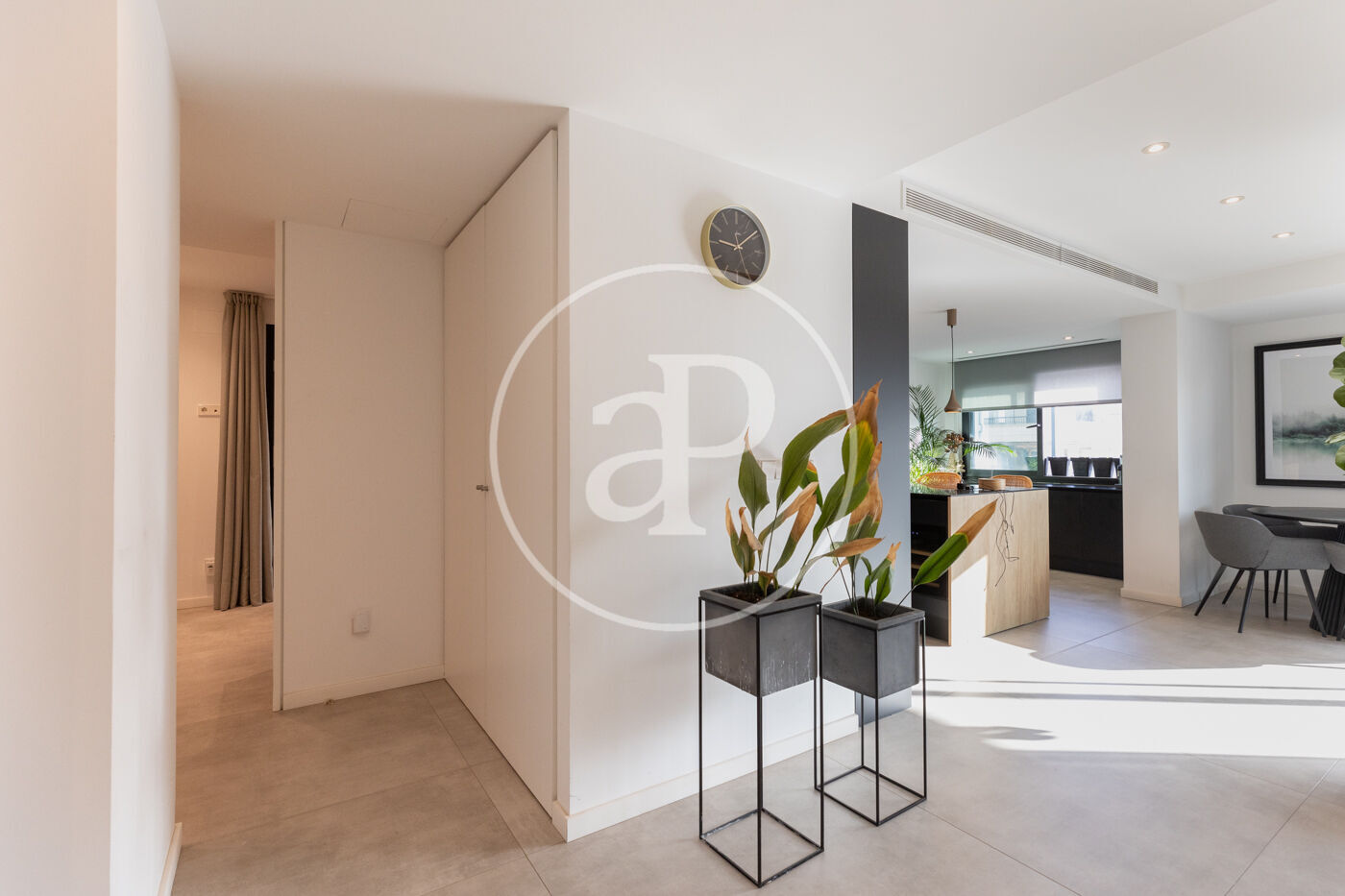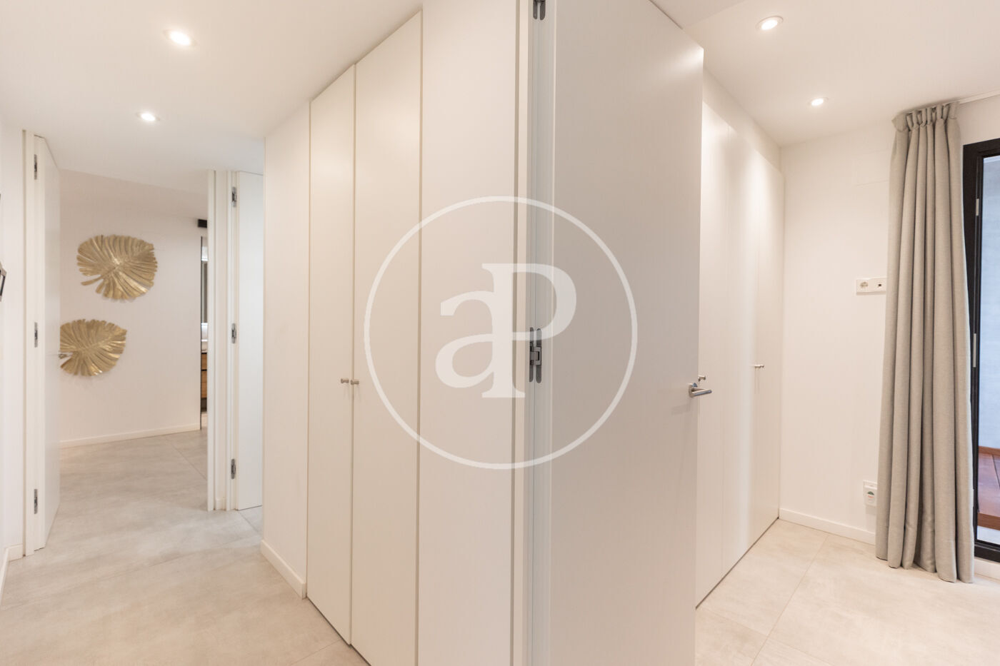 Ubicat al novè pis amb ascensor, aquest apartament completament reformat amb materials d'alta qualitat combina elegància i modernitat. Molt lluminós, ofereix un ampli espai de vida amb cuina oberta decorat amb bon gust. El confort està garantit amb terra radiant i finestres de doble vidre.
