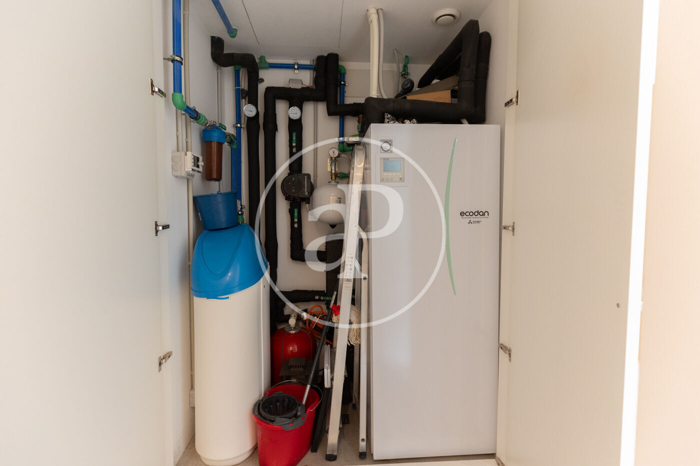 aProperties oferix este elegant àtic dúplex situat en un exclusiu complex residencial que compta amb tots els servicis i gaudix d’una ubicació privilegiada, a pocs minuts de la Ciutat de les Arts i les Ciències, l’antic llit del riu Túria, centres comercials i zones esportives. L’habitatge disposa d’una superfície construïda de 175 m², dels quals 119 m² corresponen a superfície útil, segons informació cadastral. Distribuït en dos plantes (11a i 12a), este àtic destaca per la seua lluminositat i excel·lent distribució. A la planta principal trobem un ampli saló-menjador amb eixida a un balcó de 10 m², una cuina office completament equipada amb galeria, un dormitori principal amb bany en suite i armaris encastats, tres dormitoris addicionals també amb armaris encastats i dos banys complets. A la planta superior, la propietat oferix una àmplia terrassa d’aproximadament 30 m², perfecta per a relaxar-se a l’aire lliure i gaudir de les vistes. Els acabats són d’alta qualitat: fusteria exterior d’alumini lacat en marró fosc amb vidre Climalit, sistema de climatització per conductes fred/calor, sòls de marbre i fusteria interior de fusta en excel·lent estat. El complex residencial disposa de vigilància 24 hores, piscina, zona infantil, jardins i una plaça de garatge inclosa en el preu. Situat en una de les zones més atractives i amb més projecció de València, l’immoble gaudix d’orientació est-oest i vistes diàfanes cap al port i la Ciutat de les Arts i les Ciències. En l’entorn es troben tot tipus de servicis: restaurants, entitats bancàries, col·legis, transport públic, i està a tan sols 10 minuts en cotxe de la platja. Per a més informació sobre esta propietat, no dubte a posar-se en contacte amb nosaltres. Estarem encantats d’atendre’l.