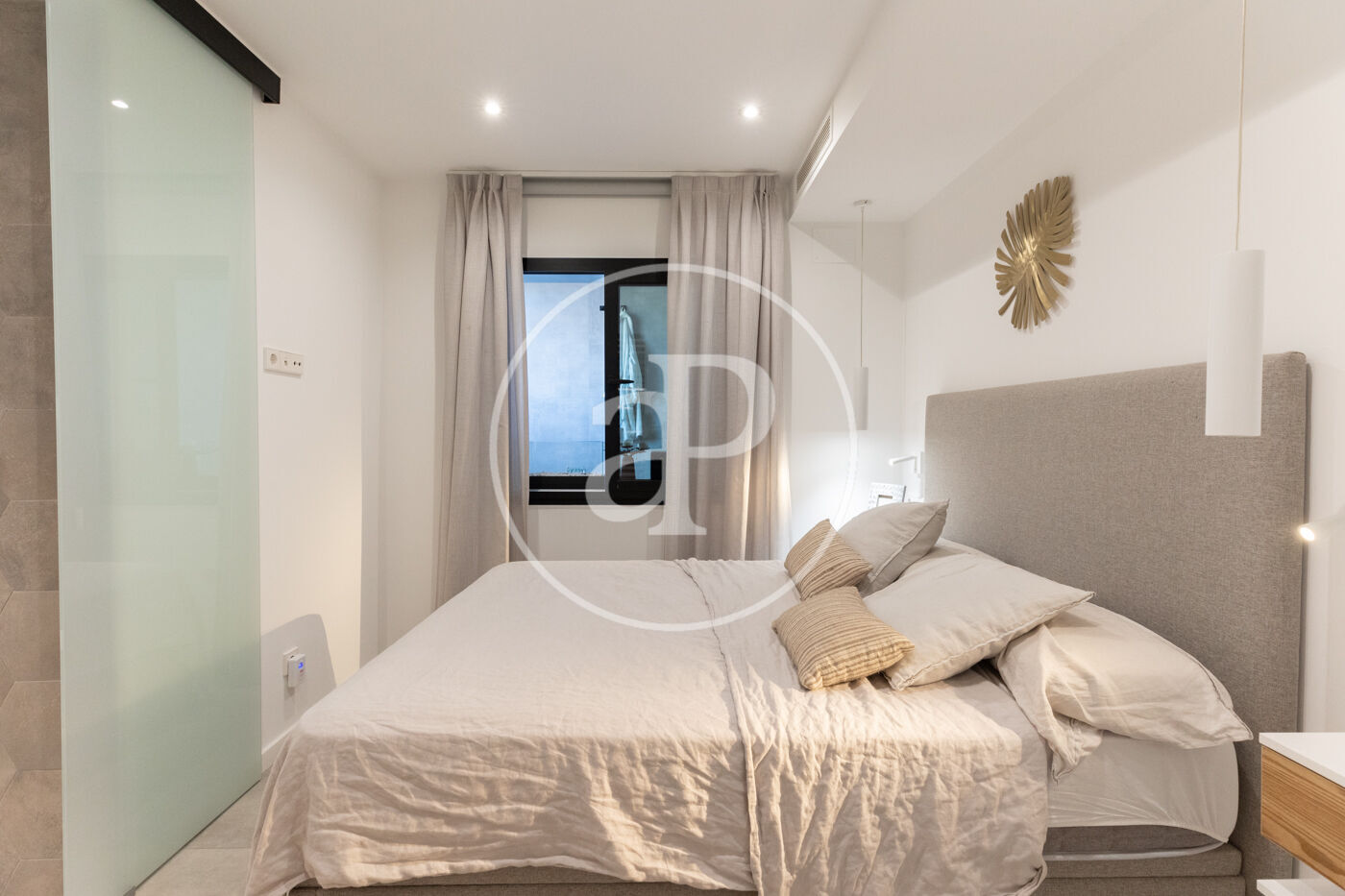 Et presentem aquest espectacular àtic dúplex, ubicat en un edifici seminou construït el 2021 i en perfecte estat de conservació. Es lliura pràcticament moblat i destaca pel seu disseny actual, excel·lents qualitats i una lluminositat excepcional gràcies als seus grans finestrals de doble alçada. A només 5 minuts a peu del mar, aquesta propietat combina comoditat, estil i una ubicació privilegiada. ✨ Característiques principals Planta principal de 99 m² on trobem: • Saló-menjador espaiós amb gran finestral, molt lluminós i amb vistes clares. • Inclou mobiliari fet a mida i armaris de doble alçada, que aporten un estil únic i gran capacitat d’emmagatzematge. • Cuina oberta totalment equipada amb una moderna illa central. • 2 dormitoris amb bany en suite i armaris encastats. Segona planta: • Espai sota teulada polivalent de 27 m², ampli i acollidor, ideal com a zona de lectura, sala de jocs o dormitori addicional. • Terrassa privada de 25 m² amb total privacitat, perfecta per relaxar-se sense ser vist. • Despatx o habitació independent, situada al costat de la terrassa, ideal per teletreballar en un entorn tranquil i íntim. Més detalls: • Grans finestrals a ambdós costats de l’habitatge que proporcionen llum natural durant tot el dia. • Parquet de bambú natural a totes dues plantes, que aporta calidesa, elegància i durabilitat. • Instal·lació de bomba de calor amb splits independents a cada estança, que permet una climatització eficient i personalitzada a tot l’habitatge. • Edifici modern amb ascensor i pocs veïns. • Opció de plaça d’aparcament en edificis adjacents.