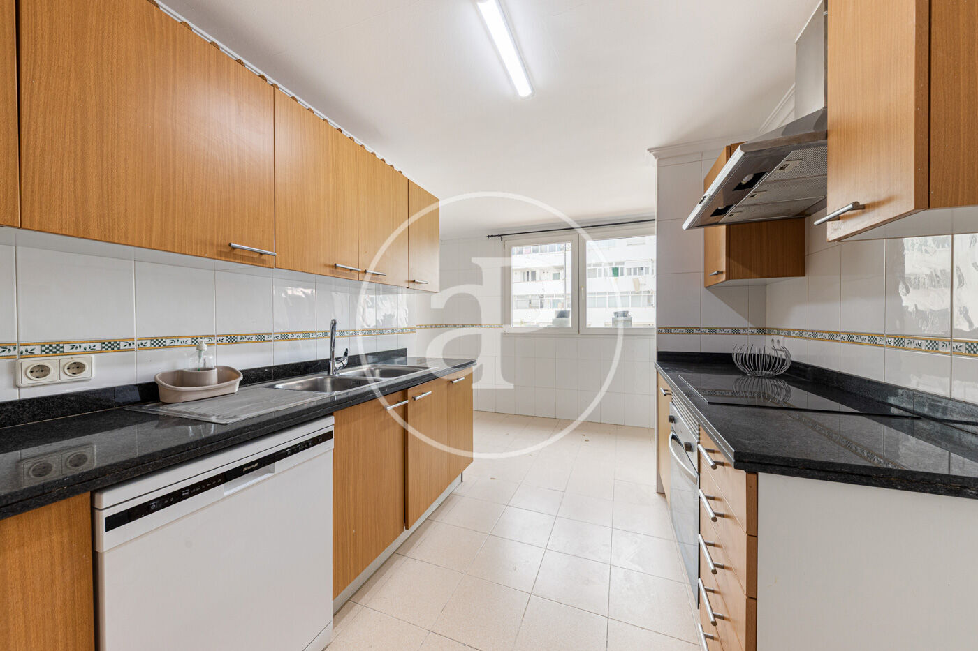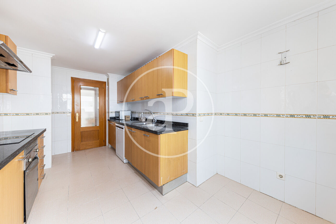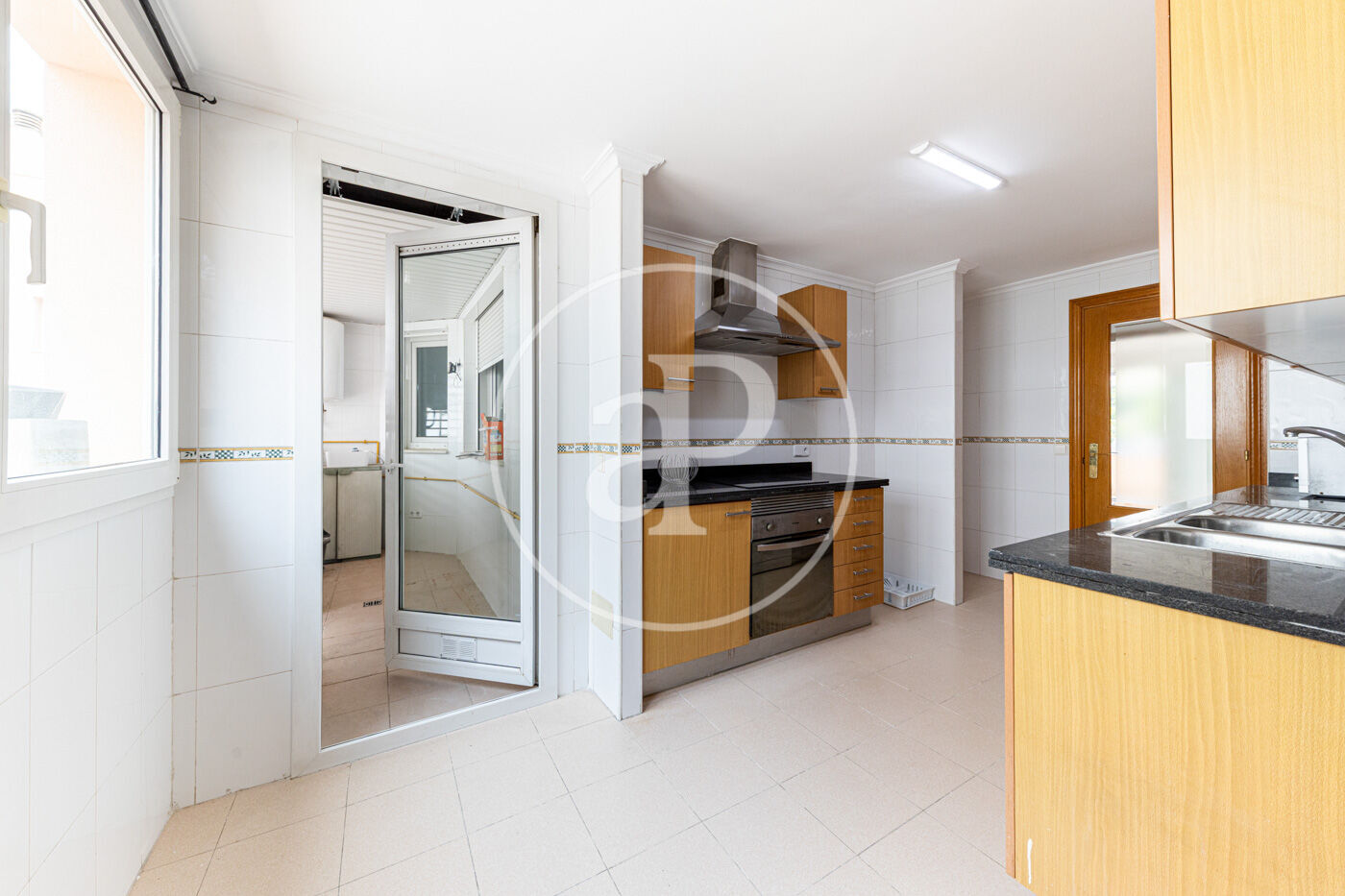 El saló-menjador, ampli i molt lluminós, dona accés a un segon balcó exterior, perfecte per gaudir de la llum natural. La cuina és independent i connecta amb una galeria espaiosa, ideal com a zona de bugaderia i emmagatzematge.