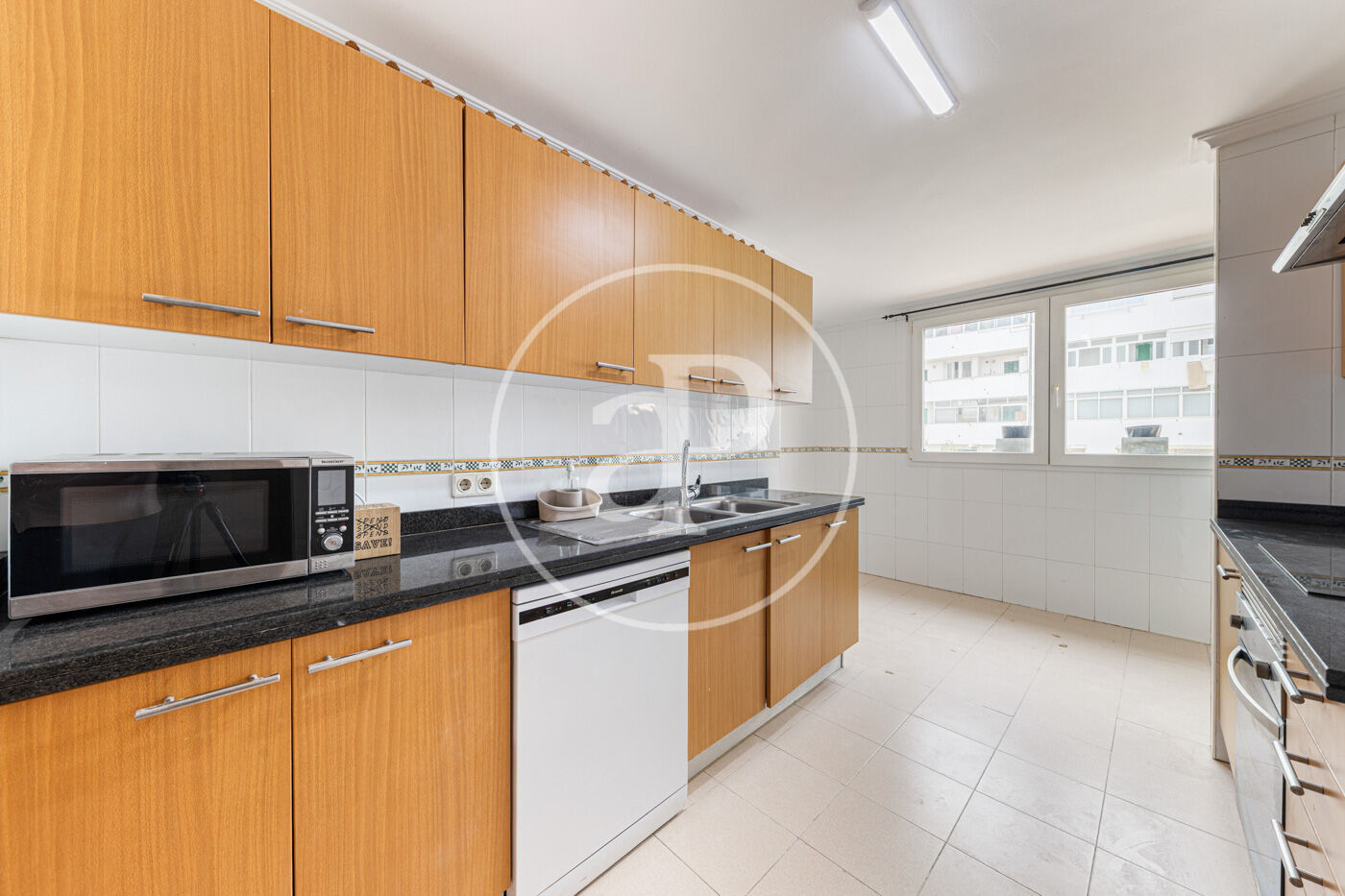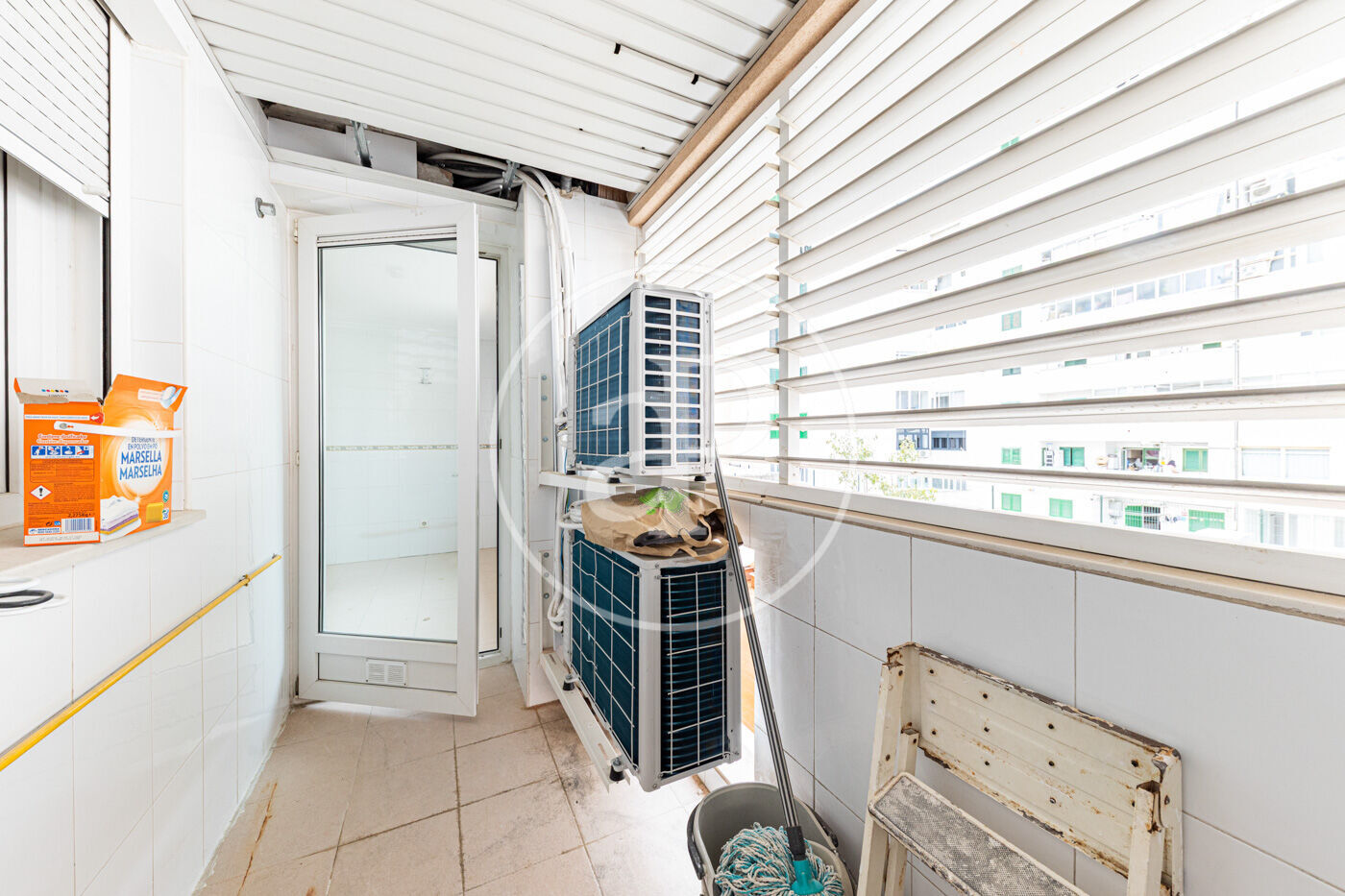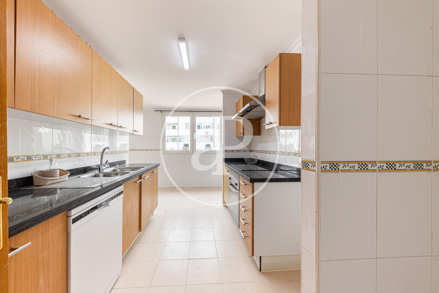 El saló-menjador, ampli i molt lluminós, dona accés a un segon balcó exterior, perfecte per gaudir de la llum natural. La cuina és independent i connecta amb una galeria espaiosa, ideal com a zona de bugaderia i emmagatzematge.