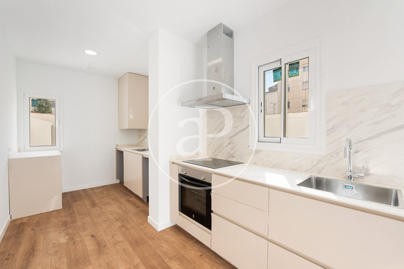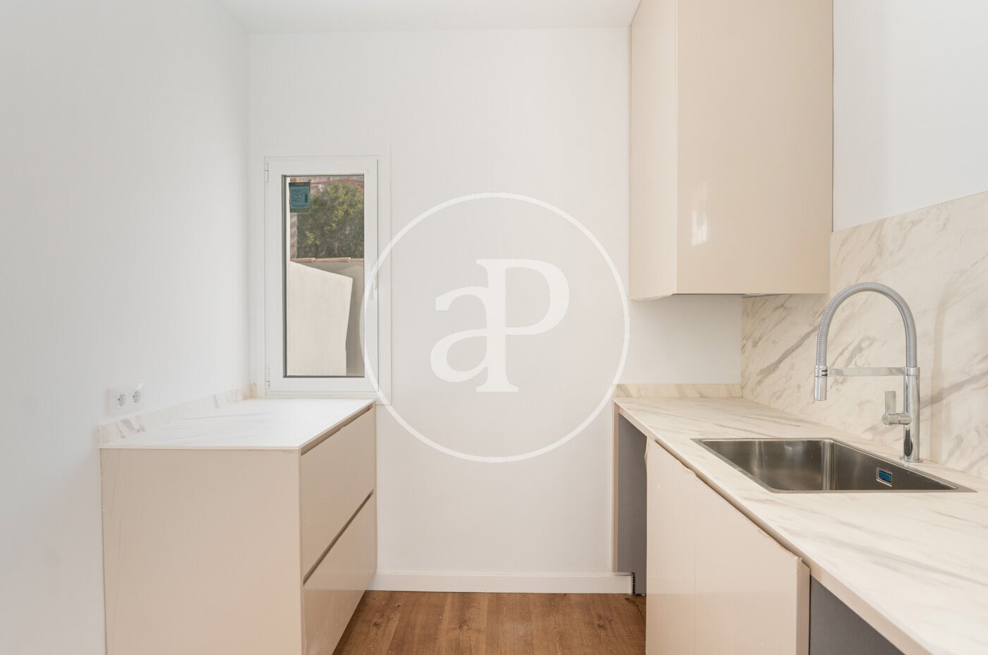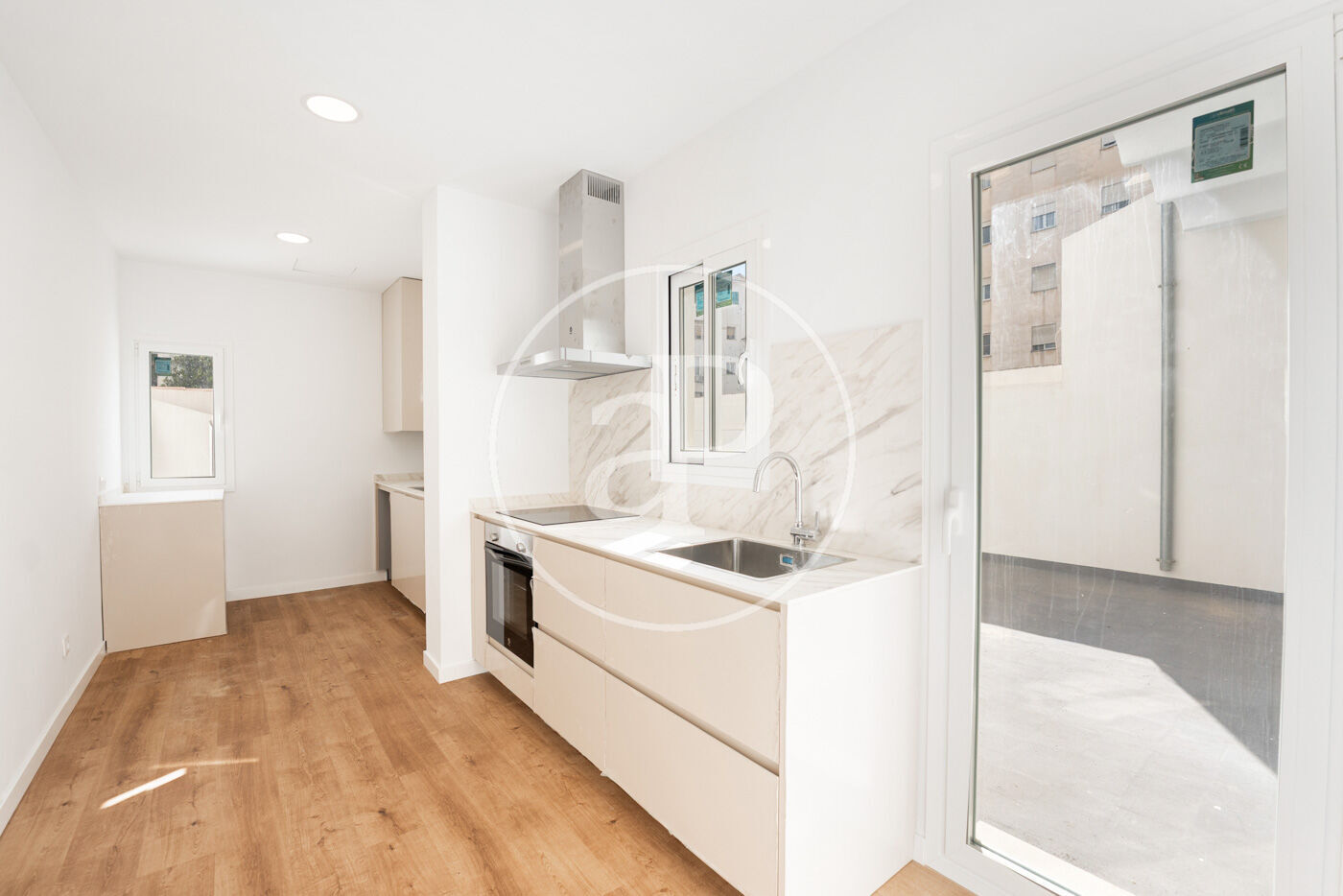Des de la porta d’entrada a l’habitatge, a través d’un passadís, accedim a la zona de dia, on trobem un ampli i lluminós saló-menjador amb accés directe a una còmoda terrassa de 60m², perfecta per gaudir de l’aire lliure al bell mig de la ciutat. La cuina independent està totalment moblada i disposa d’espai suficient per incorporar-hi una taula o una barra d’esmorzar, ideal per a aquells que gaudeixen de cuinar i compartir moments en família.