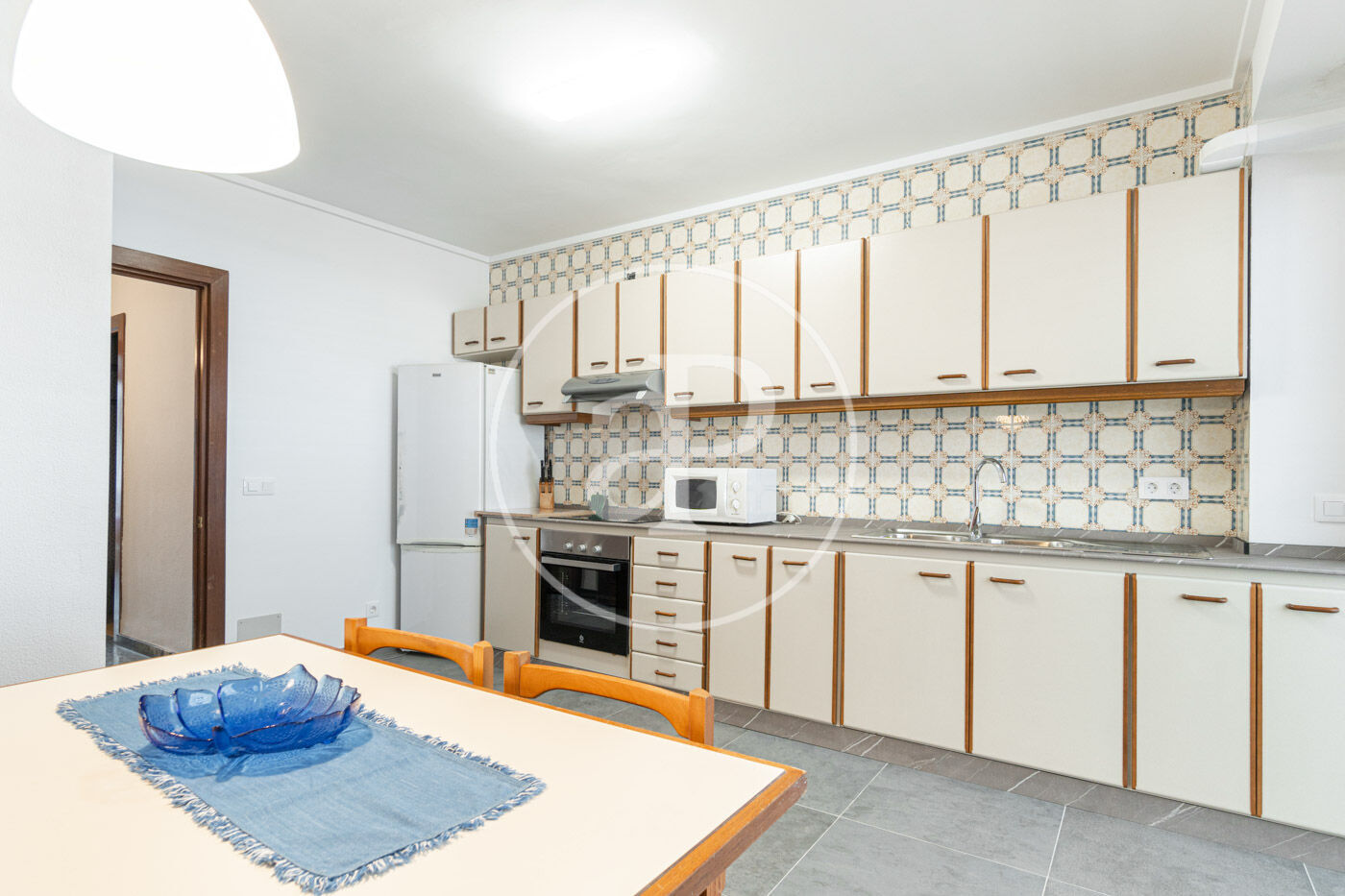 L’immoble consta d’un ampli i lluminós saló-menjador que comunica amb un balcó, permetent unes vistes fantàstiques de la ciutat. Abans d’entrar a la zona de nit, trobem una cuina equipada amb tot el necessari.