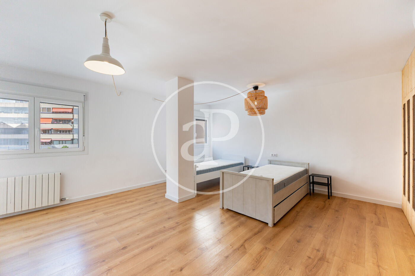 Disposa actualment de dos amplis dormitoris: una habitació doble amb bany en suite i una segona estança de gran mida, ideal com a dormitori quàdruple, sala polivalent, despatx o zona d’oci. Existeix a més la possibilitat de recuperar la seva configuració original de dues habitacions dobles, ambdues exteriors, amb finestra doble i armaris encastats dobles.
