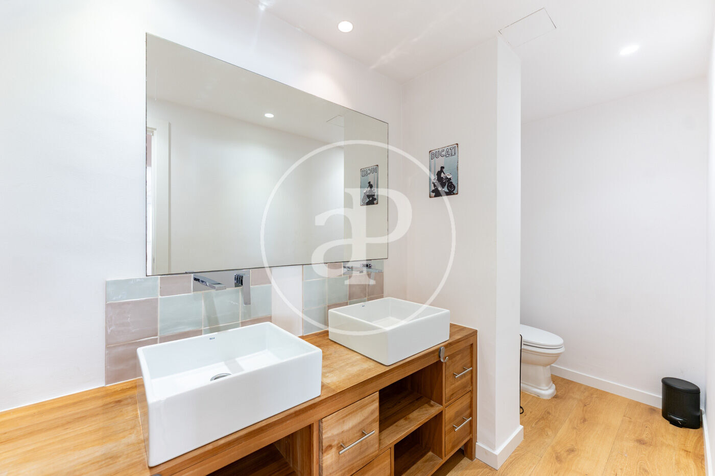 L’habitatge compta amb dos banys complets, un amb dutxa tipus pluja i un altre amb banyera i doble lavabo, a més d’un pràctic rebost i una zona independent de bugaderia amb rentadora.