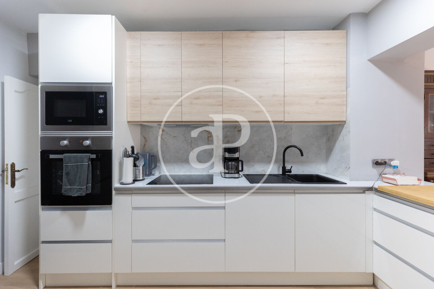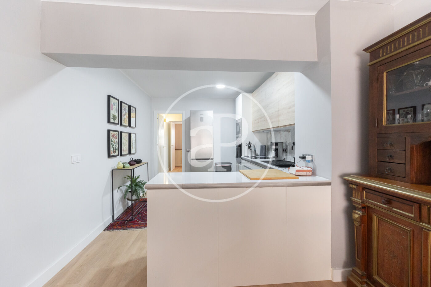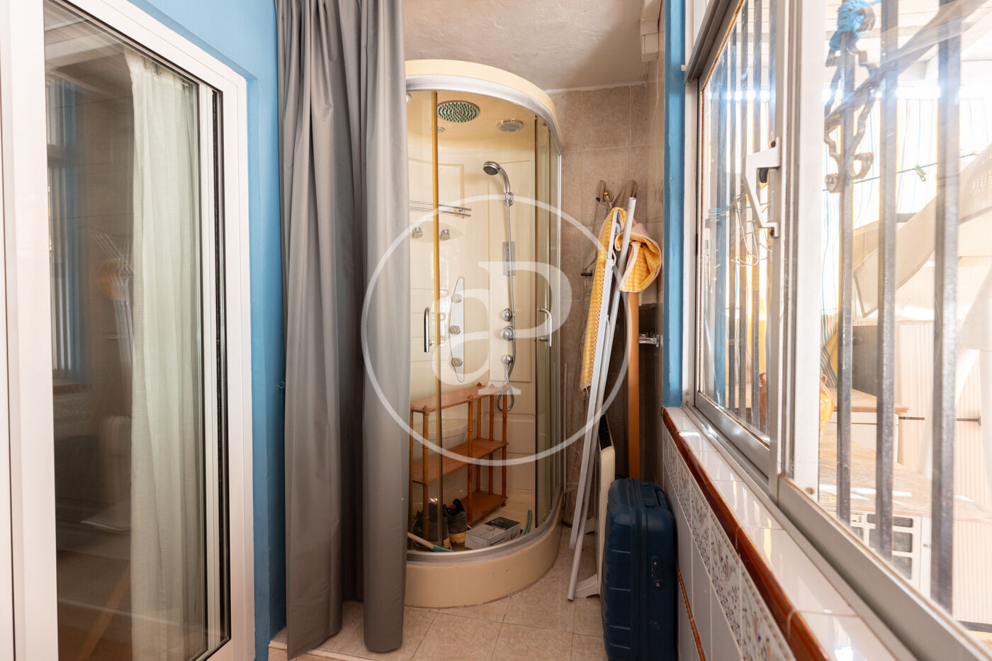 La zona de dia és lluminosa i funcional, amb un saló que es connecta perfectament a una cuina d'estil modern oberta, equipada amb electrodomèstics d'alta gamma. Al costat de la cuina, un pràctic espai de bugaderia amb galeria augmenta la comoditat. Des del saló, s'accedeix a una sala de vidre amb dutxa, que es pot adaptar com a lavabo addicional, i des d'allà a l'àmplia terrassa, perfecta per relaxar-se o rebre visites.
