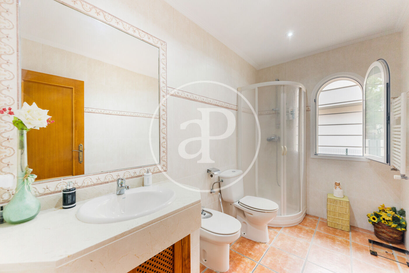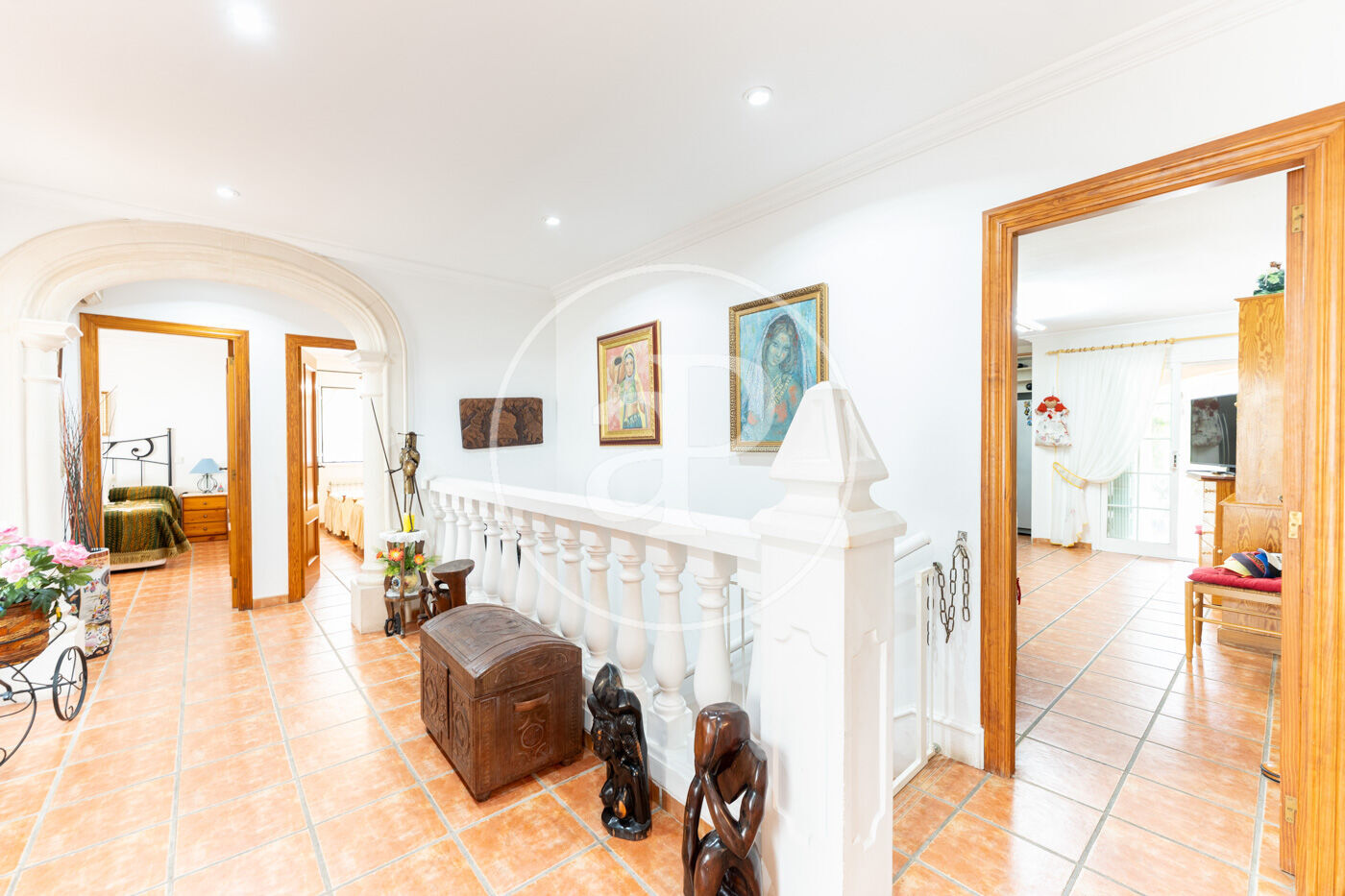 A la planta superior trobem una altra àmplia terrassa amb boniques vistes i múltiples possibilitats per adaptar-la a les teves necessitats. Al soterrani, la casa ofereix un enorme garatge amb capacitat per a fins a quatre cotxes, un bany complet, una acollidora sala d’estar amb cuina, llar de foc i forn de llenya, a més d’una impressionant bodega de vi. Aquest espai ofereix la possibilitat de transformar-se fàcilment en un apartament independent o en una zona d’oci ideal per a família i amics.