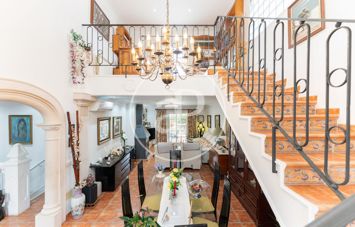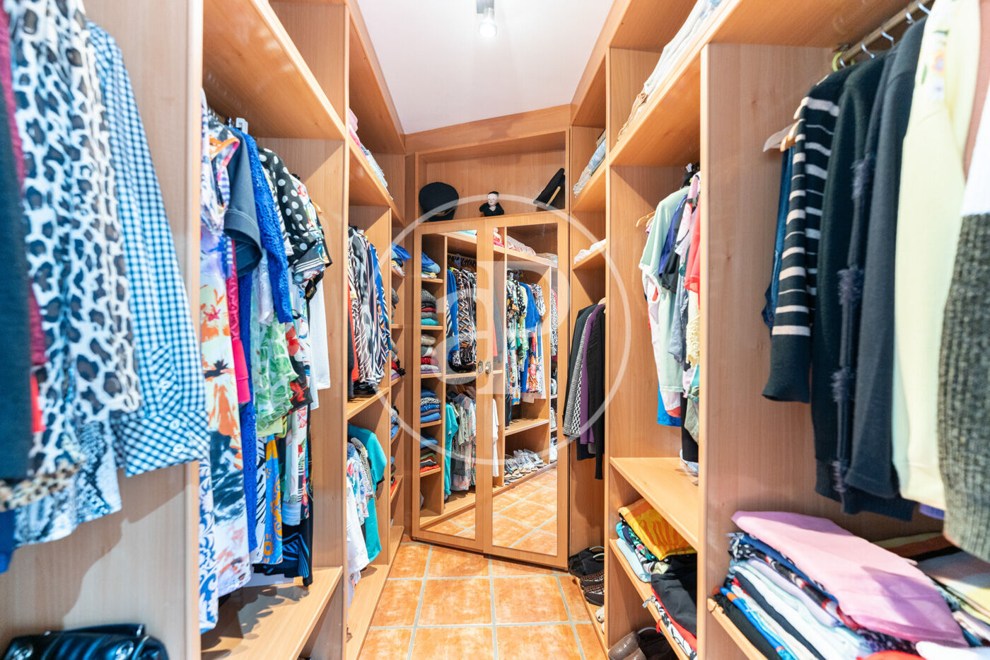 Es tracta d’una casa única al centre de Sant Just, excepcional per la seva gran parcel·la de gairebé mil metres quadrats, on l’habitatge ocupa cent setanta-dos metres, i la resta està destinada a jardí, amb una gran piscina, un frontó i una zona de barbacoa —tot això al centre de Sant Just, un fet força especial. La casa va ser reformada íntegrament l’any 2018, de manera que està llesta per entrar-hi a viure sense necessitat de fer-hi cap millora. La característica principal d’aquesta casa és la lluminositat que inunda totes les estances i l’amplitud dels seus espais. L’habitatge consta de quatre plantes i una superfície construïda total de 571 m², i disposa d’un ascensor hidràulic. Accedim a la vivenda per la porta principal, on ens rep un ampli rebedor que dona pas a un saló molt acollidor i ple de llum natural, amb llar de foc i sortida a una gran terrassa. En aquesta mateixa planta hi ha una sala polivalent amb accés directe al jardí, des del qual es pot gaudir de la piscina d’aigua salina i del frontó. També hi trobem un dormitori doble amb bany complet i la sala de màquines. A la primera planta hi ha el saló menjador principal amb llar de foc i sortida a un preciós porxo d’uns 18 m² amb vistes espectaculars. En aquesta mateixa planta hi trobem una bonica cuina molt lluminosa, totalment equipada amb electrodomèstics d’alta gamma i mobiliari Alimodul: placa de cocció de gas Smeg, campana Pando, forn, microones i rentaplats integrats Bosch, així com dues neveres (una Whirlpool i una Bosch integrada). Annex a la cuina hi ha el safareig, amb rentadora Bosch, assecadora AEG i armaris d’emmagatzematge. La zona de nit està separada en aquesta mateixa planta i consta de quatre dormitoris dobles, un d’ells en suite amb una gran quantitat d’armaris encastats i unes vistes precioses al jardí. La resta de dormitoris comparteixen un ampli bany complet. A l’última planta hi ha tres dormitoris dobles i un bany complet compartit, amb sortida a dues grans terrasses: una de 55 m² amb vistes al mar i una altra de 44 m² amb vistes al jardí. Aquesta planta és, sens dubte, la joia de la casa i podria funcionar com un apartament independent. A la planta soterrani hi trobem el garatge amb capacitat per a tres o quatre cotxes, a nivell de carrer, una sala d’emmagatzematge amb lavabo de cortesia, la sala de màquines i un traster. Annexa a aquesta zona hi ha un celler amb unes boniques bigues de fusta vistes. És una casa ideal per a famílies, molt lluminosa i totalment atemporal. Vine a veure-la —t’encantarà!