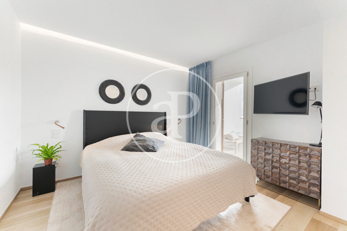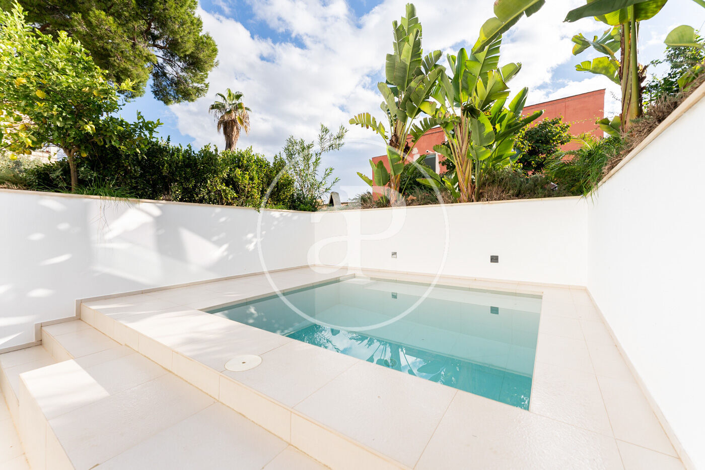 A la planta inferior (zona de dia) hi ha un tercer dormitori i un segon bany, a més de racons addicionals ideals per emmagatzematge. La cuina d’obra oberta s’integra amb l’elegant saló-menjador, creant un ambient social perfecte que s’estén cap a una terrassa coberta, ideal per gaudir durant tot l’any. Des d’aquí, unes escales condueixen a la zona ajardinada, on una àmplia terrassa oberta de 68 m² envolta la piscina privada. En aquest nivell hi ha també un espai addicional actualment utilitzat com a bugaderia i traster.