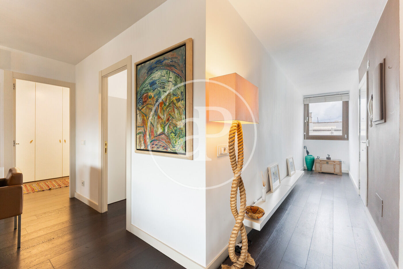 Els sòls de parquet fosc, les finestres de gran format i la il·luminació acurada reforcen la sensació de confort i estil a tot l’àtic. Té aire condicionat per splits i calefacció a gas.