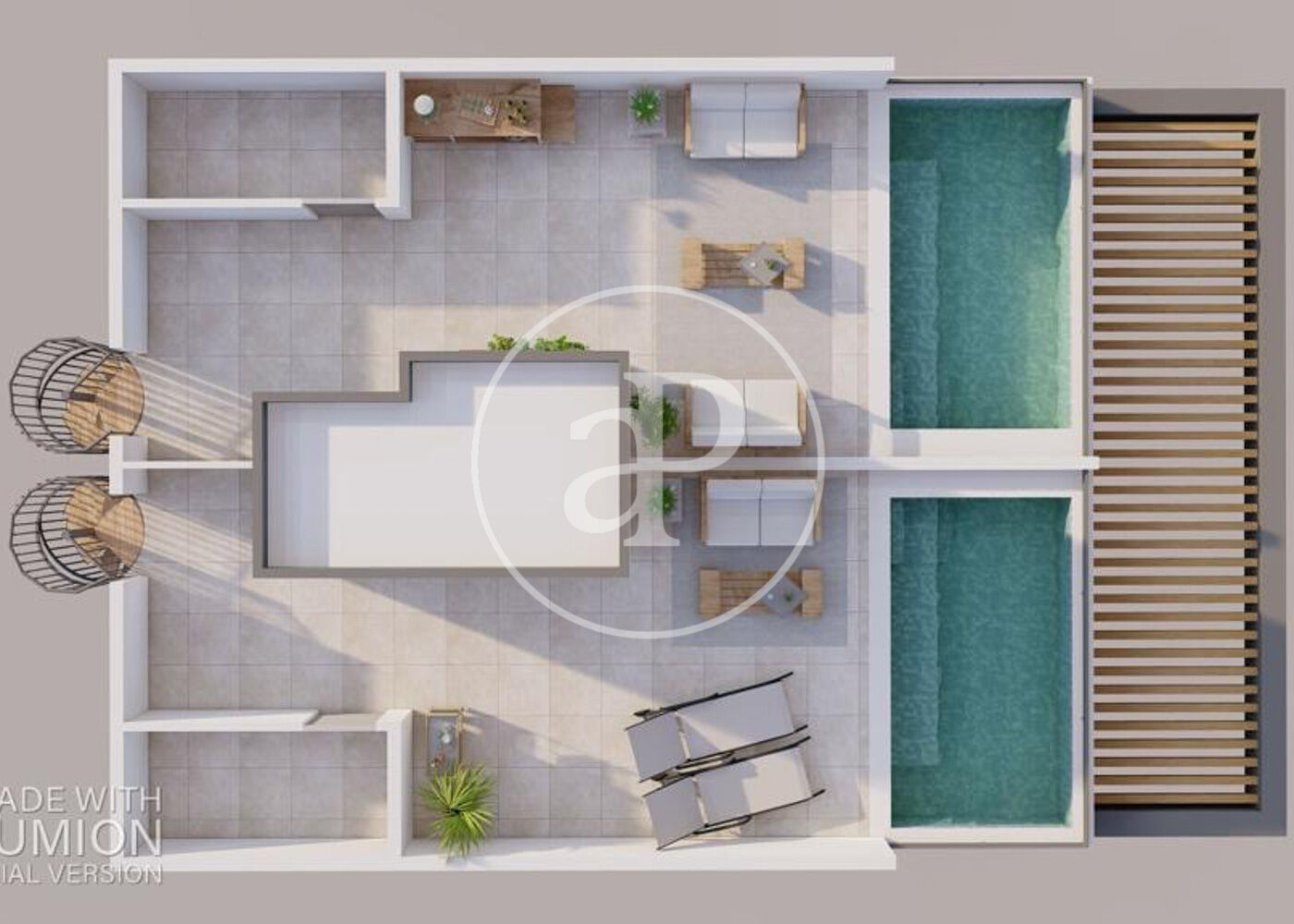 La seva joia indiscutible és la terrassa privada amb piscina, un espai perfecte per relaxar-se, rebre convidats o contemplar la posta de sol sobre la Mediterrània. A més, la propietat disposa de terrasses addicionals, jardí i accés a una piscina comunitària.