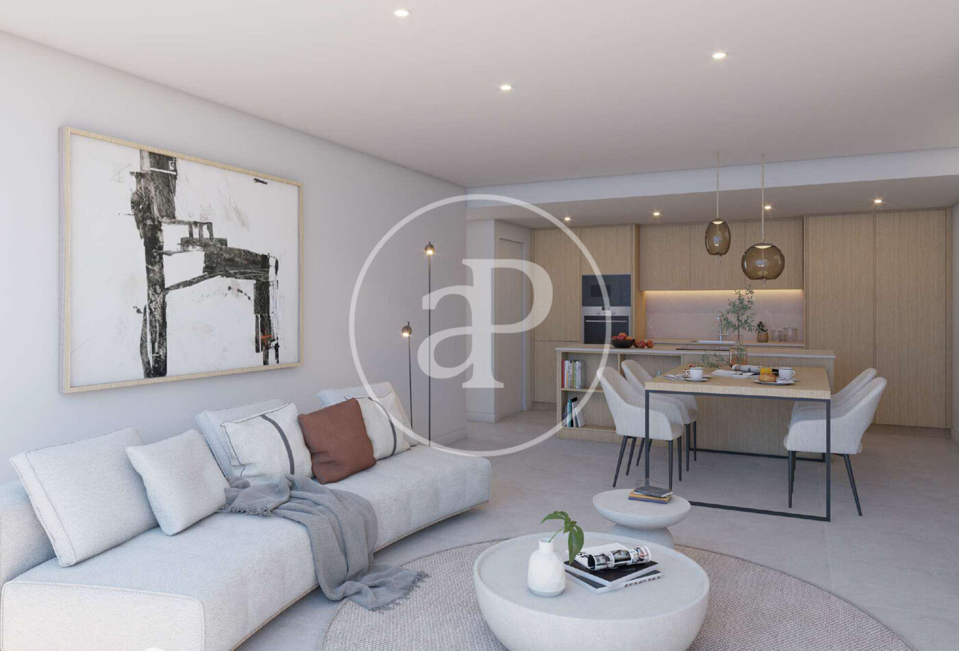 A més, els residents poden gaudir d'un gimnàs privat a la terrassa pròpia amb piscina i de capvespres màgics. L'escalinata oberta al pati central té zona enjardinada i ascensors de darrera generació. Aquesta és una oportunitat única per viure en un entorn cèntric a prop del mar i gaudir d'un estil de vida modern amb totes les comoditats, ja sigui com a residència principal, segon habitatge o inversió per al futur.