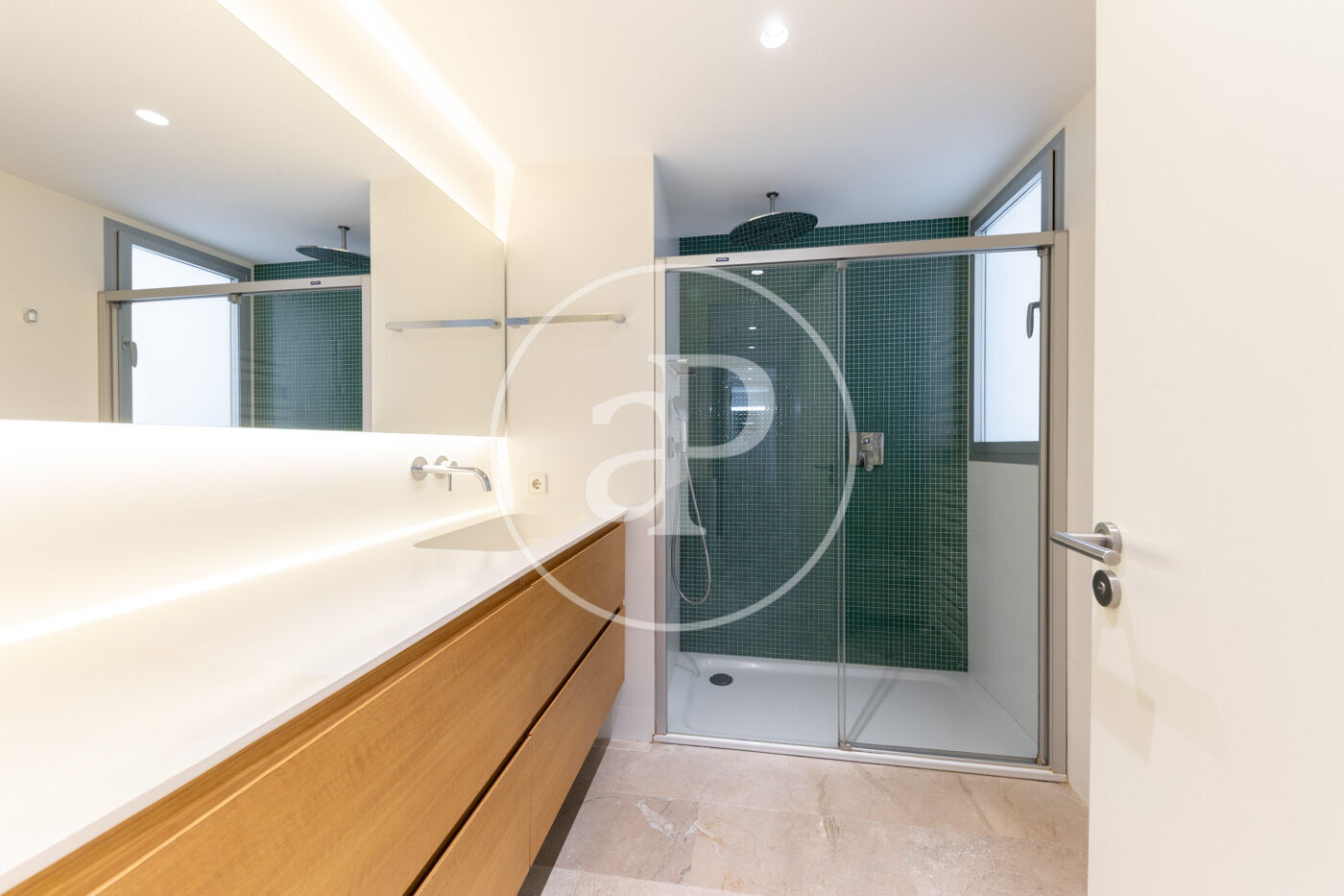 La zona de nit es compon de tres habitacions dobles amb armaris encastats i dos banys complets, un d’ells en suite. Totes les habitacions tenen sortida directa a la magnífica terrassa de 60 m², que disposa d’una vela d’ombra, convertint-se en un espai exterior ideal per gaudir del clima mediterrani, amb espai per a una taula de menjador i una zona de sofàs.