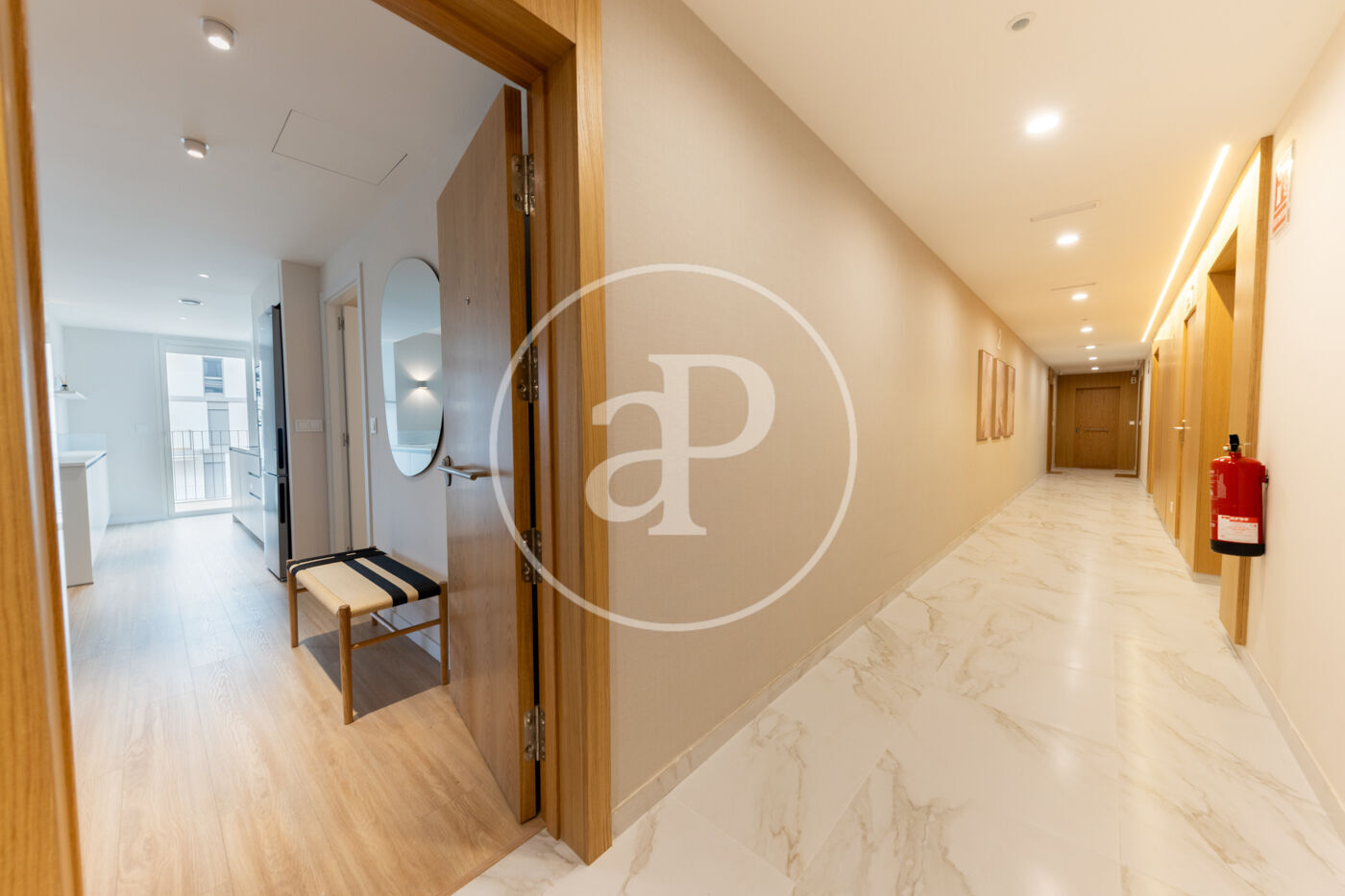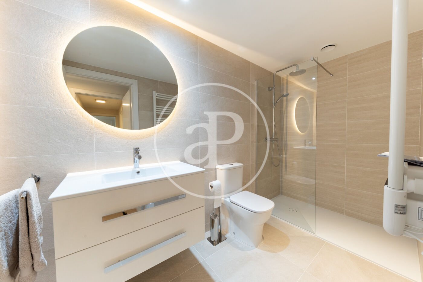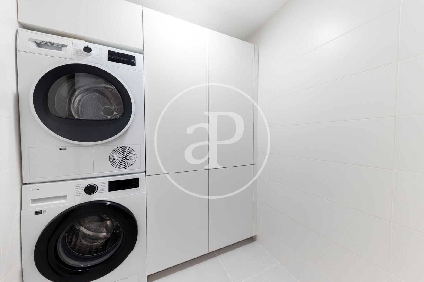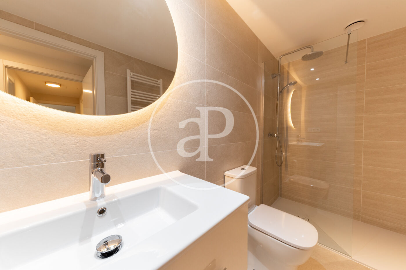 Descobreix aquest impressionant àtic cantoner, totalment exterior i banyat de llum natural gràcies a les seves 8 finestres al carrer. Un habitatge únic pel seu disseny, pels acabats de primer nivell i pel confort tecnològic present a cada detall. Consta de 124m2 construits de pis, 3m2 de balcons i 70m2 de terrassa privativa al terrat. La propietat disposa de dues àmplies habitacions dobles, una d’elles en suite, i dos banys complets, un d’ells també en suite. Els armaris encastats amb il·luminació interior i la fusteria de roure natural feta a mida reflecteixen la cura i la qualitat de cada racó. El bany principal combina elegància i benestar amb un bidet japonès Laufen, una banyera exempta i una dutxa amb tres tipus de sortidor (efecte pluja, mà de dutxa i pressió), amb aixetes de la marca Drombach. El saló-menjador és ampli, lluminós i confortable, amb endolls al terra per a la il·luminació i aire condicionat fred/calor a tot l’habitatge. Els terres radiants i la domòtica integral garanteixen el màxim confort. Un despatx obert amb una gran llibreria separa ambients aportant funcionalitat i estil. La cuina semioberta de noguera americana és un autèntic espai professional, equipada amb: Cafetera Wolf amb calaix escalfador de tasses Doble nevera tipus americà Nevera de doble calaix per a fruites i verdures Gran boteller de vi Taulell de pedra fins a la paret Aixeta professional tipus restaurant amb triturador a la pica Aixeta auxiliar al costat dels fogons per omplir les olles Cuina de 4 fogons i planxa francesa Dos forns de convecció (un gran i un de petit) Forn de vapor Wolf Forn microones i màquina d’envasar al buit Descalcificador i sistema d’osmosi A més, compta amb zona d’aigües independent equipada amb rentadora i assecadora LG, i filtre antical a tot l’habitatge. Com a toc final, gaudeix d’una àmplia terrassa d’ús exclusiu a la coberta de l’edifici, ideal per crear-hi el teu propi espai chill-out o zona d’oci. Actualment, l’accés és mitjançant l’escala comunitària. Un habitatge únic, on el disseny, la tecnologia i el confort s’uneixen en un espai irrepetible. No trobaràs un àtic tan increïble com aquest. Contacta amb nosaltres per concertar la teva visita!