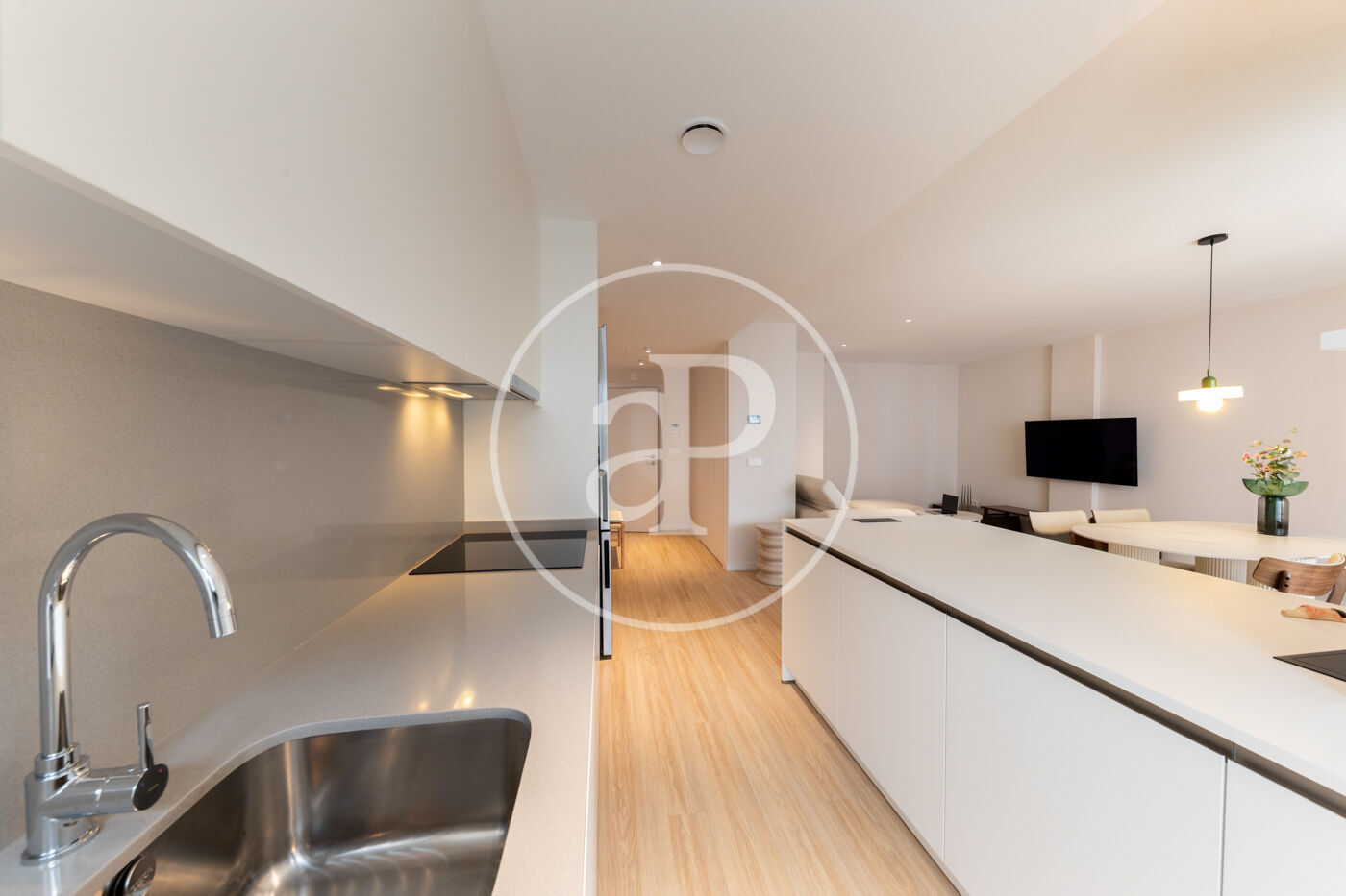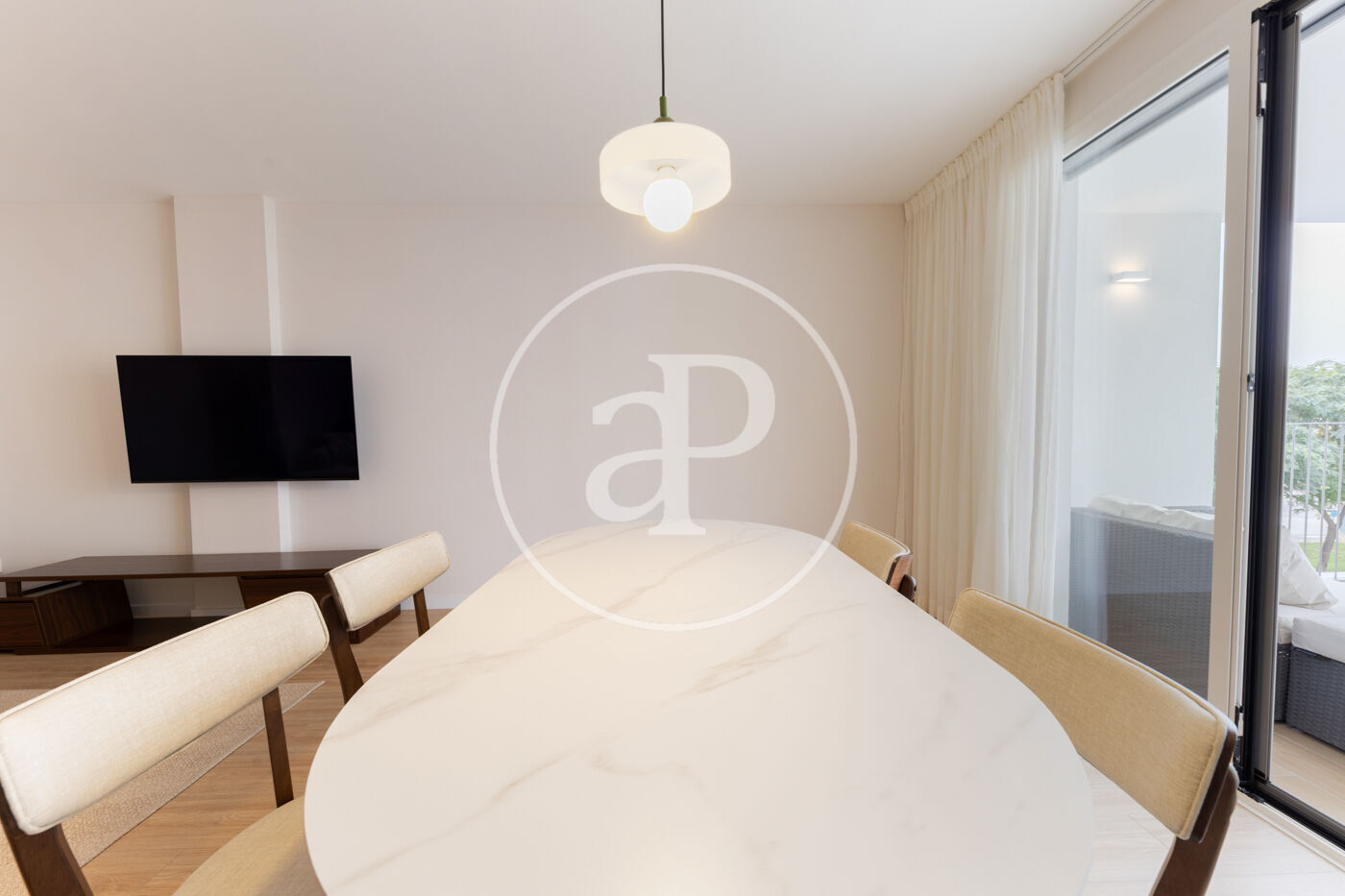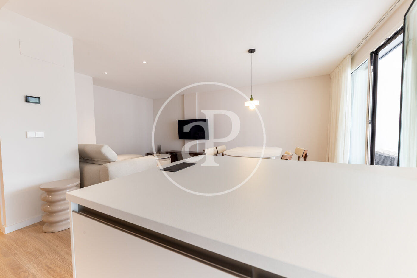 Disposa d´una terrassa privada ideal per relaxar-se i gaudir de l´entorn, a més d´un saló-menjador connectat directament amb ella, dues habitacions àmplies i una cuina totalment equipada que combina funcionalitat i estil.
