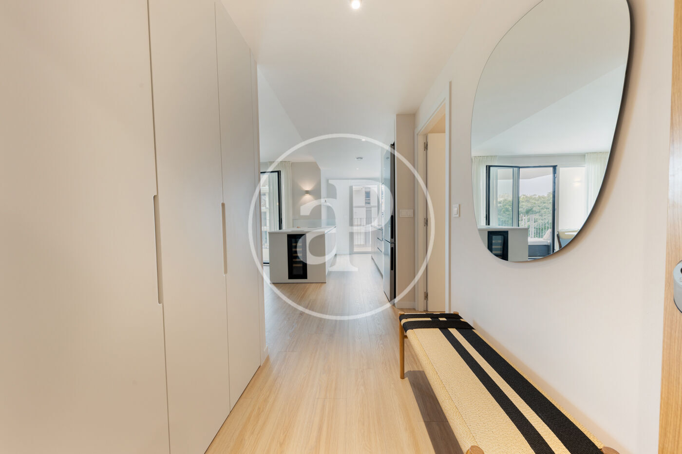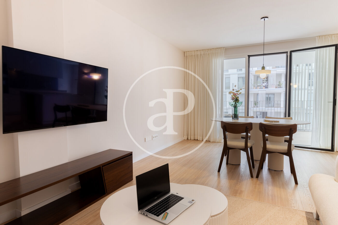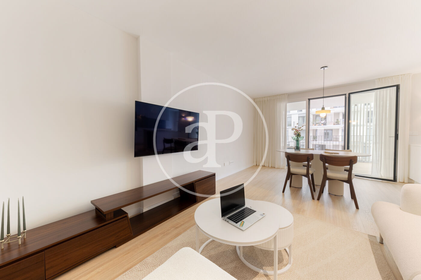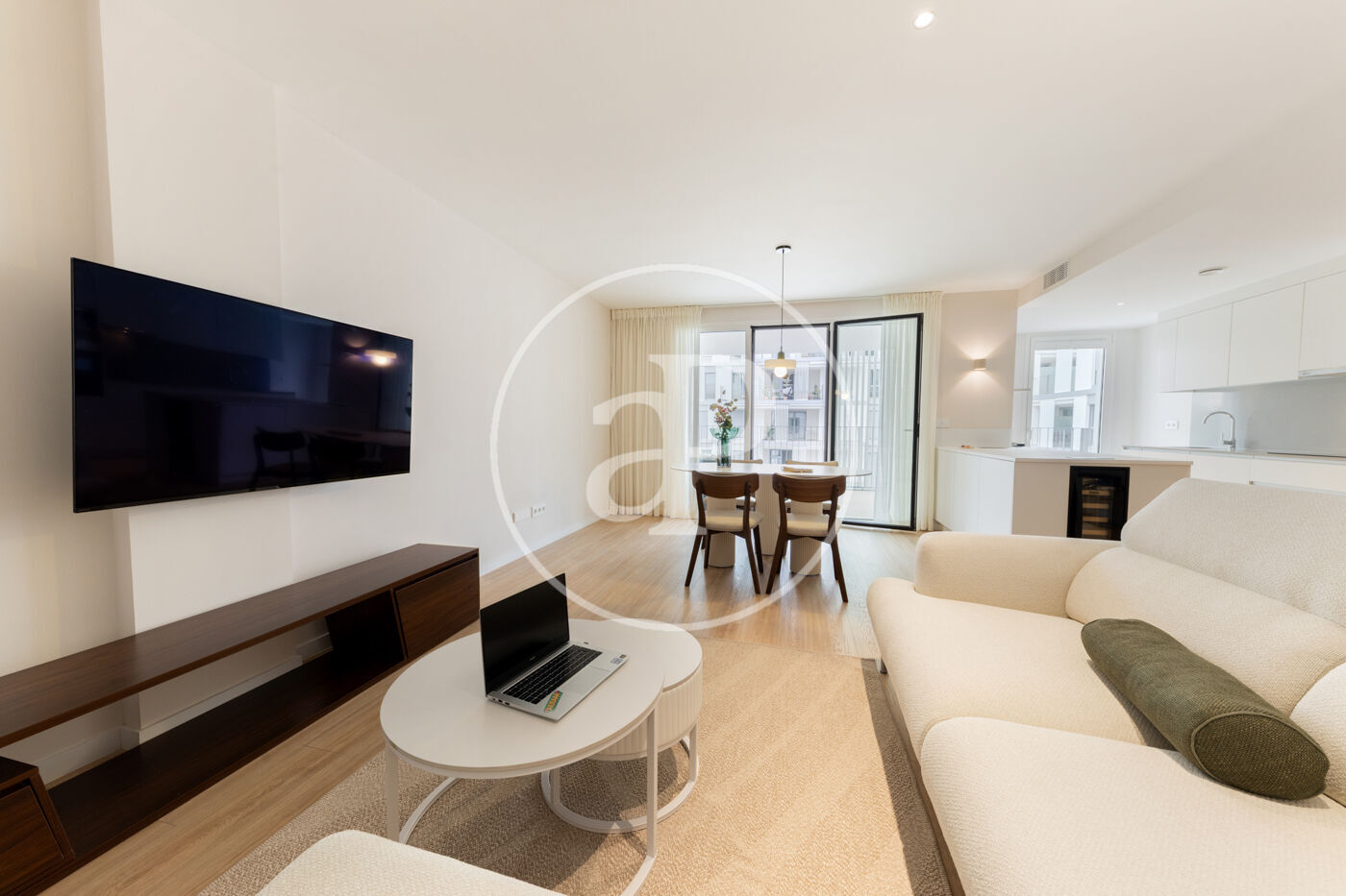 Disposa d´una terrassa privada ideal per relaxar-se i gaudir de l´entorn, a més d´un saló-menjador connectat directament amb ella, dues habitacions àmplies i una cuina totalment equipada que combina funcionalitat i estil.