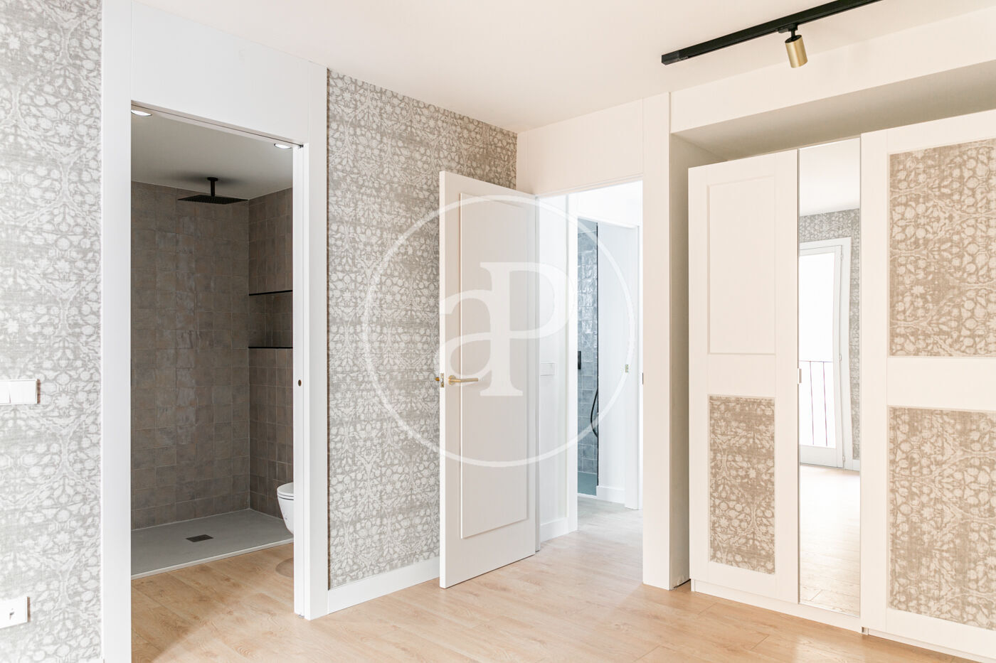 La cuina de disseny contemporani compta amb una còmoda bugaderia i zona d'aigües, brindant-te practicitat i estil. La zona de descans consta de dos dormitoris dobles exteriors, tots dos amb armaris encastats, i amb finestrals de terra a sostre que ofereixen lluminositat i amplitud. A més, el dormitori principal compta amb un modern bany en suite i un vestidor per a més comoditat, l'altre dormitori amb precioses vistes frontals a la Plaça de l'Artesania. El segon bany, elegant i funcional, pot servir tant per a la segona habitació com pels teus convidats.