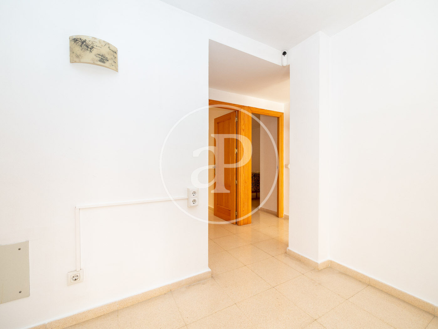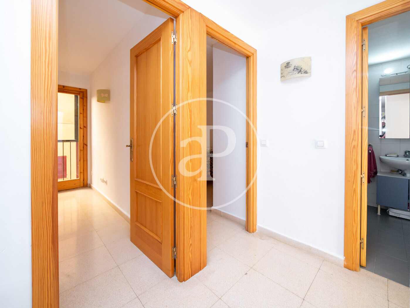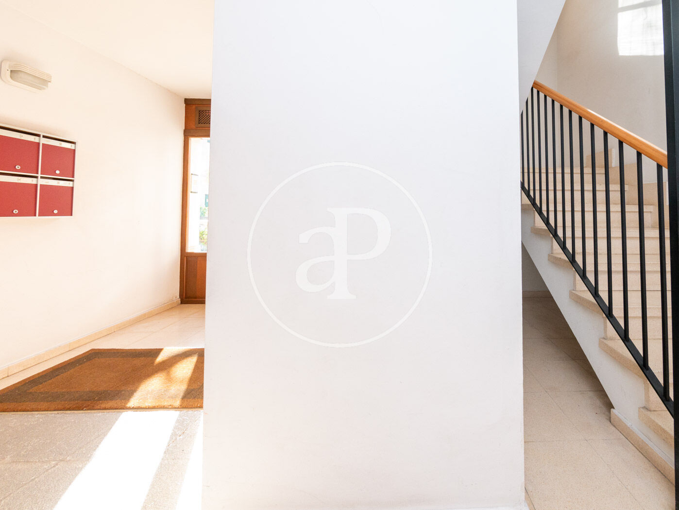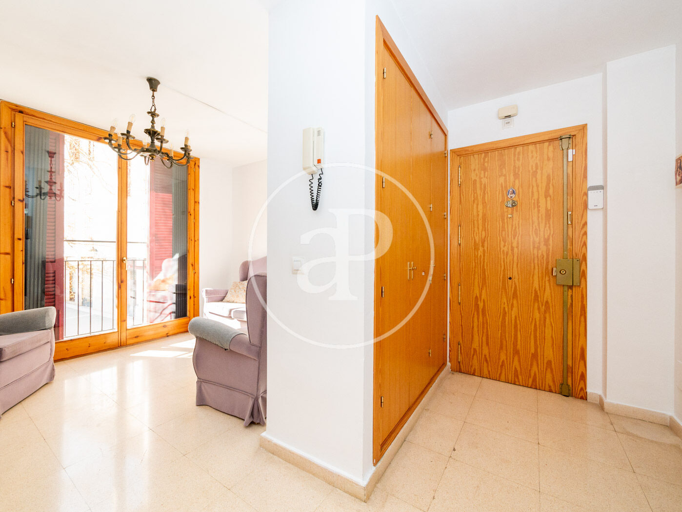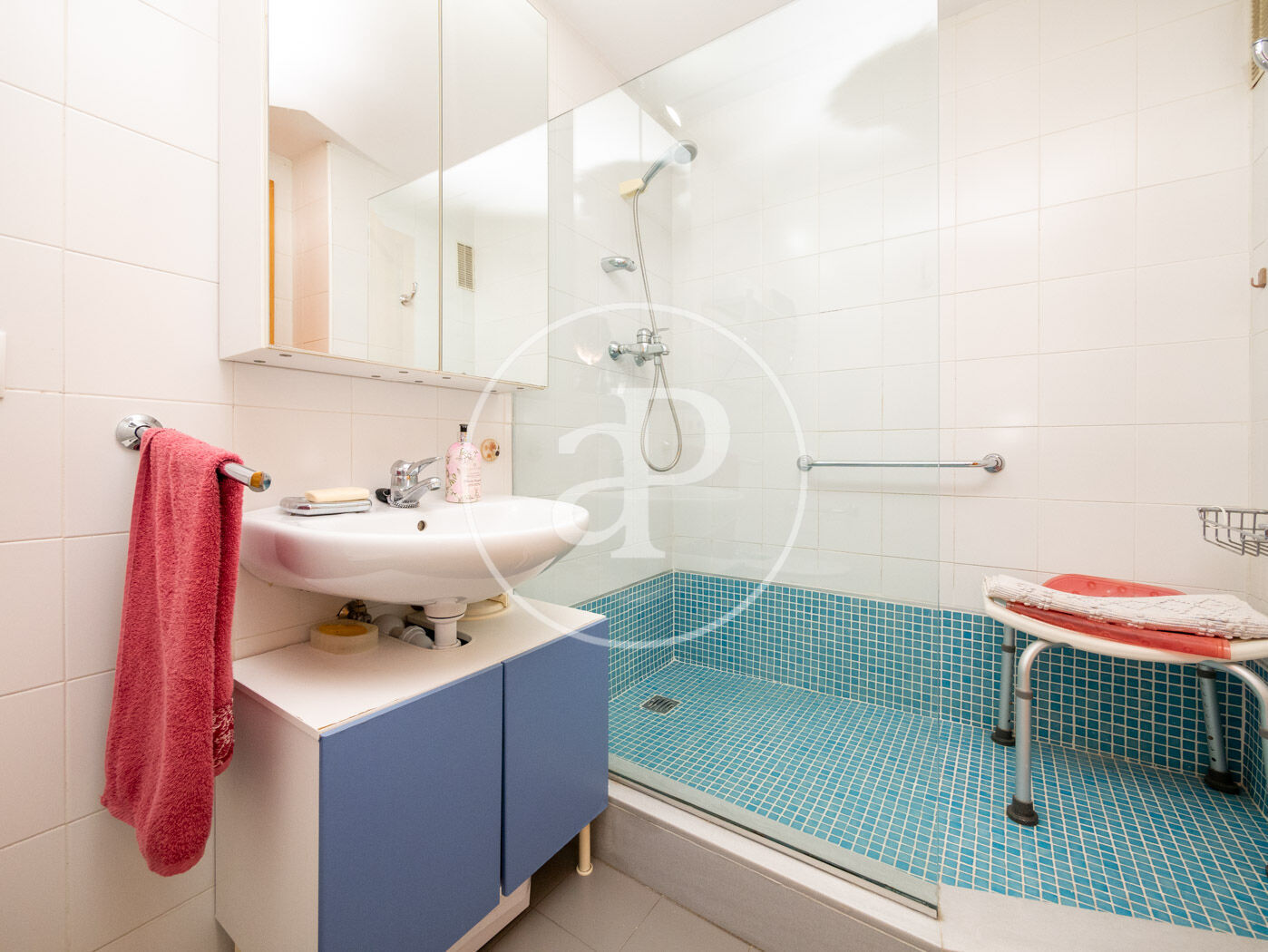 El pis disposa de tres habitacions totalment exteriors, totes amb armaris encastats i un bany complet amb dutxa. L'equipament inclou porta de seguretat, fusteria interior i exterior de fusta -l'exterior amb doble vidre-, terres de rajola hidràulica, aire condicionat, gas natural i aparcament opcional 30.000€ al qual pot accedir des de la mateixa finca.