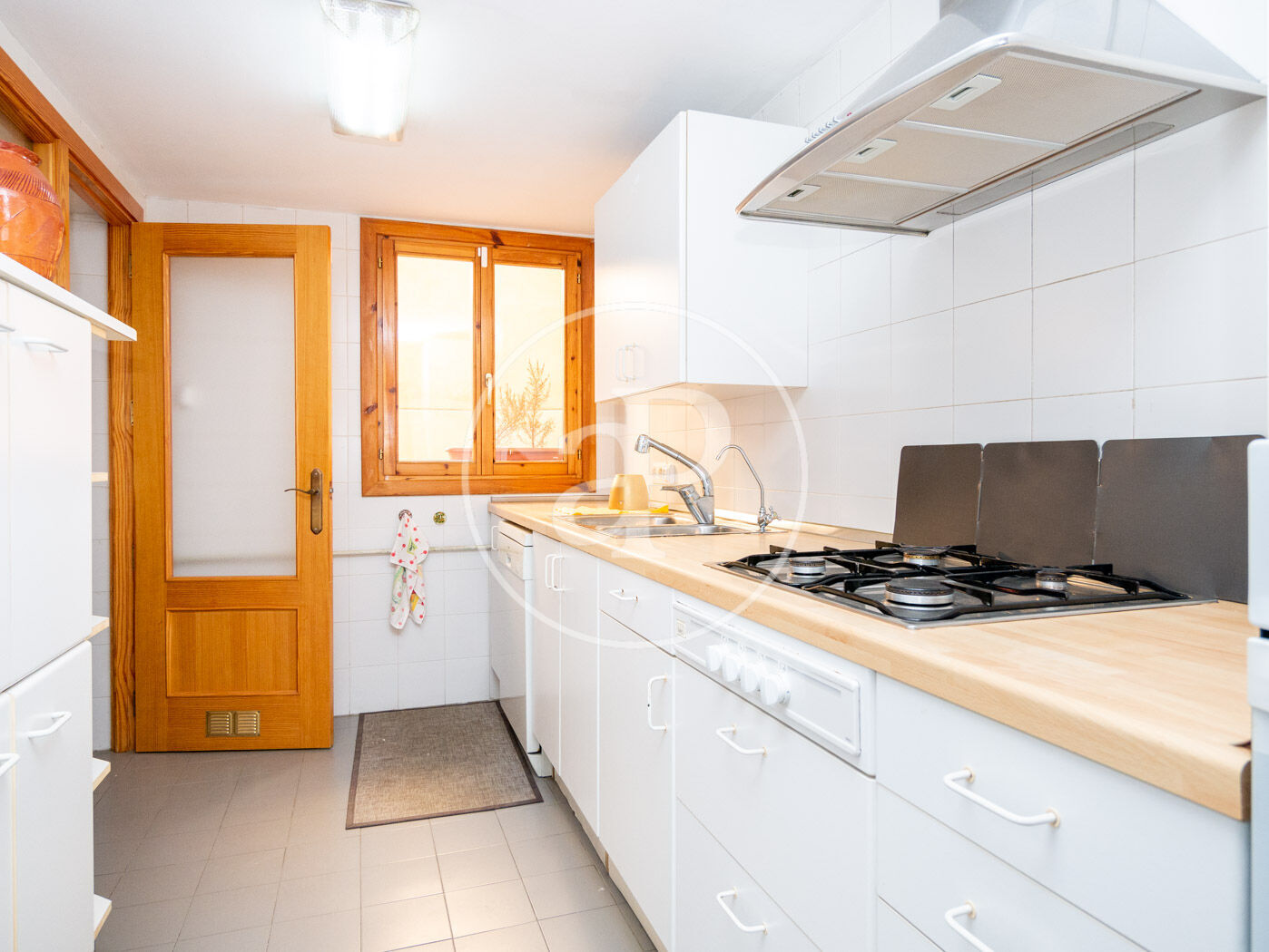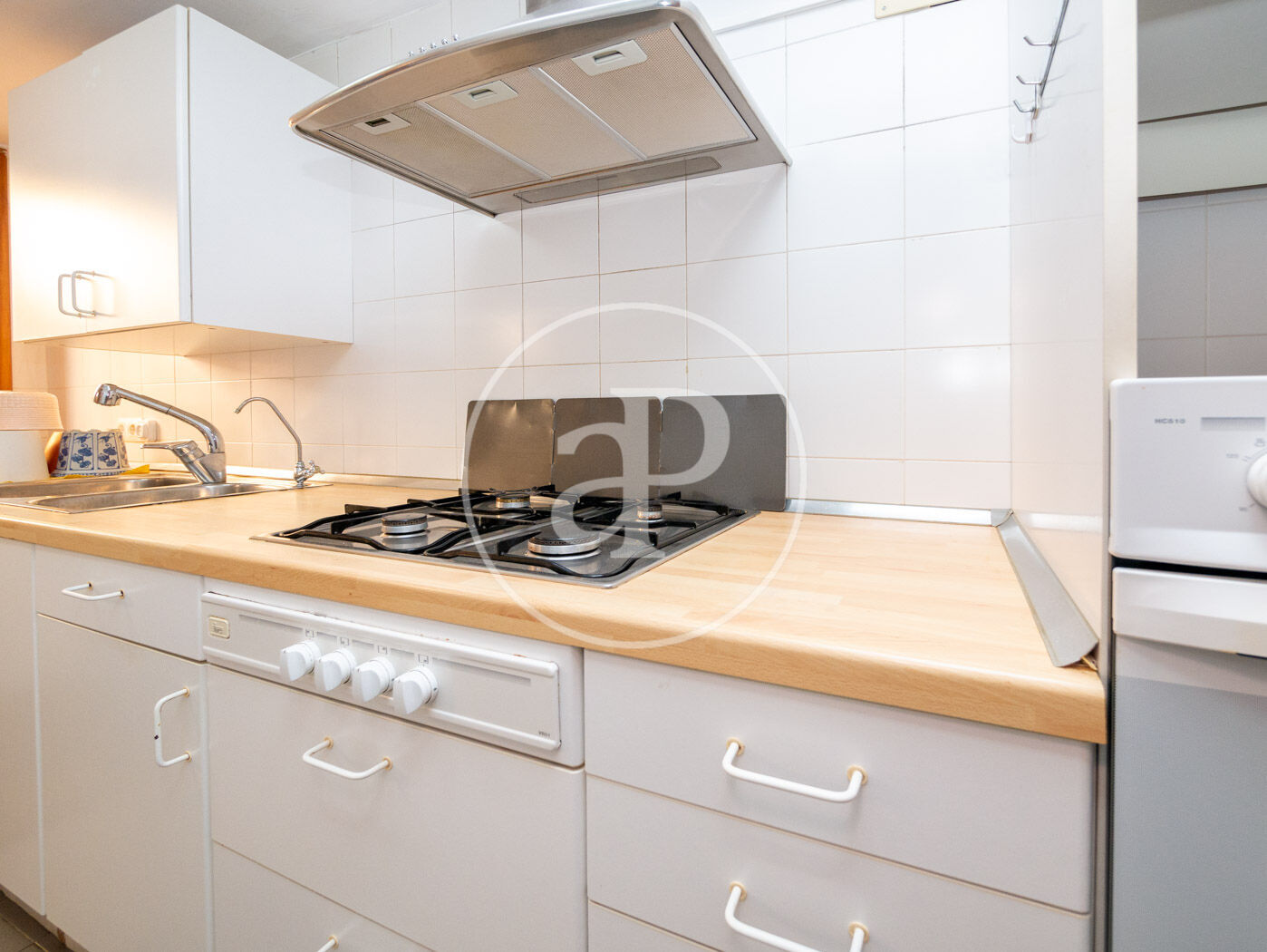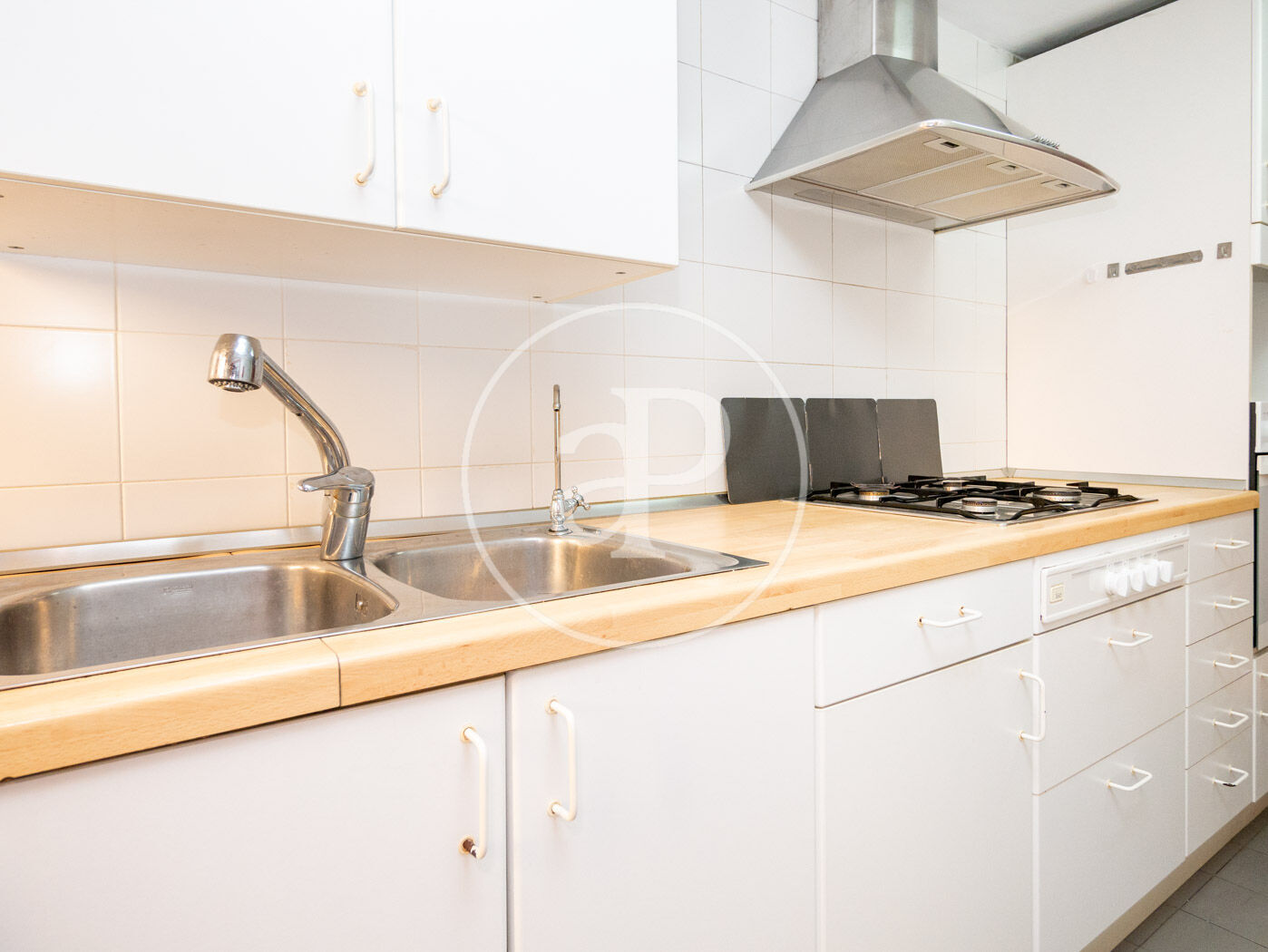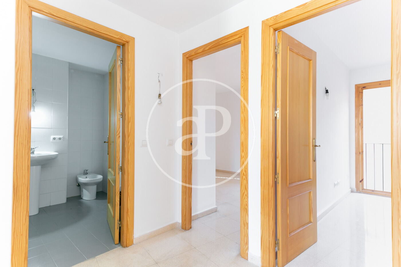 El pis disposa de tres habitacions totalment exteriors, totes amb armaris encastats i un bany complet amb dutxa. L'equipament inclou porta de seguretat, fusteria interior i exterior de fusta -l'exterior amb doble vidre-, terres de rajola hidràulica, aire condicionat, gas natural i aparcament opcional 30.000€ al qual pot accedir des de la mateixa finca.