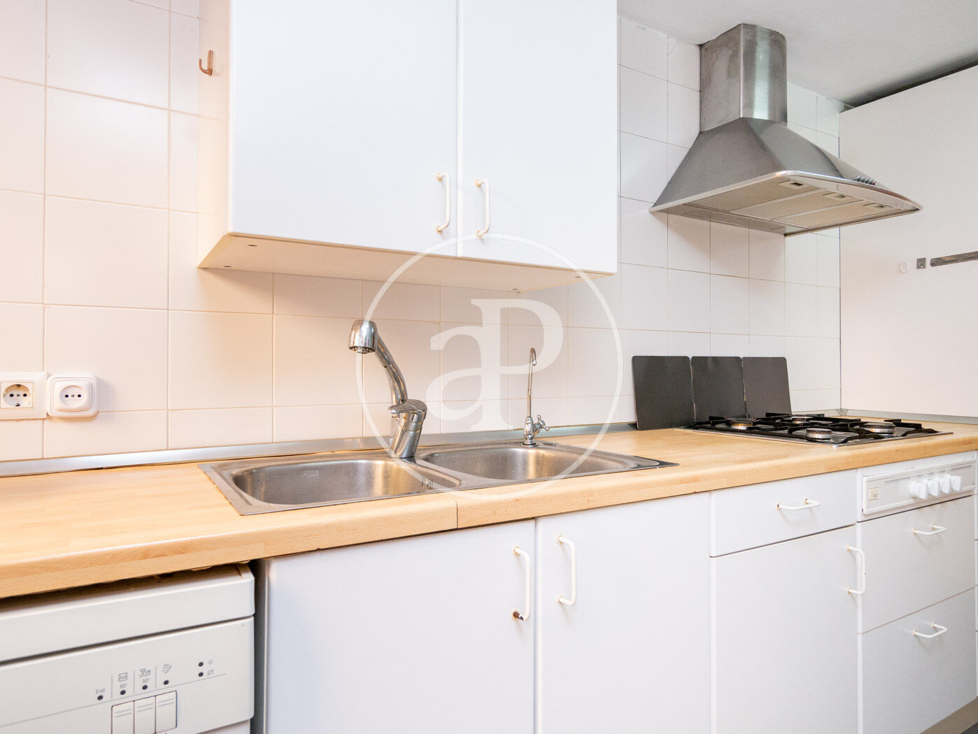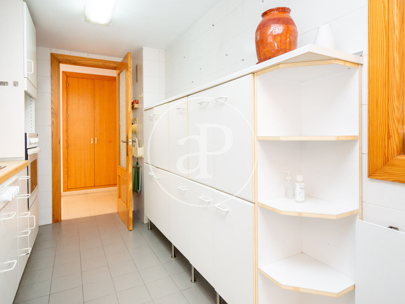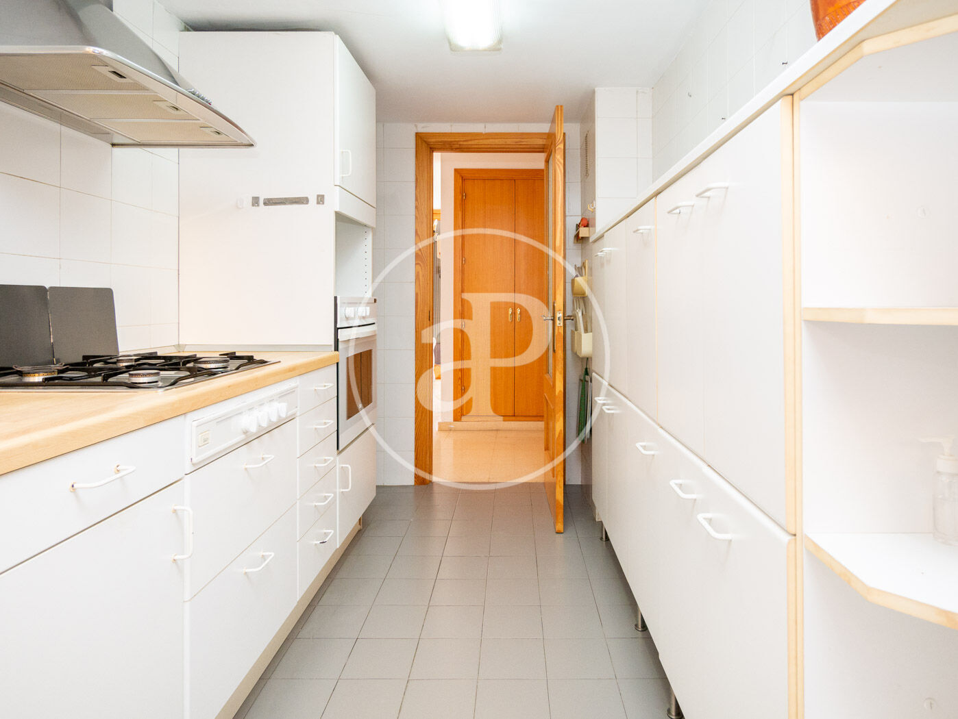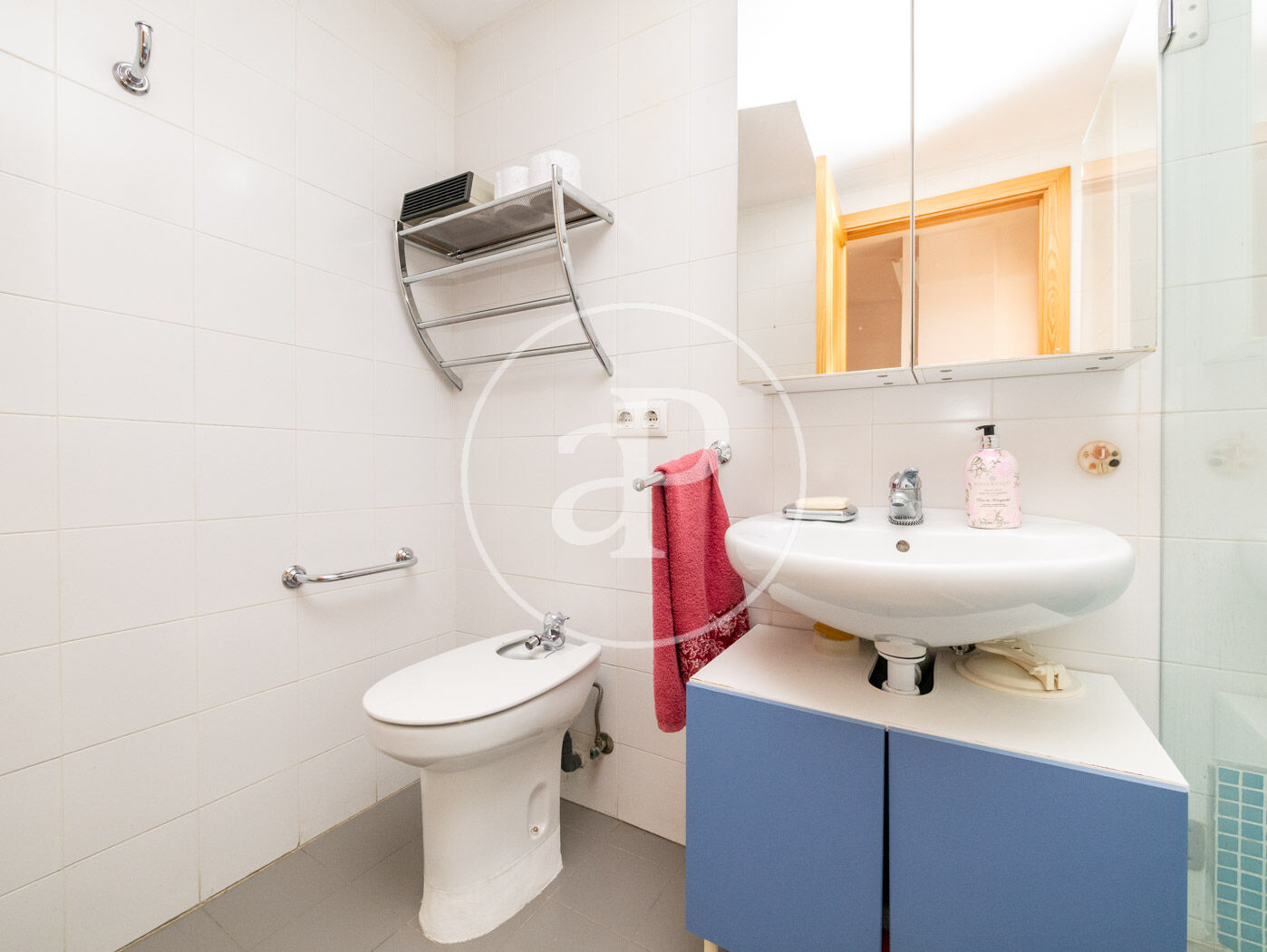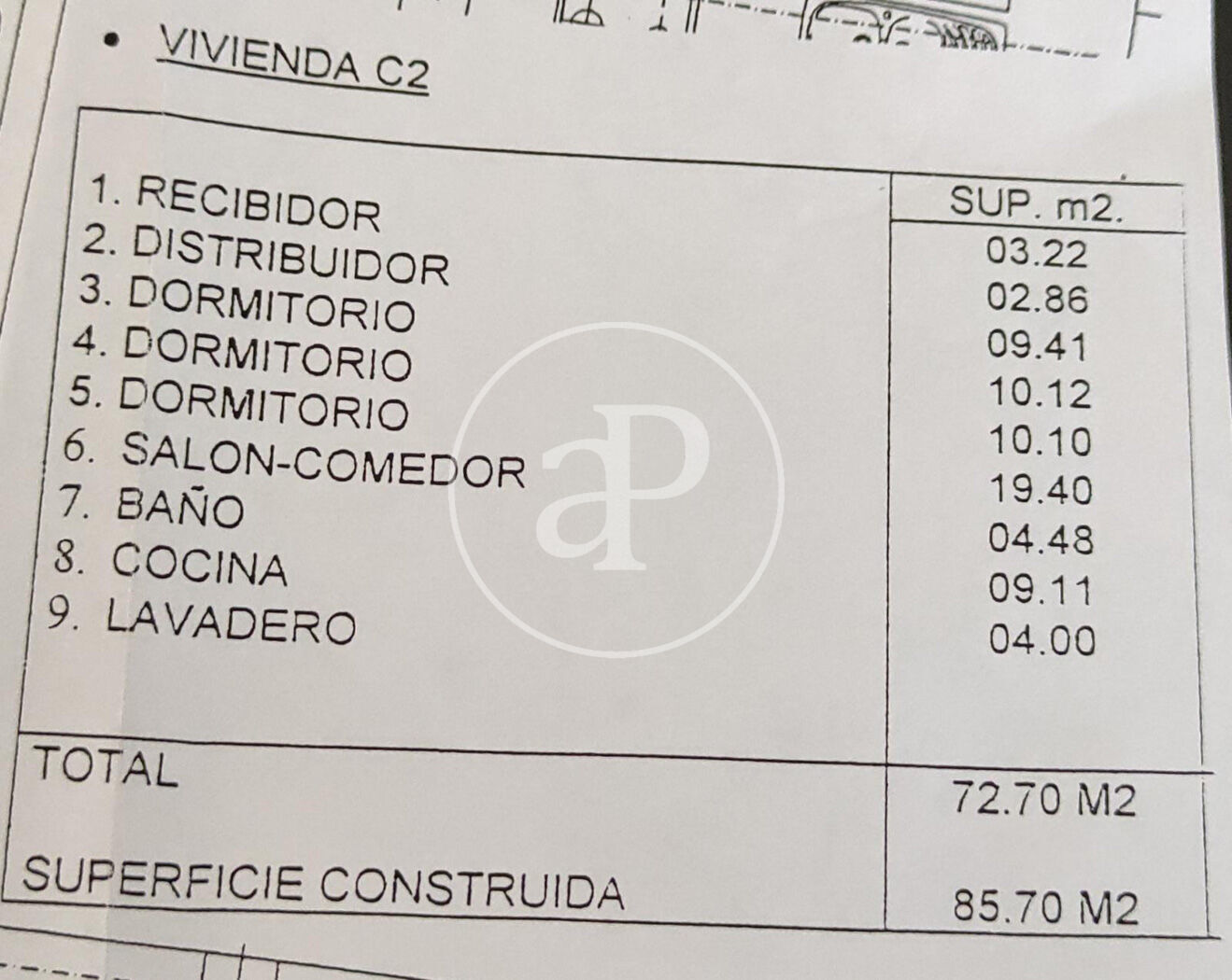 El pis disposa de tres habitacions totalment exteriors, totes amb armaris encastats i un bany complet amb dutxa. L'equipament inclou porta de seguretat, fusteria interior i exterior de fusta -l'exterior amb doble vidre-, terres de rajola hidràulica, aire condicionat, gas natural i aparcament opcional 30.000€ al qual pot accedir des de la mateixa finca.