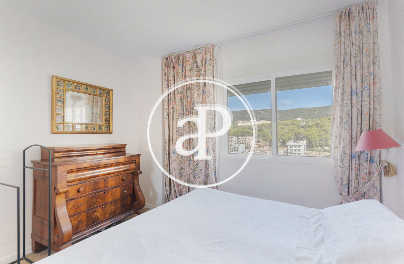 Des del saló-menjador, i gràcies als seus grans finestrals, es pot gaudir de les meravelloses vistes a la badia de Palma, contemplant el Palau de Marivent, el port de Cala Nova i la platja de Cala Major.