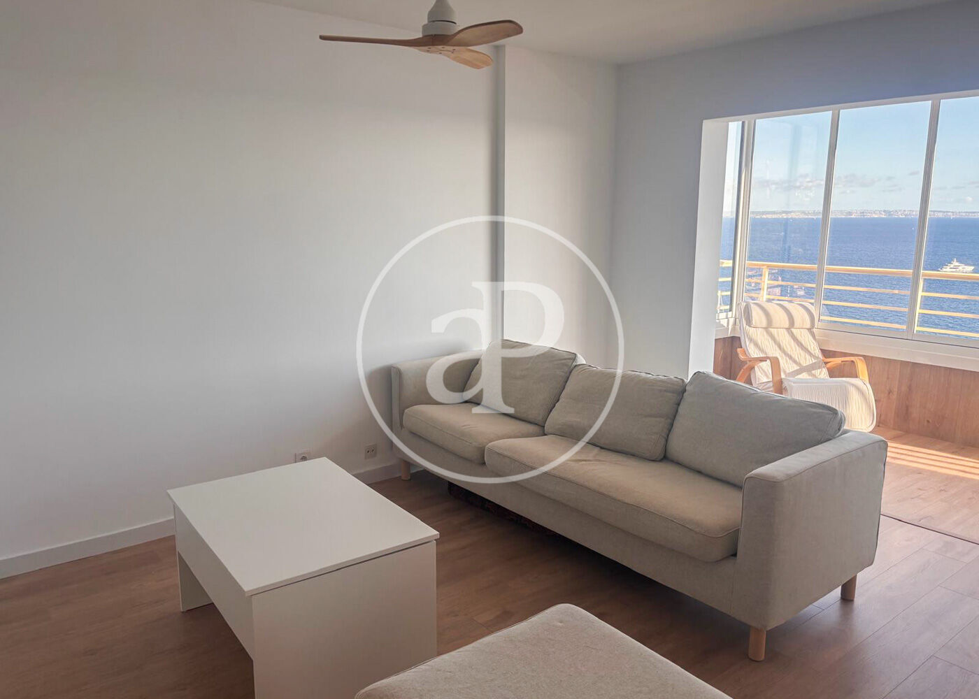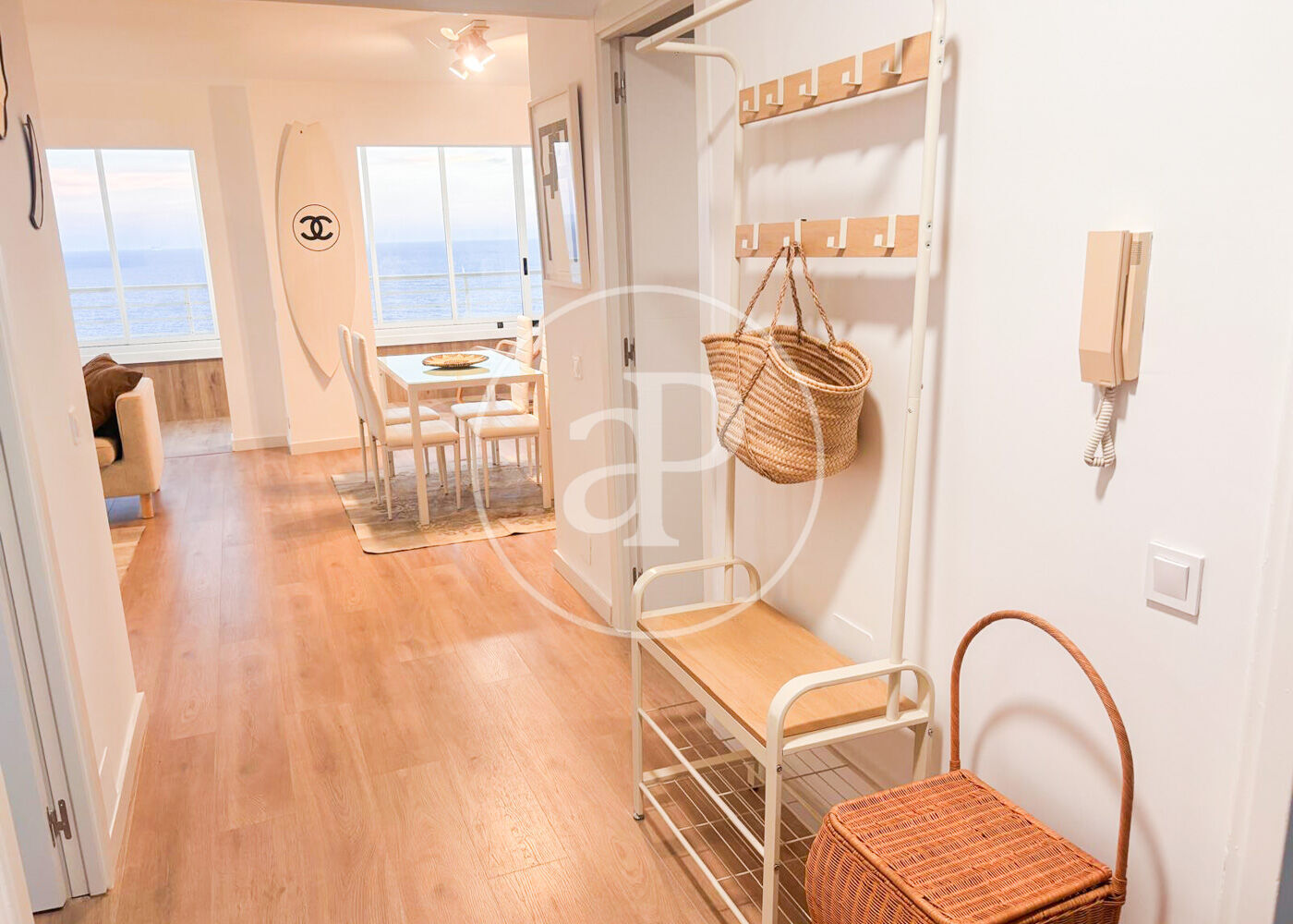 Des de la porta d´entrada al´habitatge, a través d´un passadís accedim a un espaiós saló menjador amb una terrassa amb grans finestrals amb possibilitat d´obrir-la de banda a banda i quedant completament oberta per gaudir de les vistes panoràmiques al mar. La cuina americana d'estil nòrdic està completament moblada i equipada.