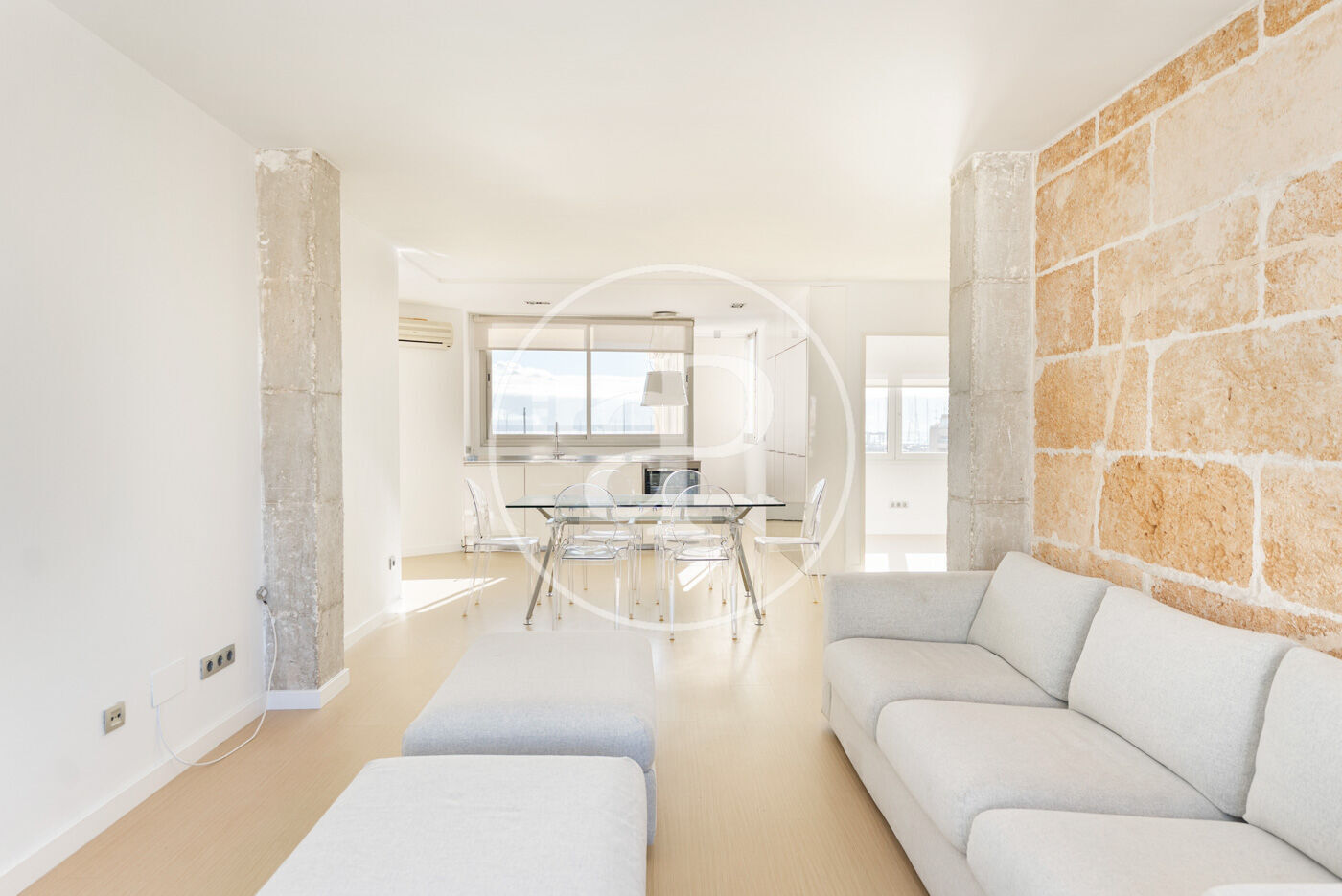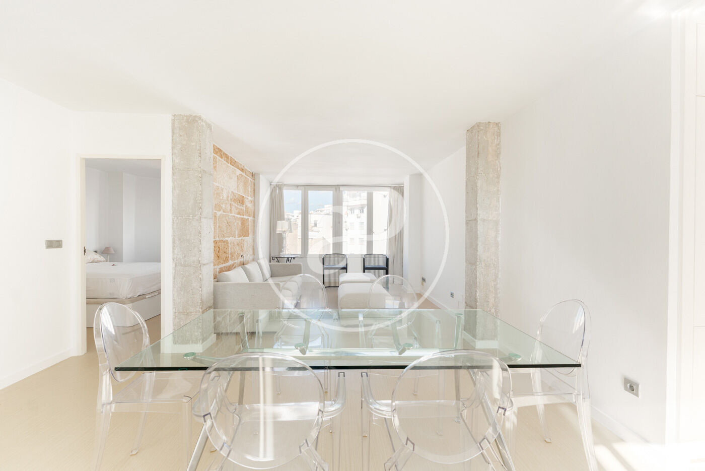 Situat a la cobejada zona de Santa Catalina, aquest lluminós pis de 70 m² ofereix unes vistes espectaculars al mar i a la Catedral.