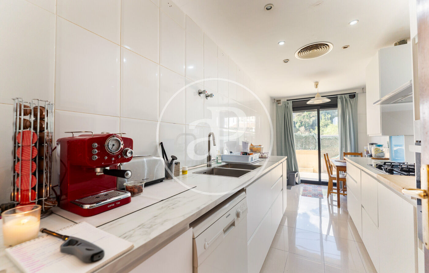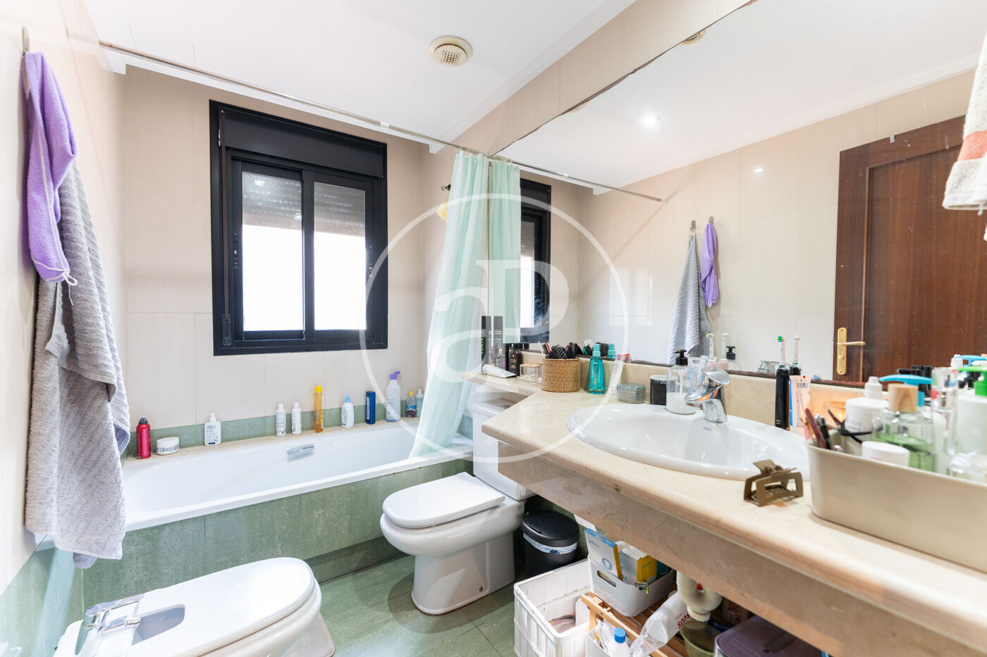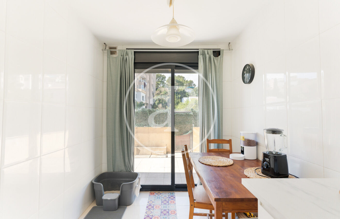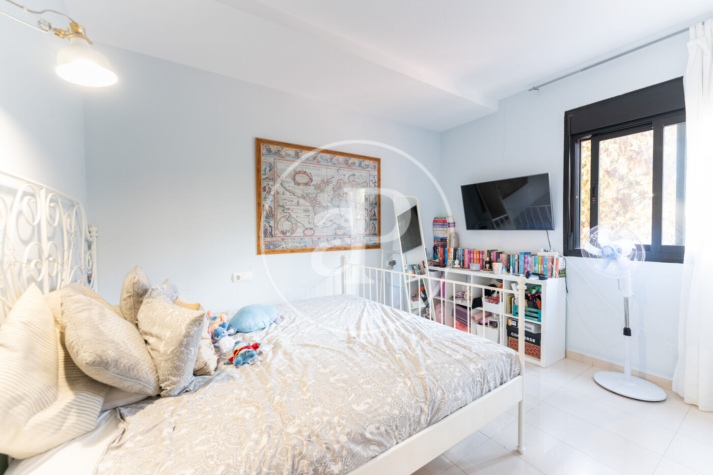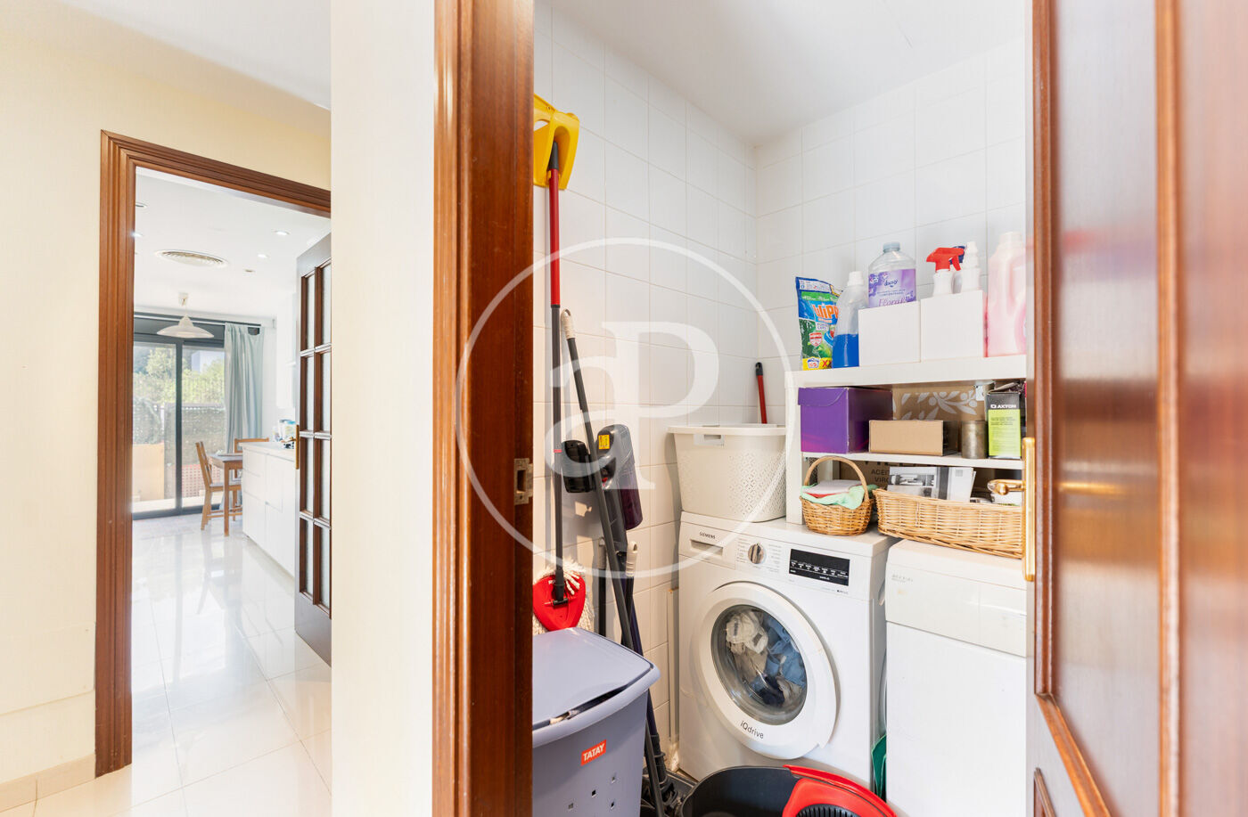 Una bugaderia independent aporta funcionalitat, mentre que a la part del darrere hi ha dues estances versàtils, actualment utilitzades com a oficina i racó acollidor, amb accés a la terrassa posterior. Des d’aquí s’accedeix directament a la piscina i al jardí comunitari, ideals perquè els nens juguin o gaudeixin d’activitats a l’aire lliure.