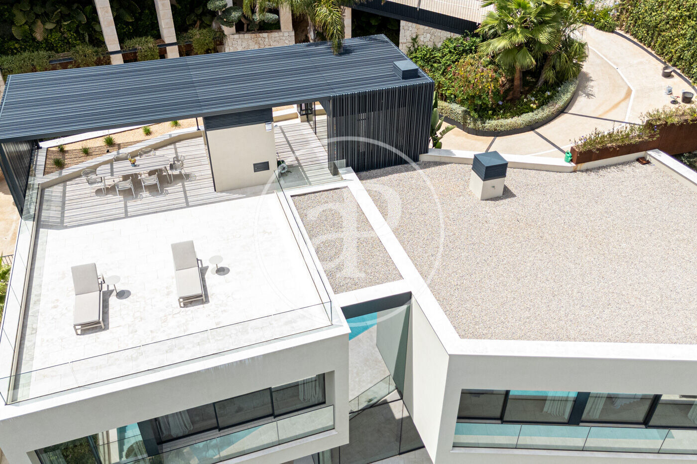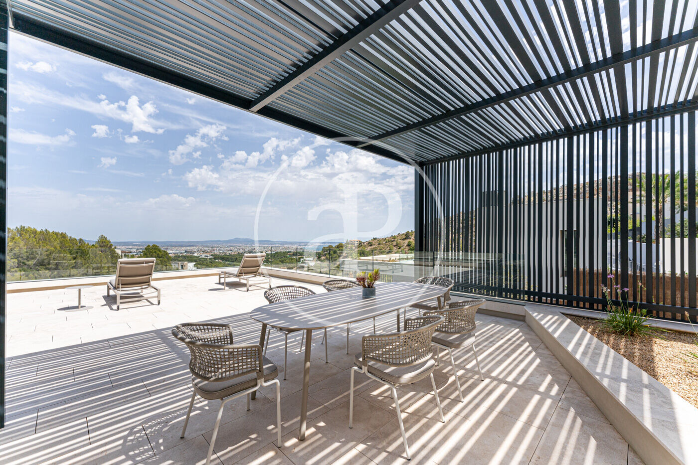Al terrat, una terrassa chill-out amb pèrgola ofereix l’espai ideal per gaudir de postes de sol inoblidables sobre la badia de Palma. El garatge privat té capacitat per a dos vehicles a l’interior i places addicionals a l’exterior.