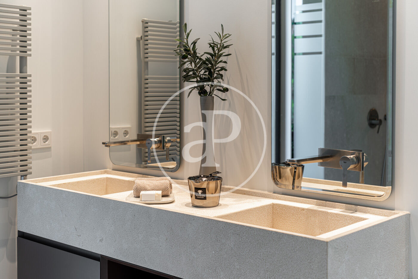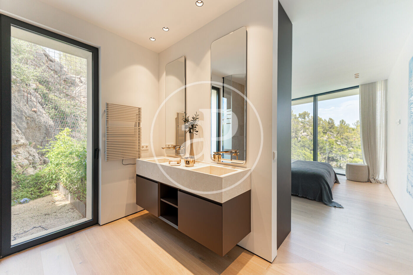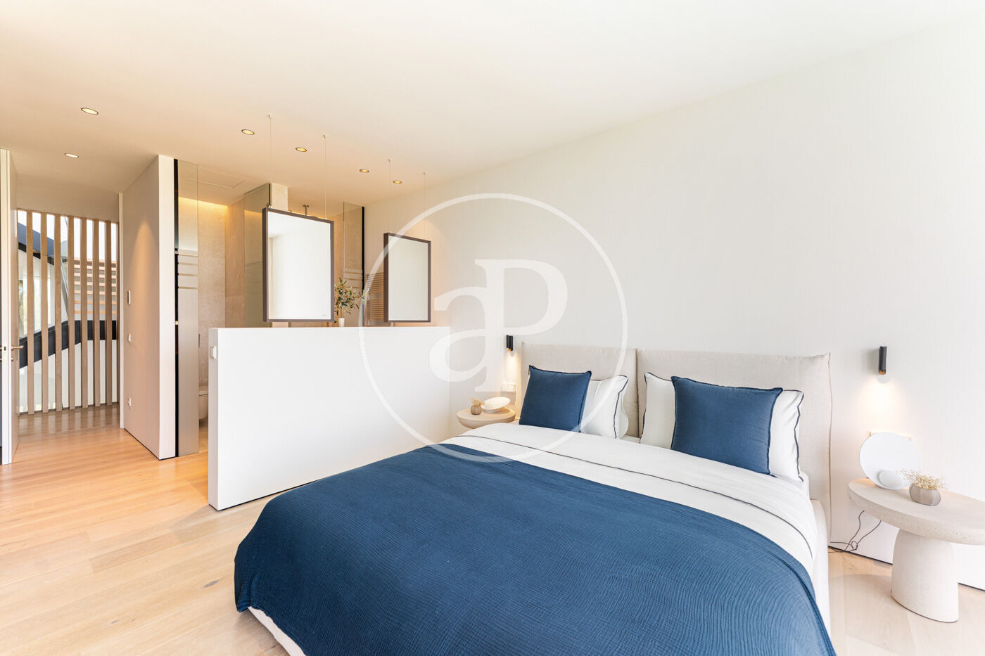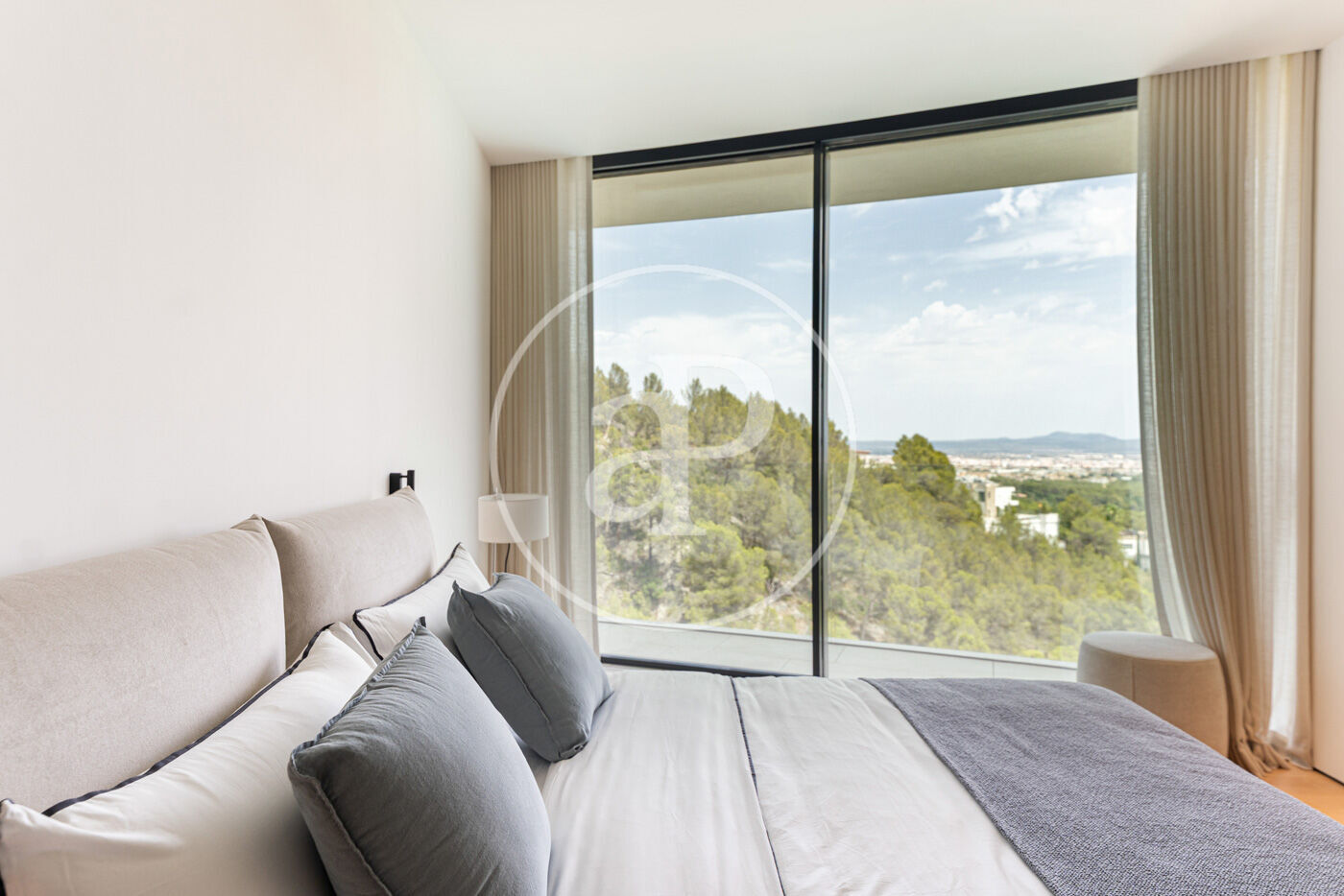 La distribució ha estat pensada acuradament per oferir privacitat, funcionalitat i vistes espectaculars des de gairebé tots els ambients. A la planta superior hi trobem quatre dormitoris, tots amb bany en suite, destacant una suite principal amb vestidor i bany de disseny obert amb vistes immillorables a Palma i a la piscina de luxe.