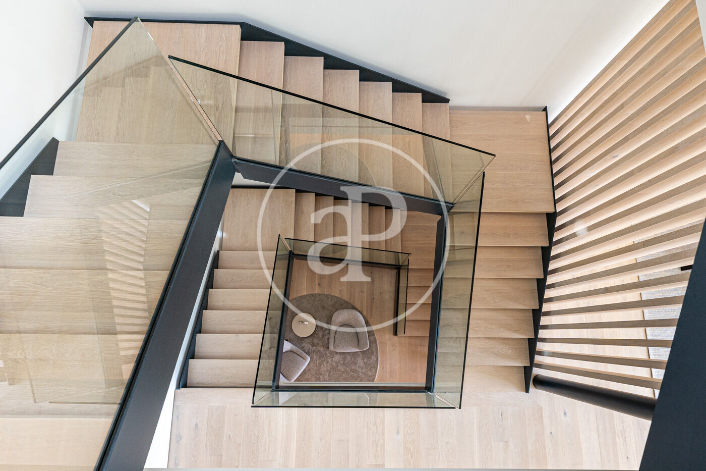 Un nivell més avall, hi ha un apartament d’invitats independent, totalment equipat amb cuina, dormitori i bany, que garanteix la màxima privacitat.