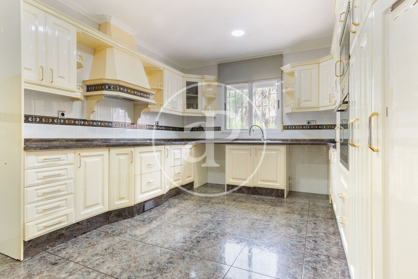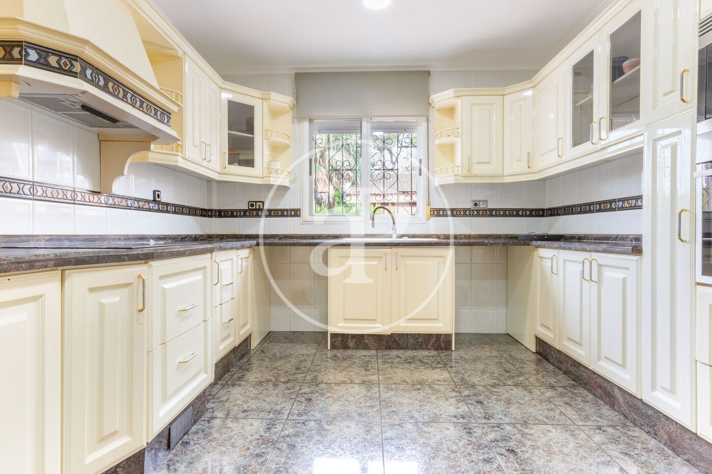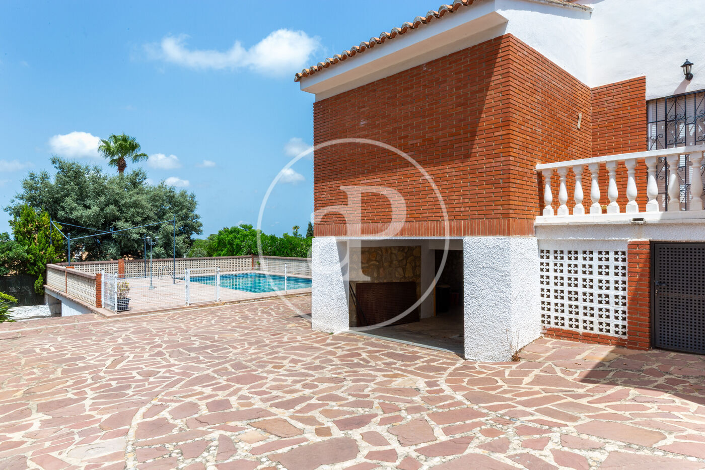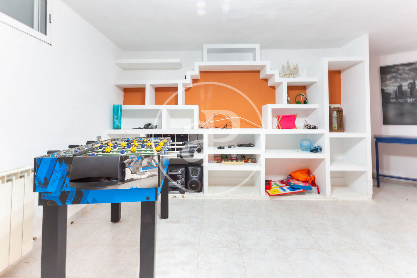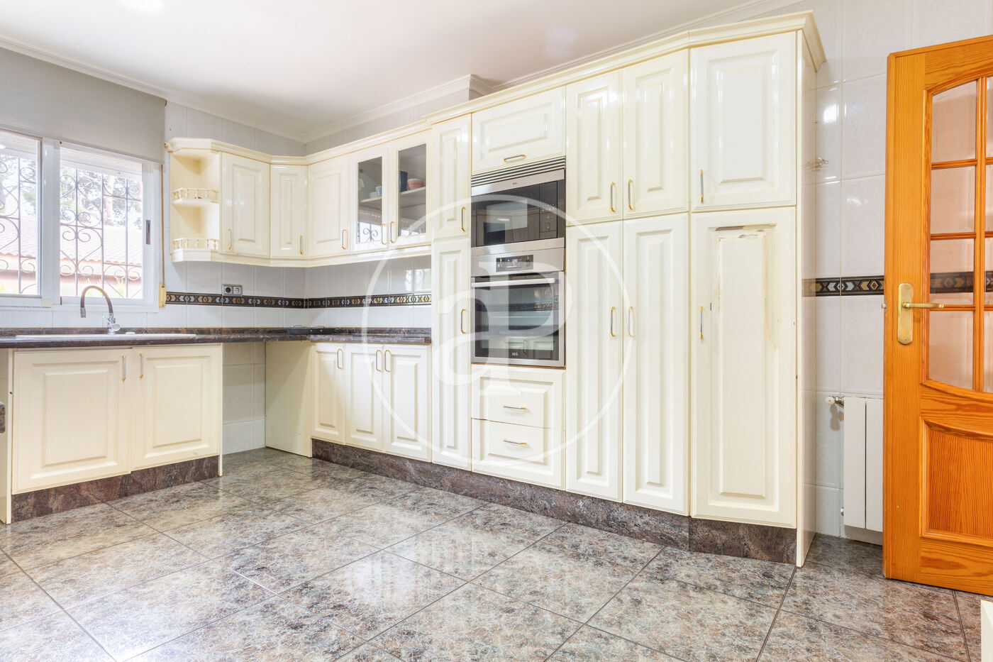 L'habitatge es distribueix en un lluminós i espaiós saló amb llar de foc, que es connecta amb una terrassa amb vistes panoràmiques, una cuina de gran dimensió totalment equipada, cinc amplis dormitoris i dos banys complets recentment renovats. Al nivell del jardí i la piscina, trobem una àmplia sala polivalent, perfecta per utilitzar-la com a sala de jocs, estudi, zona d'oci o fins i tot com a habitació d'invitats, ja que disposa d'un bany complet addicional.