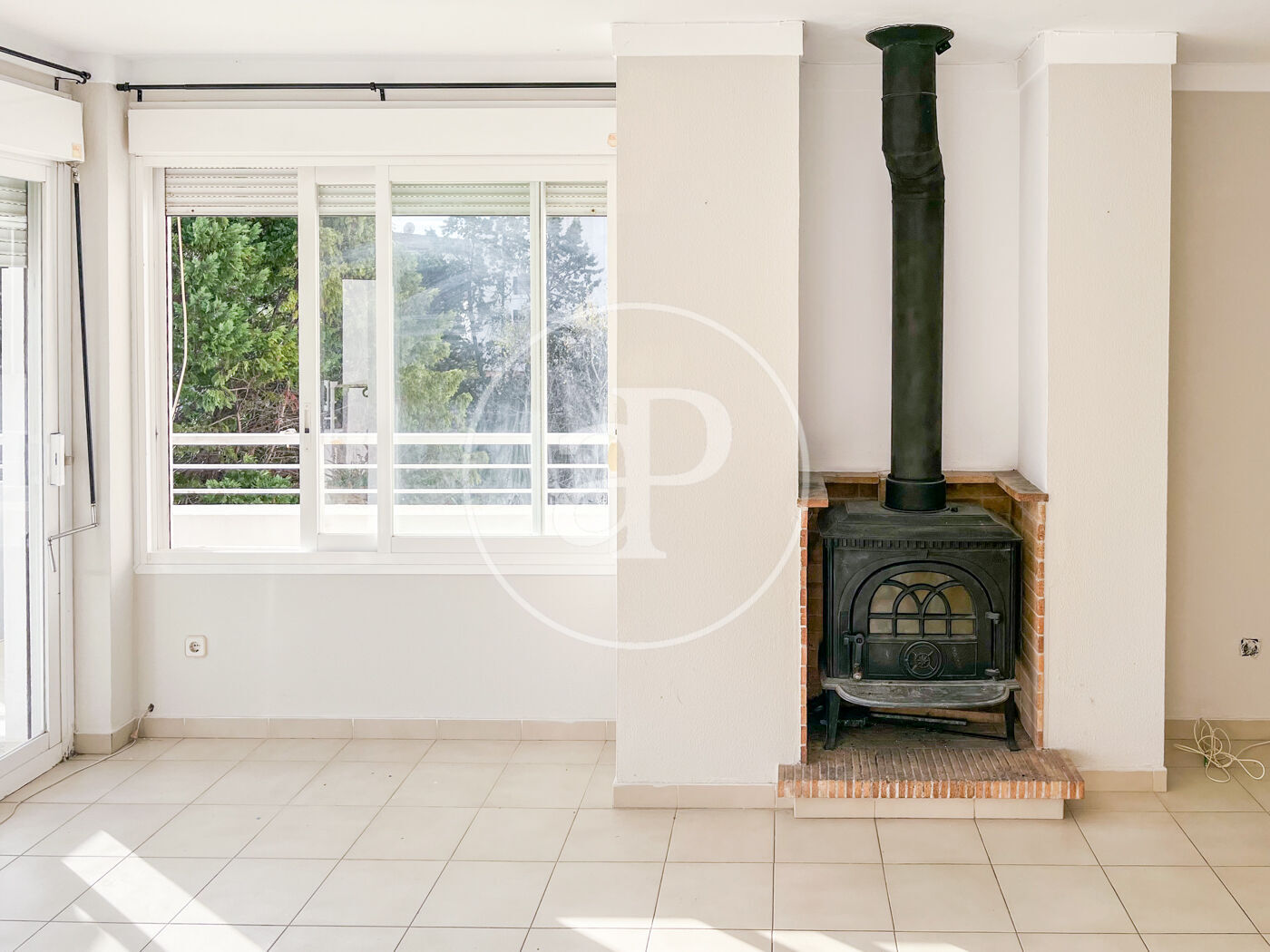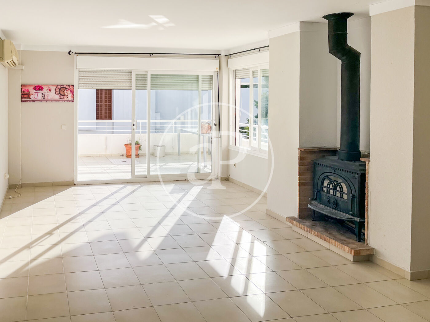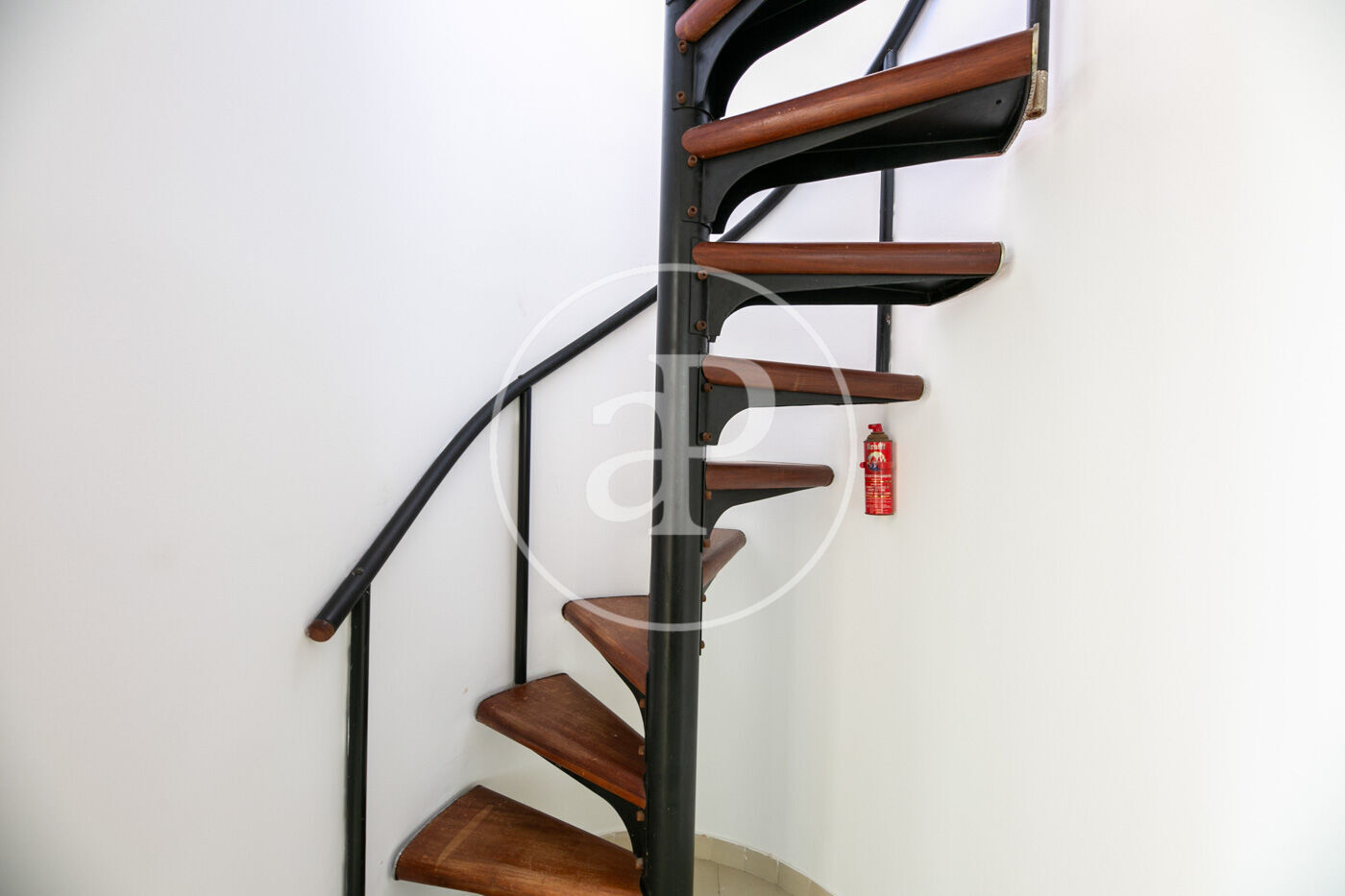 Des de la porta d'entrada a la vivenda accedim a un rebedor on trobem un espaiós i lluminós saló-menjador amb llar de foc i amb sortida a una terrassa de 22 m² amb vistes clares a les zones comunitàries del complex. A la mateixa zona hi trobem la cuina moblada amb una zona de bugaderia independent. A través d'una escala de cargol tenim accés a la part de dalt de l'habitatge on trobem un espai per posar-hi un petit despatx i una terrassa solàrium de 140 m² ideal per posar-hi una barbacoa.
