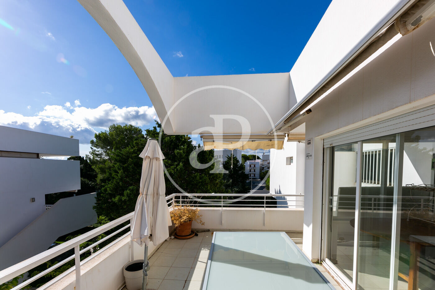A la tranquil·la urbanització de Bellresguard al Port de Pollença, trobem aquest àtic de 146 m² amb un solàrium amb vistes molt agradables a les zones verdes de la urbanització.