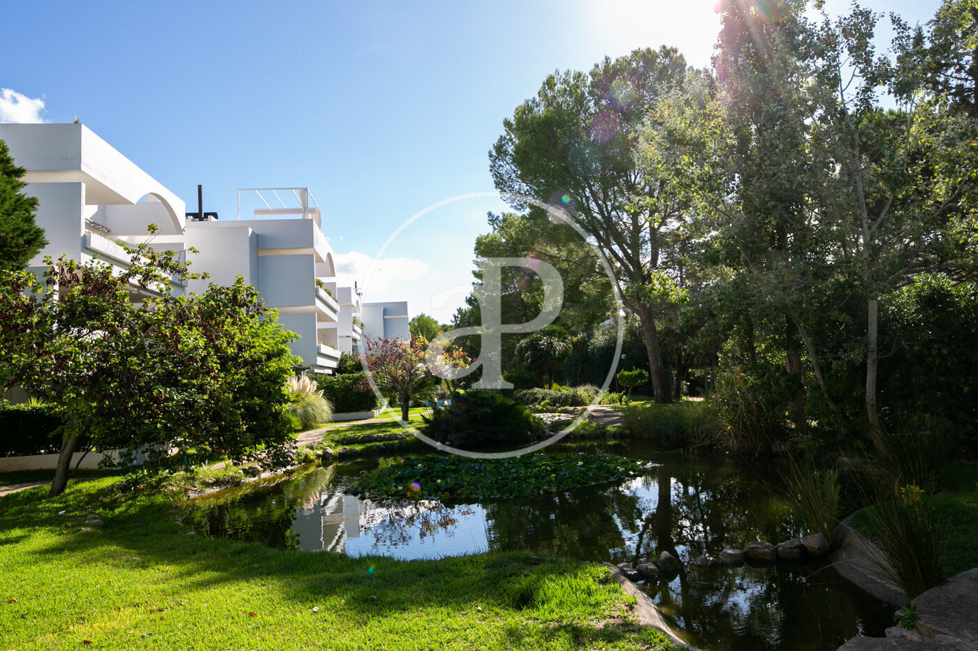 La propietat destaca per la seva gran lluminositat, té una plaça de pàrquing exterior al mateix complex i àmplies zones enjardinades amb diferents piscines, terrasses per prendre el sol i diverses zones amb ombra natural gràcies a la seva vegetació.