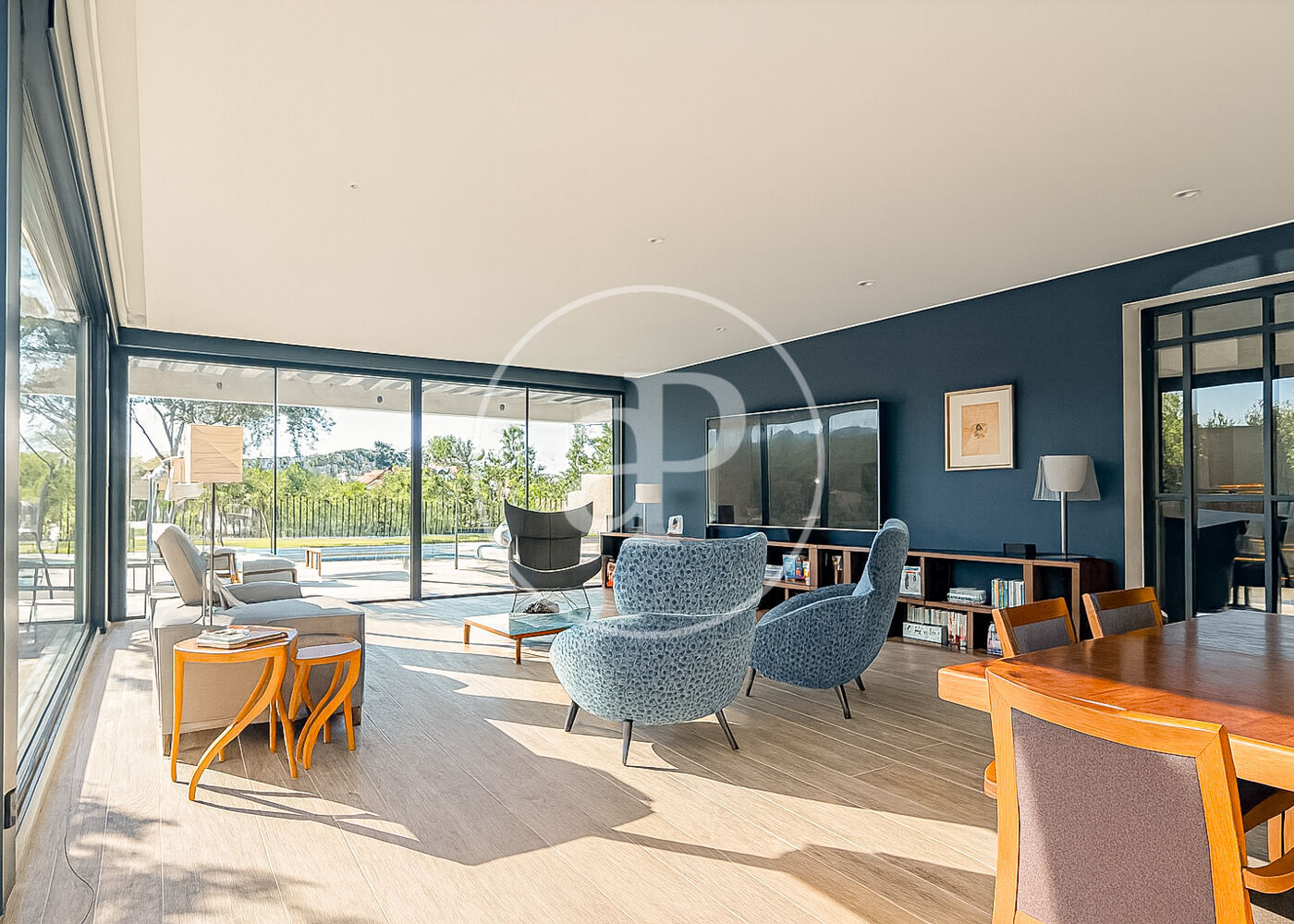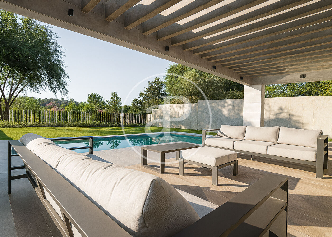 , piscina, llar de foc, plaça d’aparcament, aire condicionat, bugaderia, balcó, pati posterior, calefacció i traster.