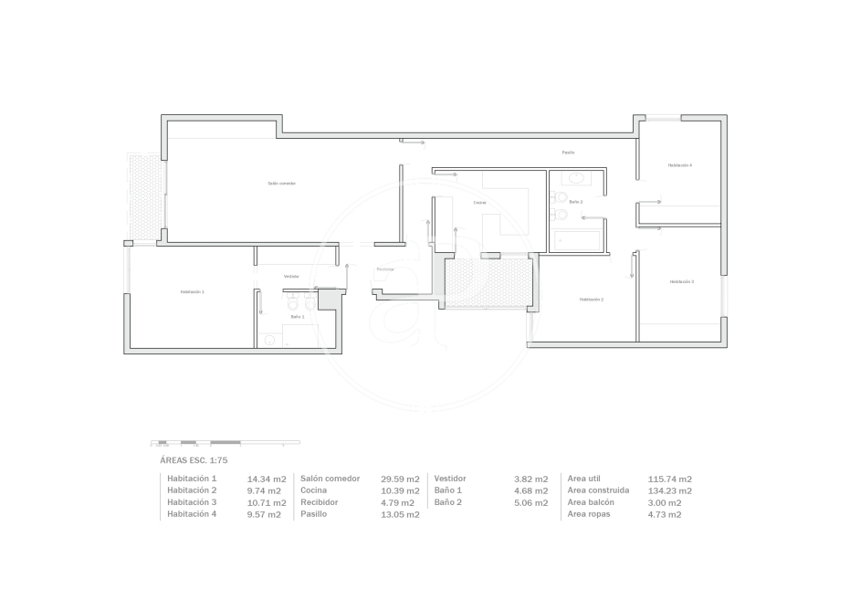 Espais amplis i ben distribuïts, amb quatre dormitoris, incloent-hi una gran suite principal amb vestidor i bany privat.