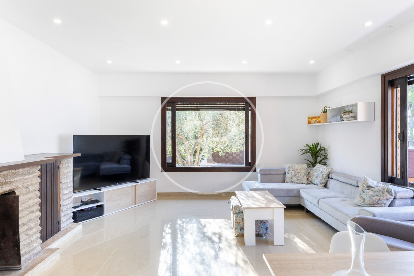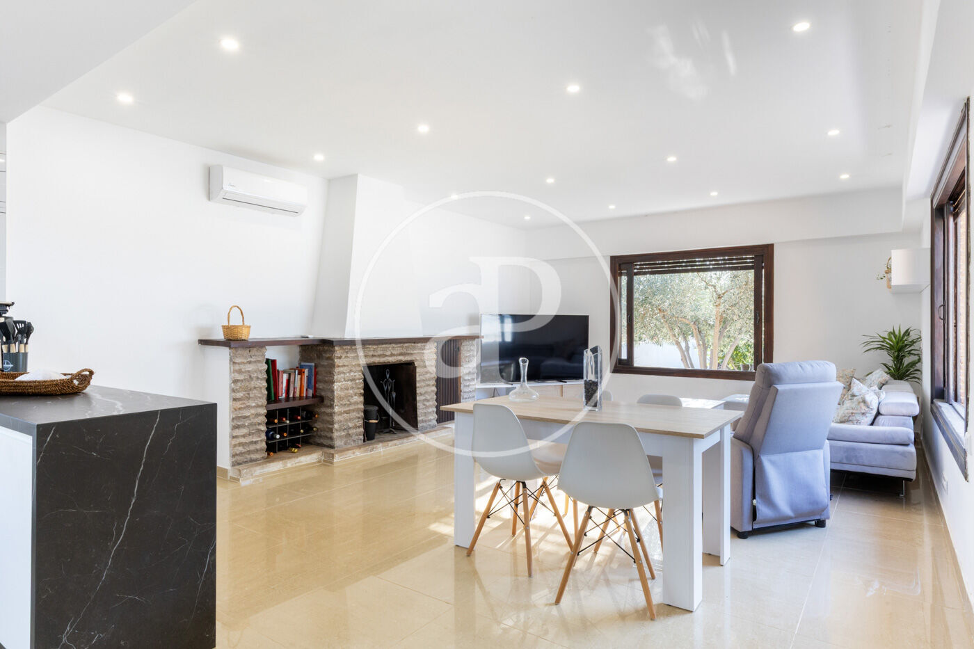 El saló destaca per la seva amplitud i la seva llar de foc, que aporta un toc acollidor durant els mesos més frescos. Tota la vivenda està equipada amb cortines domotitzades, afegint un plus de comoditat i modernitat a cada estança.