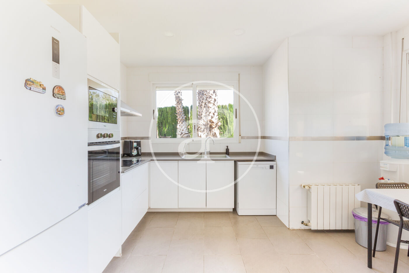 Cuina-office, amb acabats d’alta qualitat a estrenar, sense electrodomèstics, amb eixida a un acollidor porxo d’uns 20 m² per a gaudir de menjars i sopars amb familiars i amics.